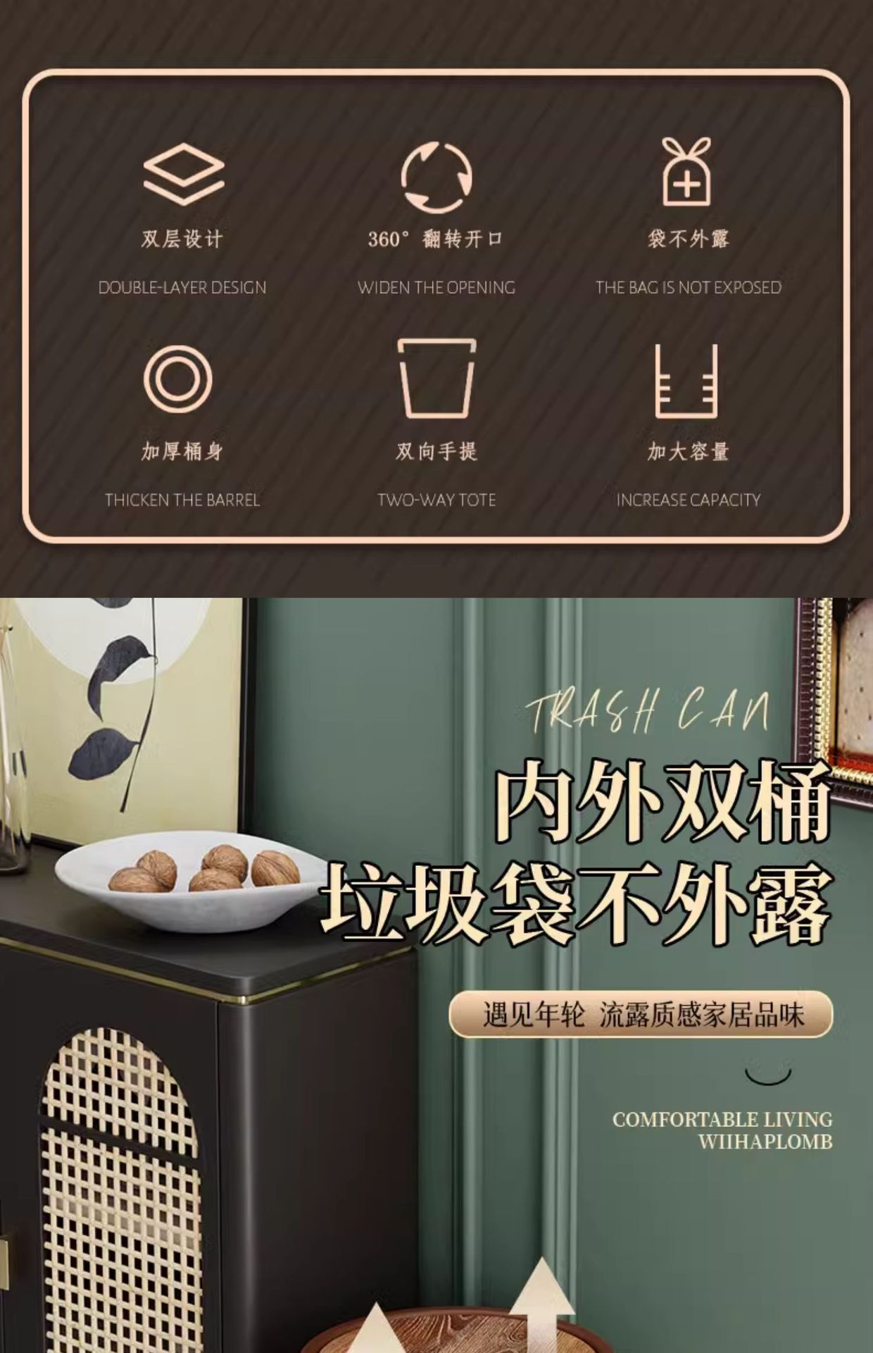 复古仿木纹垃圾桶家用翻盖大容量客厅厨房民宿办公室商用中式纸篓
