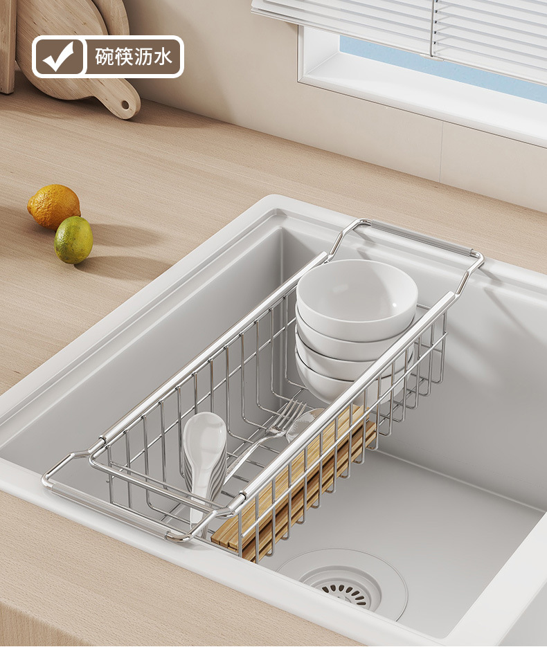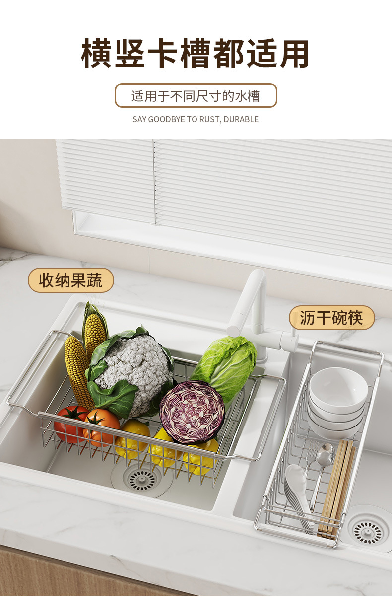 不锈钢厨房伸缩水槽置物架沥水碗筷抹布家用碗碟多功能收纳架跨境