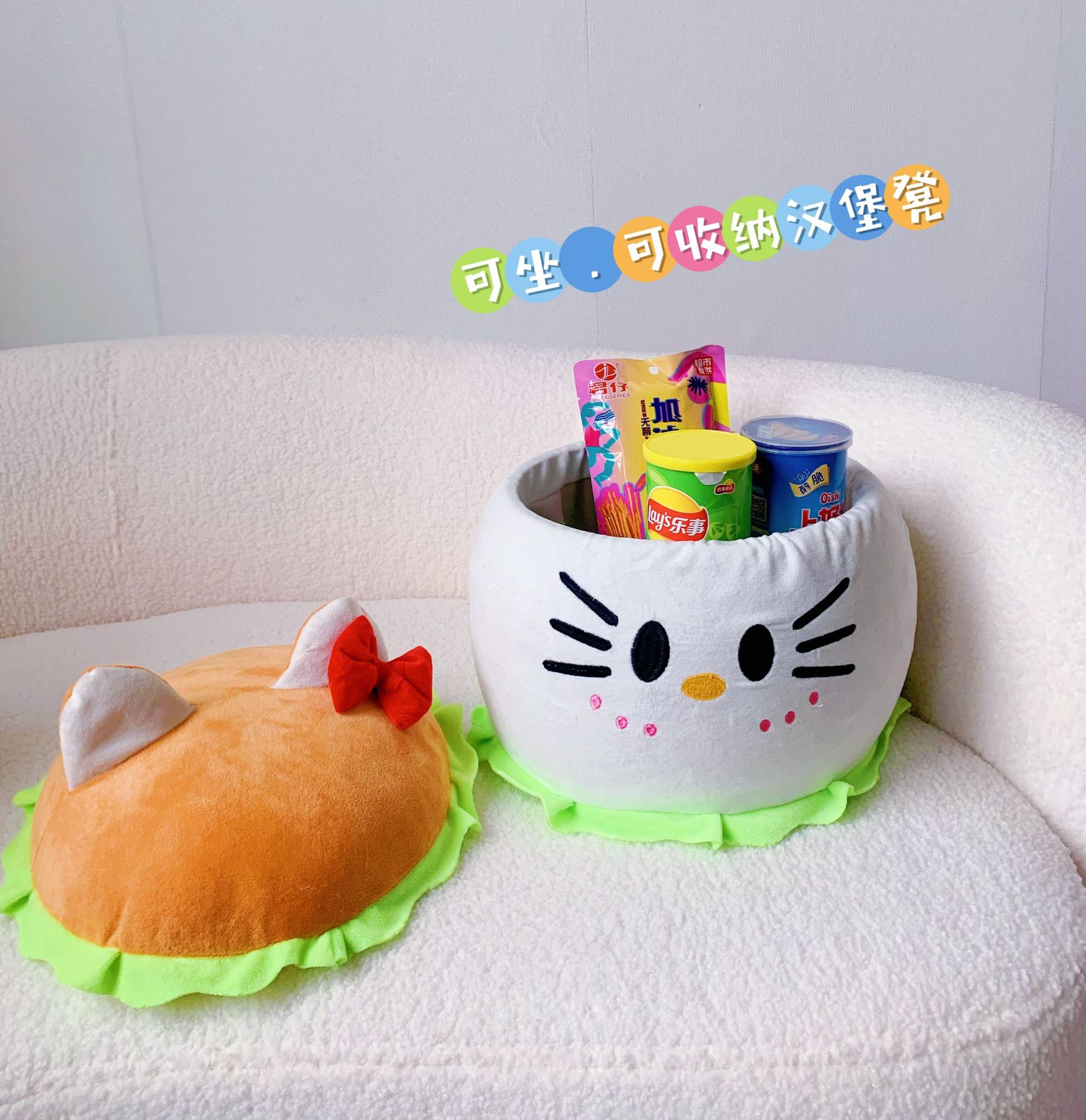 A家用板凳储物凳可坐收纳凳储物玩具收纳箱沙发凳汉堡猫收纳凳