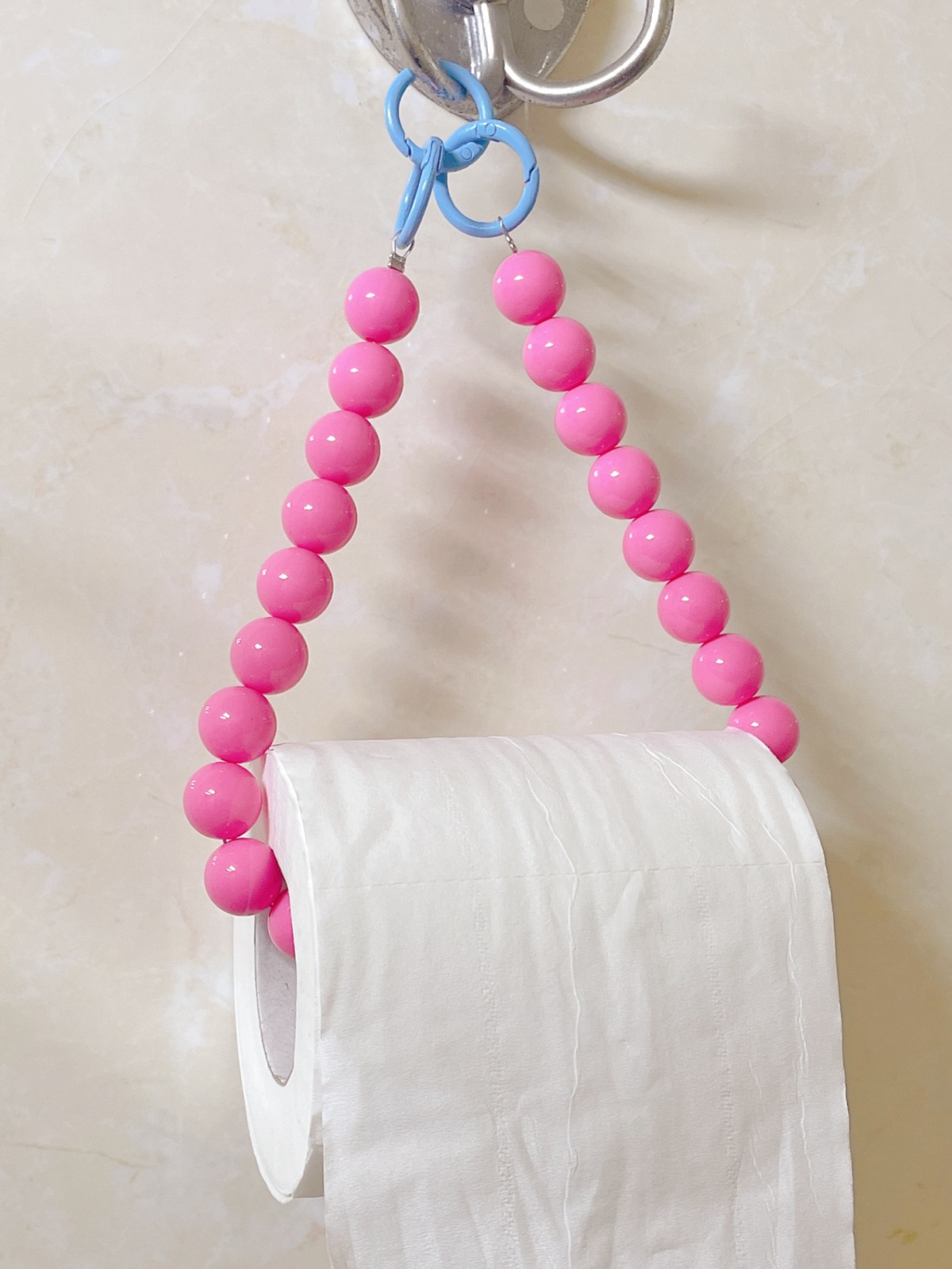 ins同款多巴胺玫红串珠纸巾架可爱免打孔卷纸架卫生间厕纸置物架