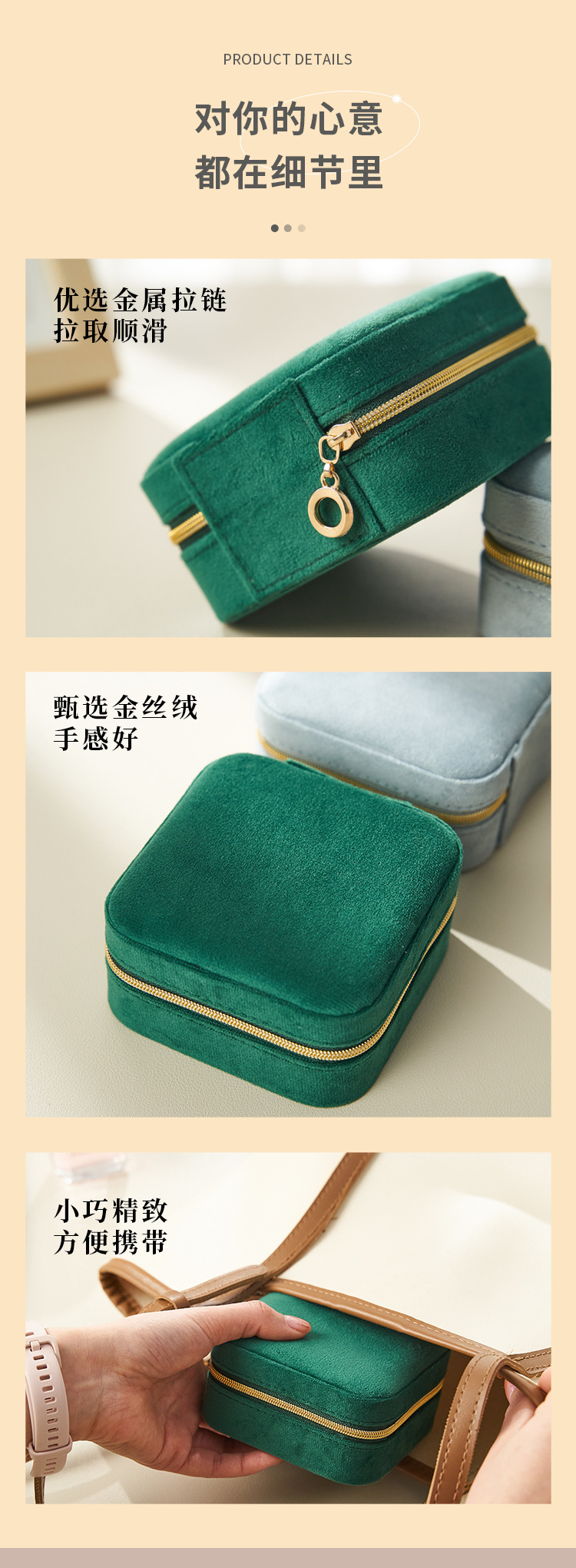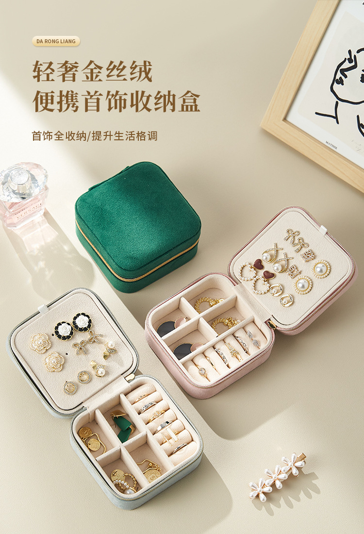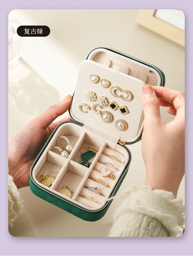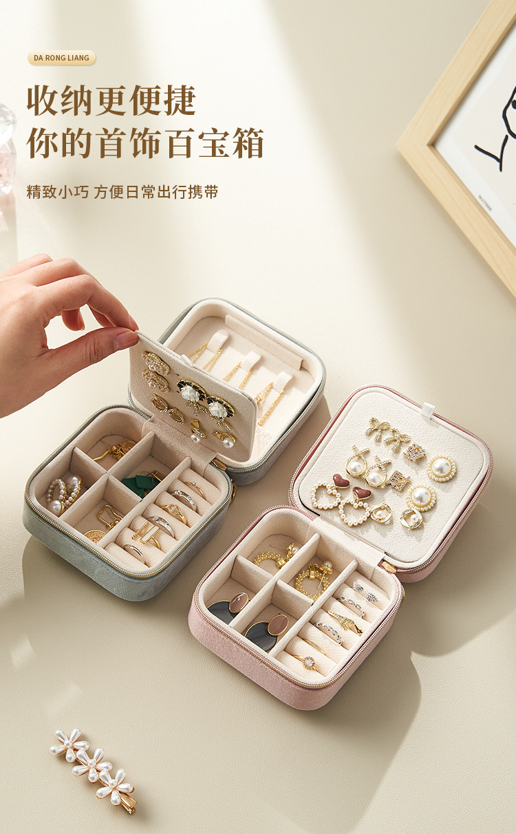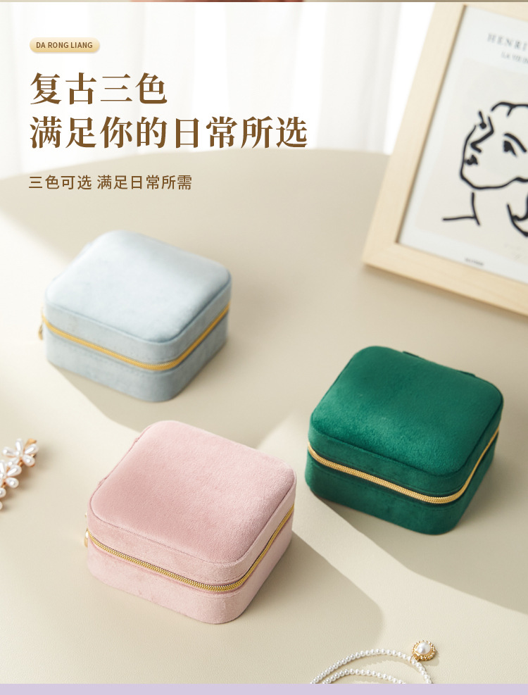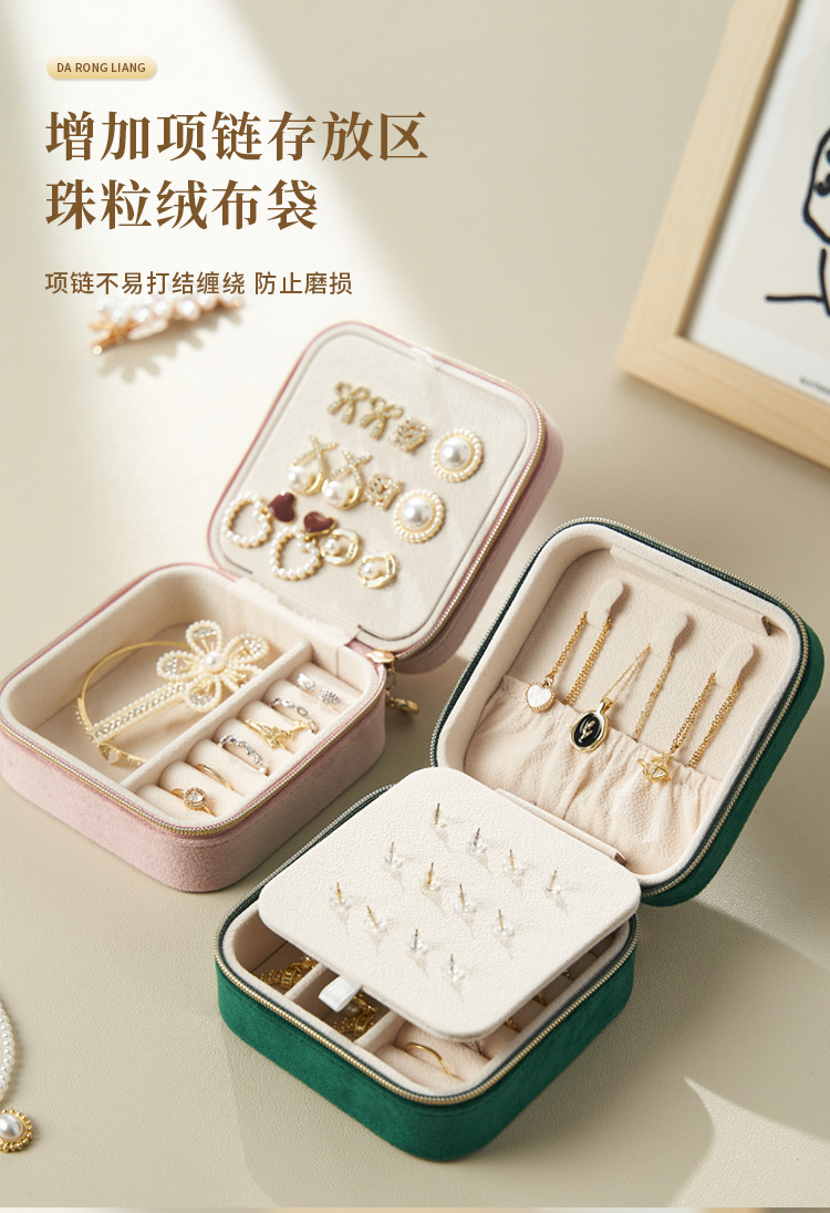 跨境绒布首饰盒子旅行便携珠宝首饰收纳盒耳环耳饰项链饰品收纳盒