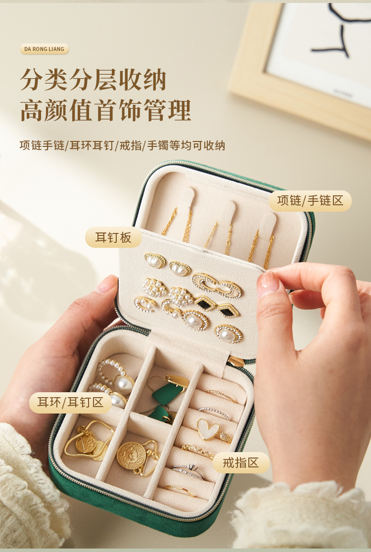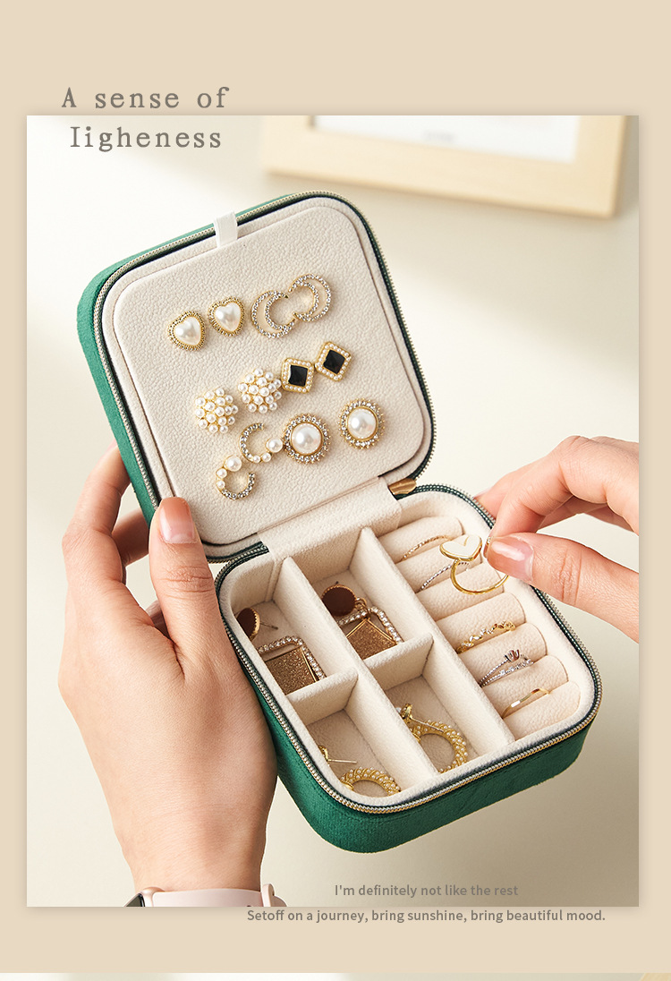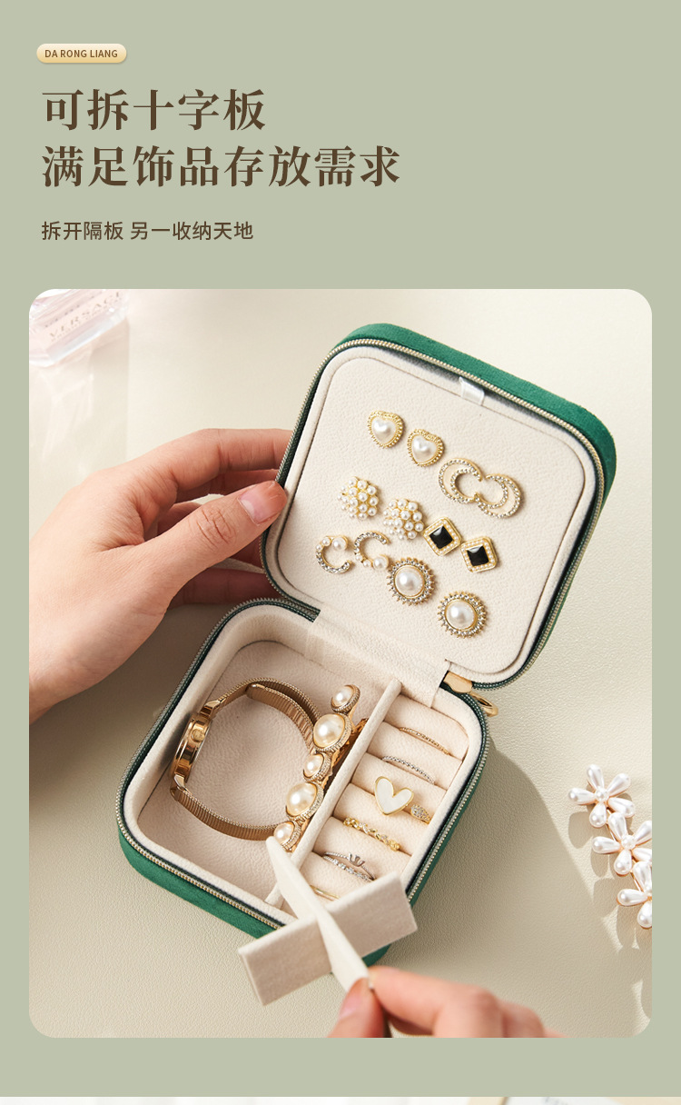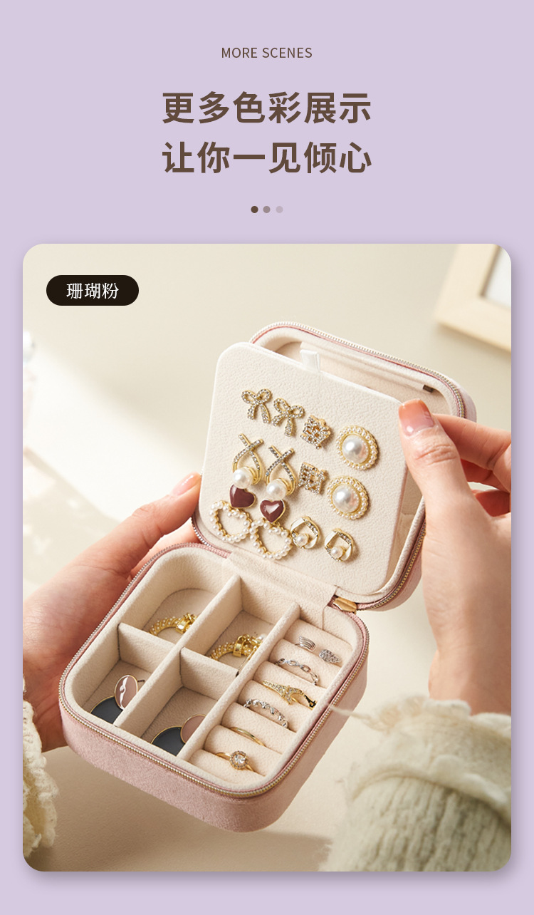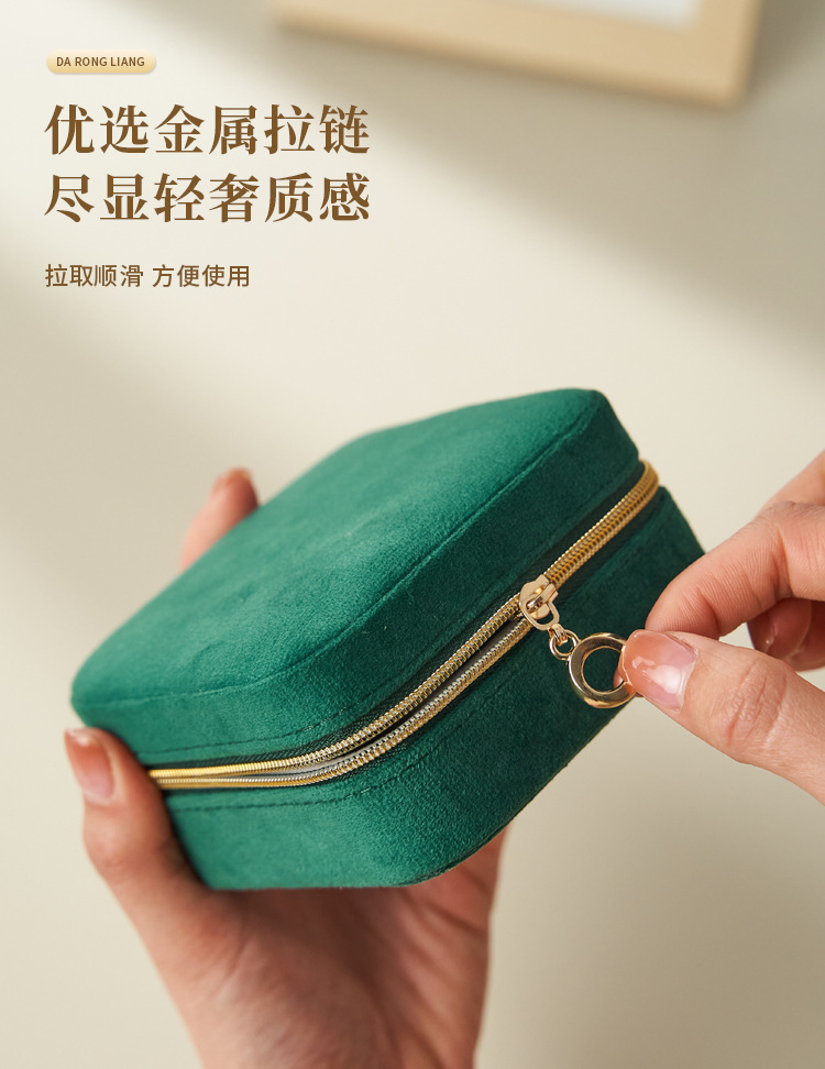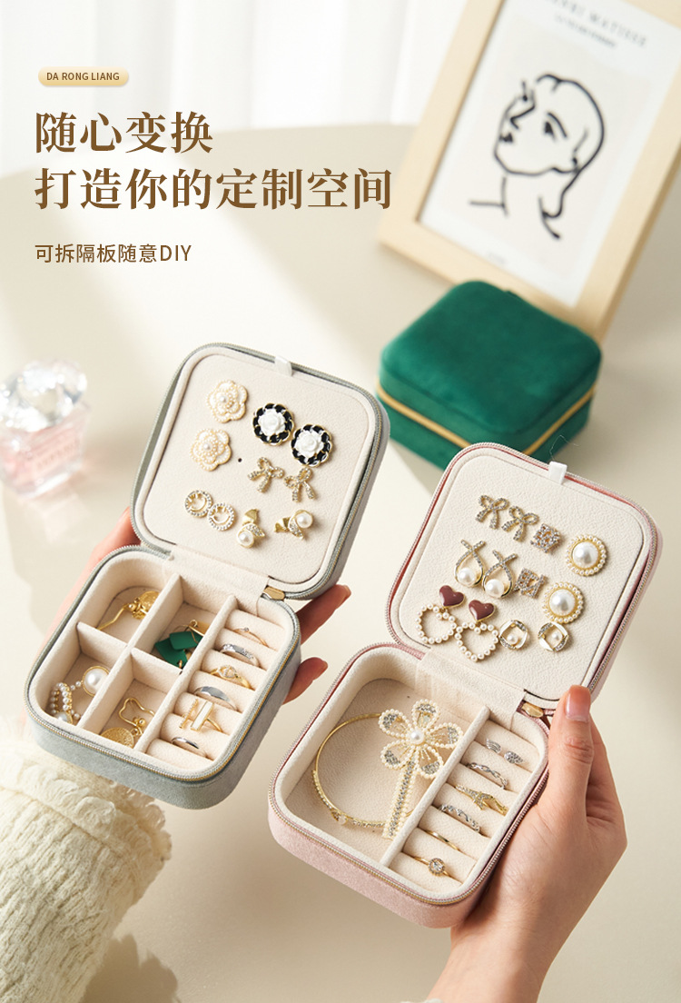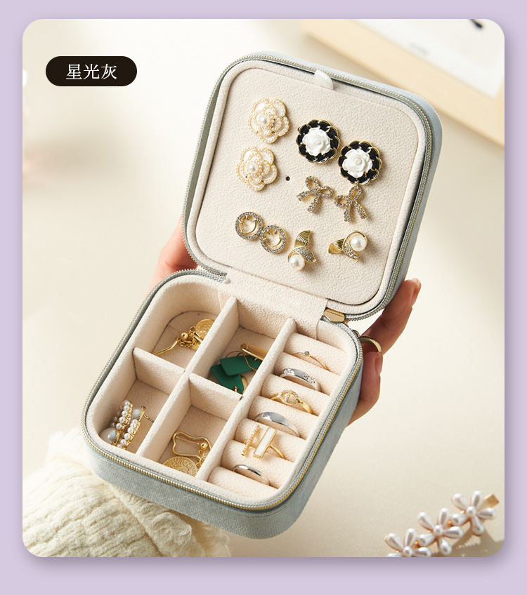 跨境绒布首饰盒子旅行便携珠宝首饰收纳盒耳环耳饰项链饰品收纳盒