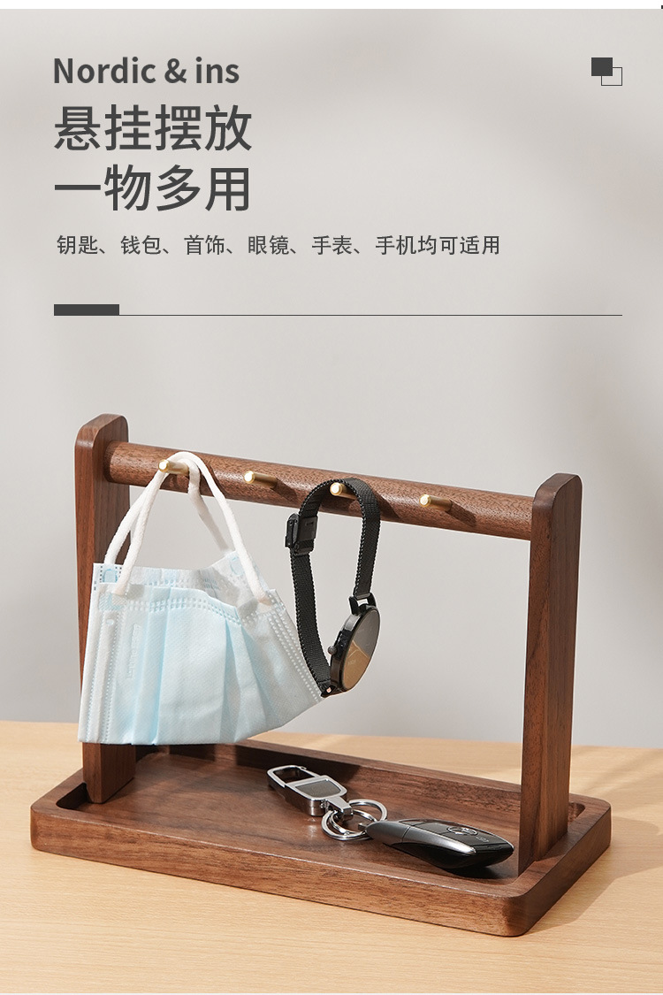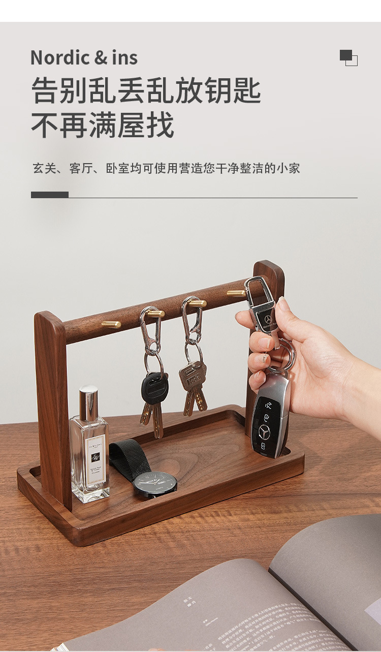 胡桃木入户玄关钥匙收纳摆件鞋柜客厅创意钥匙收纳架现代简约轻奢