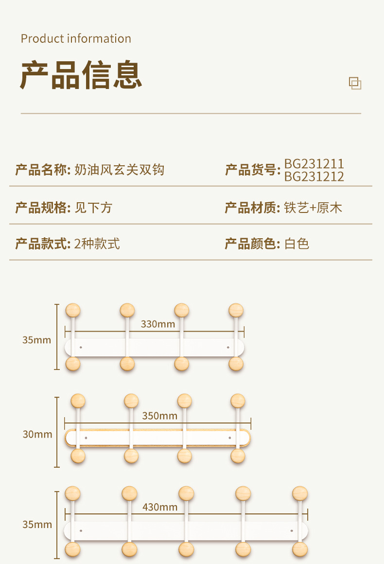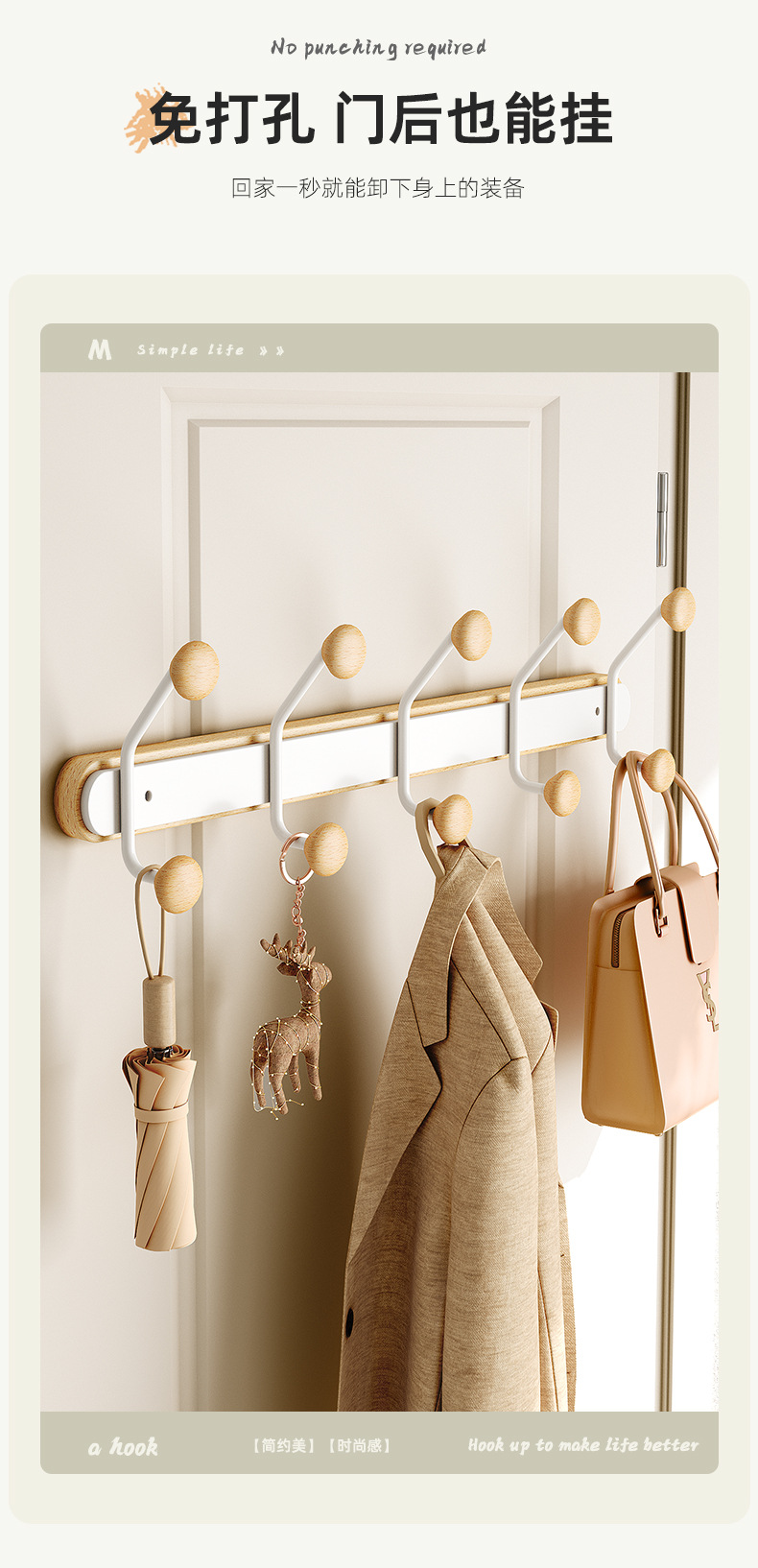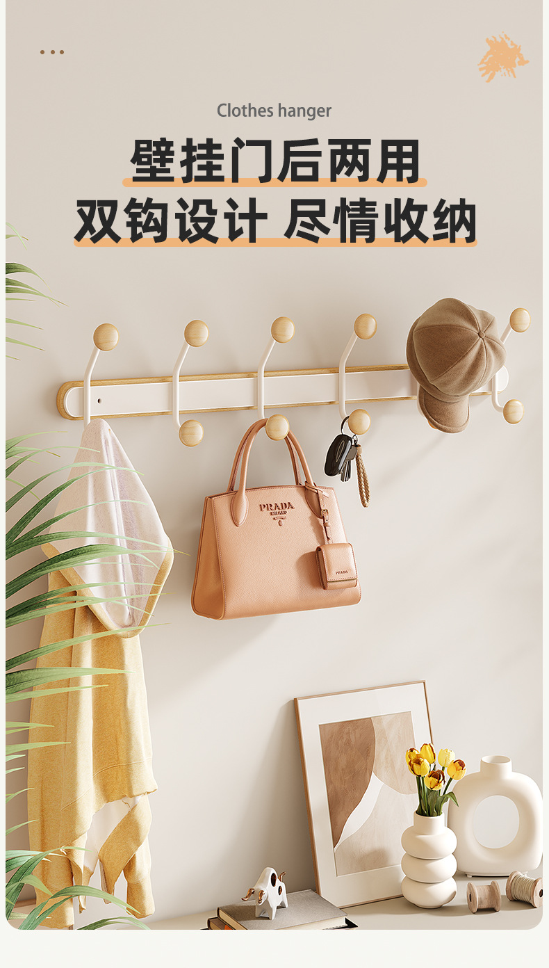 免打孔铁艺原木墙上挂钩粘钩家用墙壁壁挂挂衣钩玄关墙双排钩