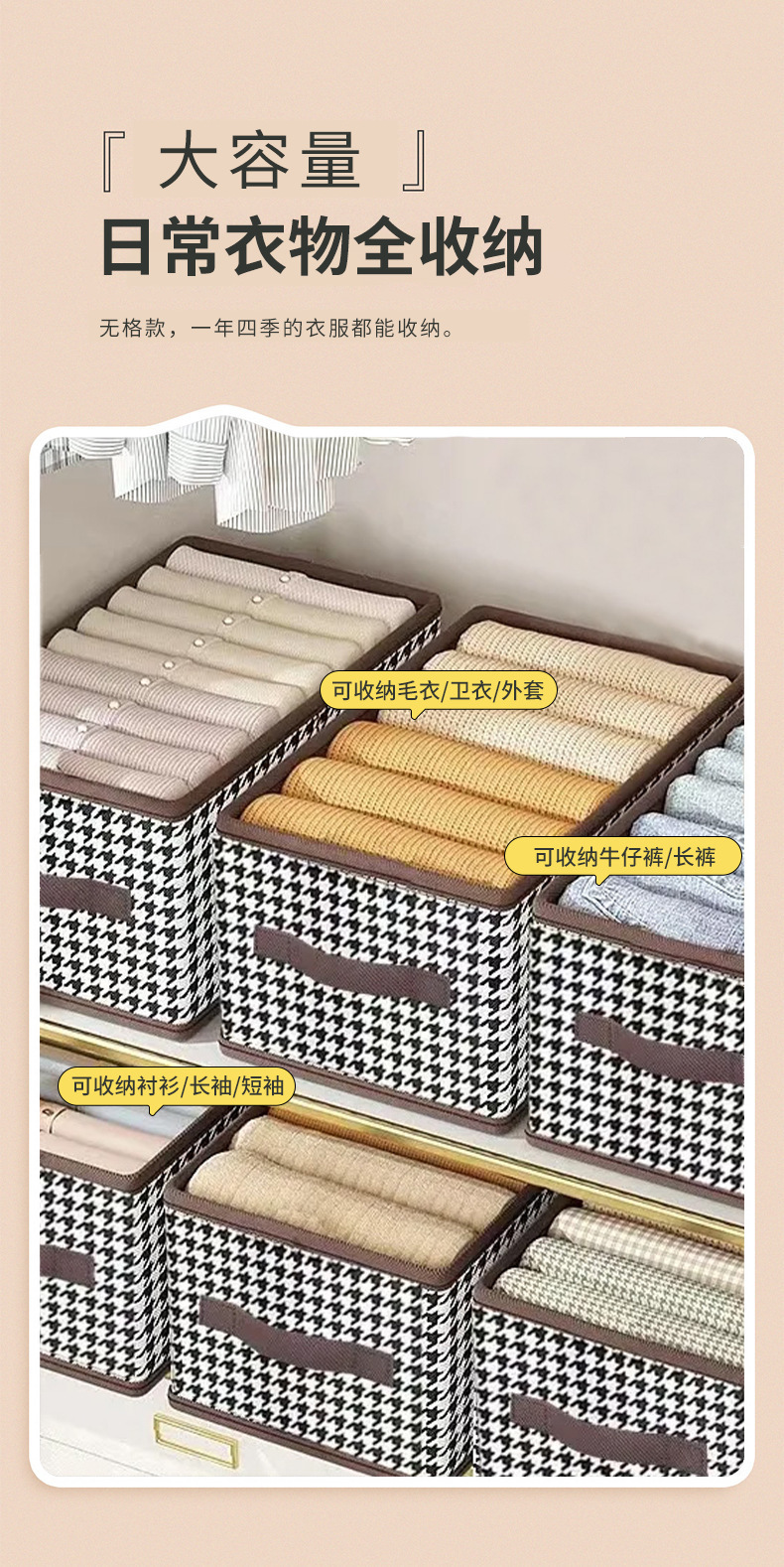千鸟格收纳盒裤子神器大容量家用学生宿舍衣柜抽屉折叠储物盒