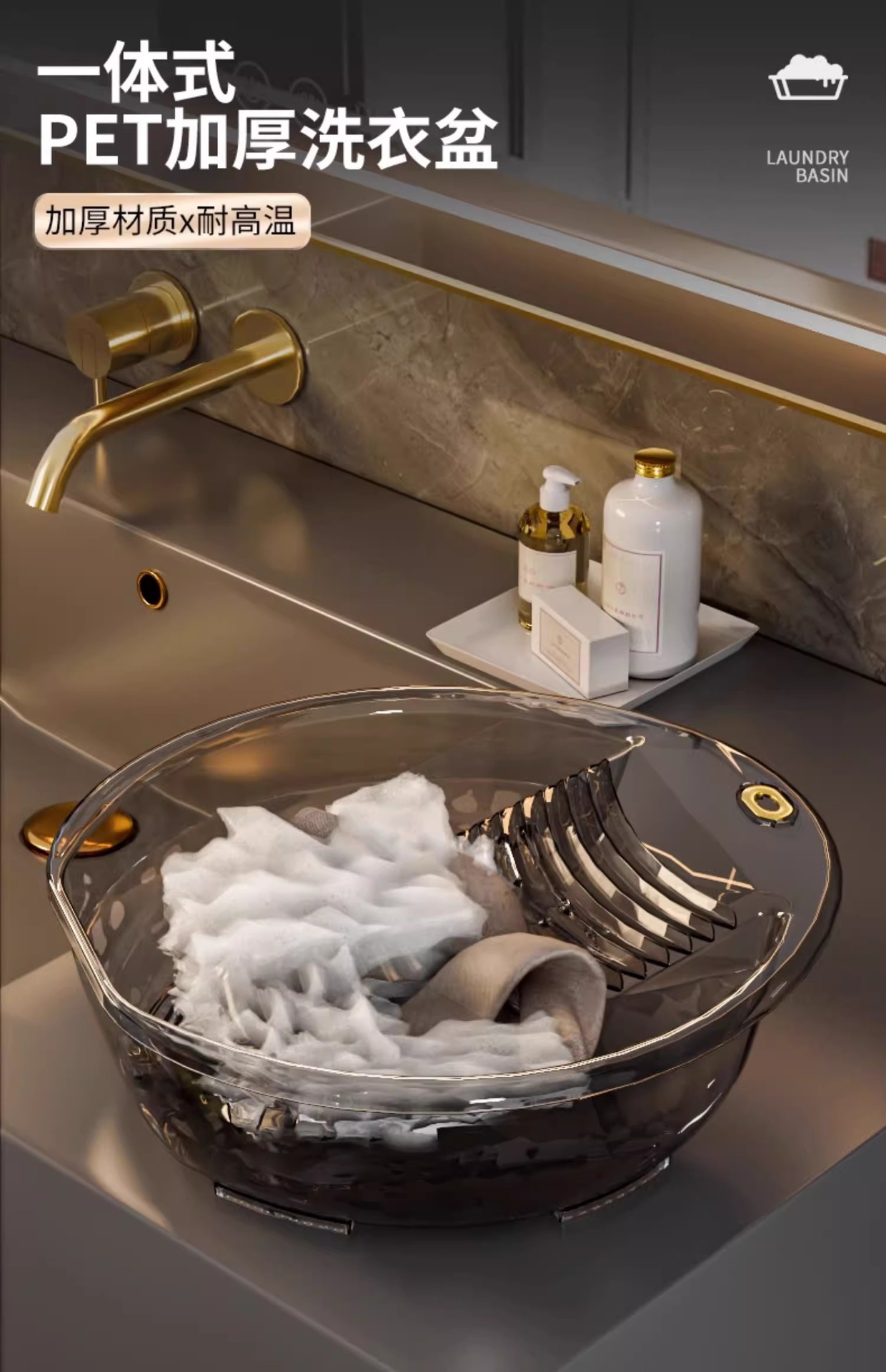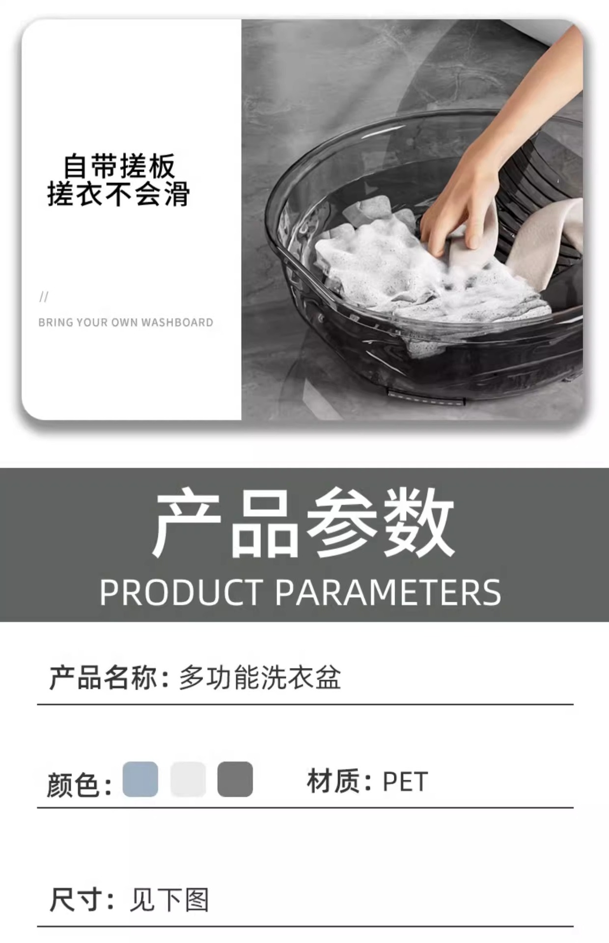 洗衣盆带搓衣板 一体式家用PET婴儿家用学生宿舍洗脚盆搓衣盆批发