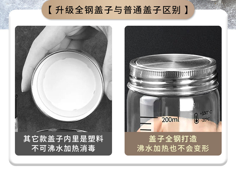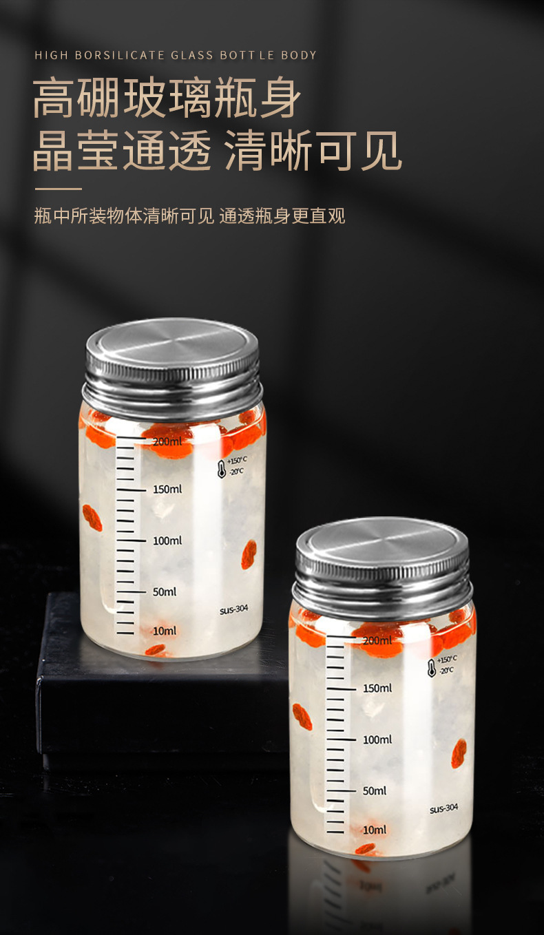 高硼硅34全钢燕窝瓶可蒸煮内置密封圈家用食品级分装玻璃瓶