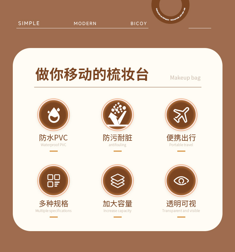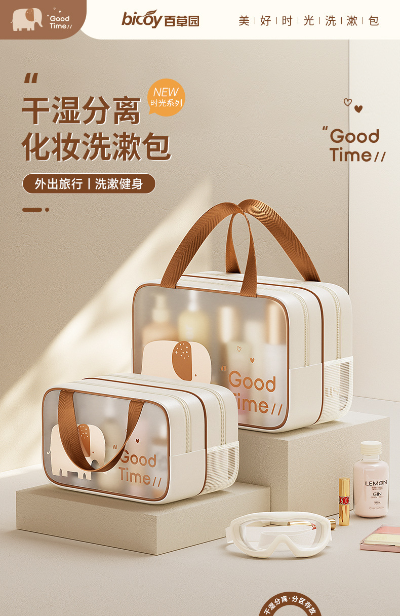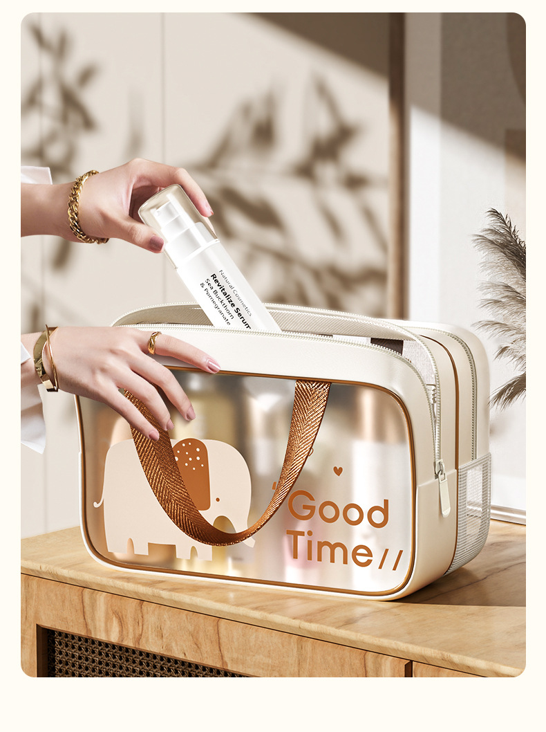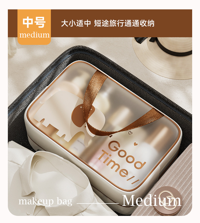 PVC化妆包大容量防水洗漱包透明旅行便携手提化妆品收纳袋洗浴包
