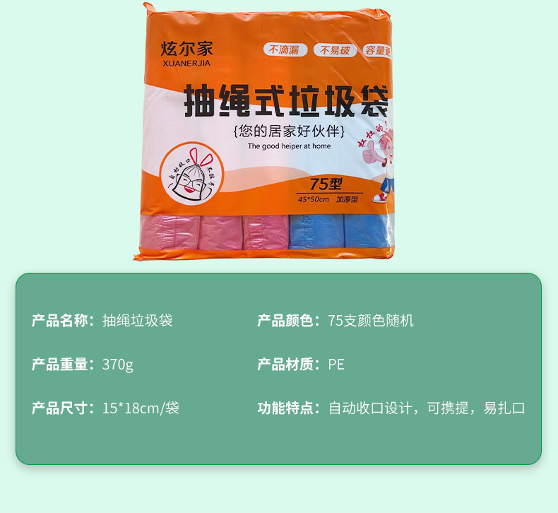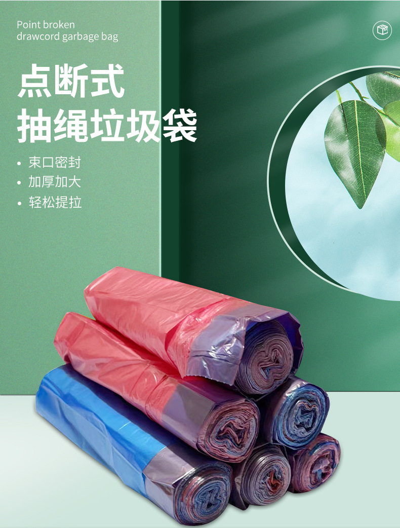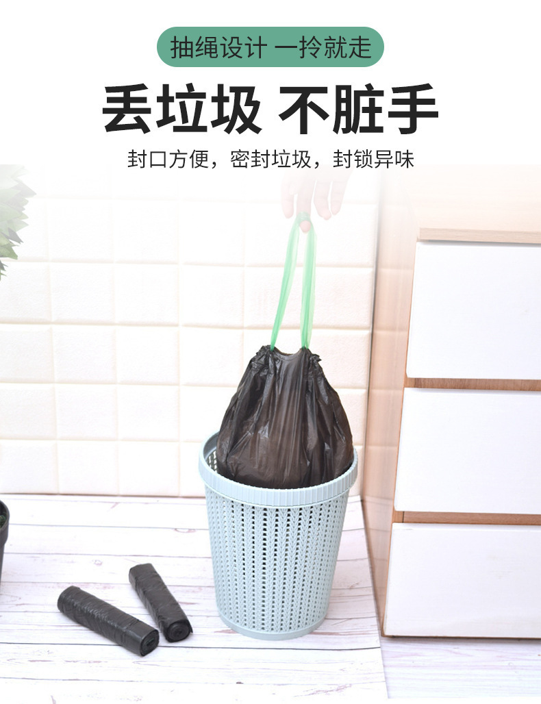 抖音同款新品家用抽绳式加厚大号收口手提垃圾袋可降解抽绳垃圾袋