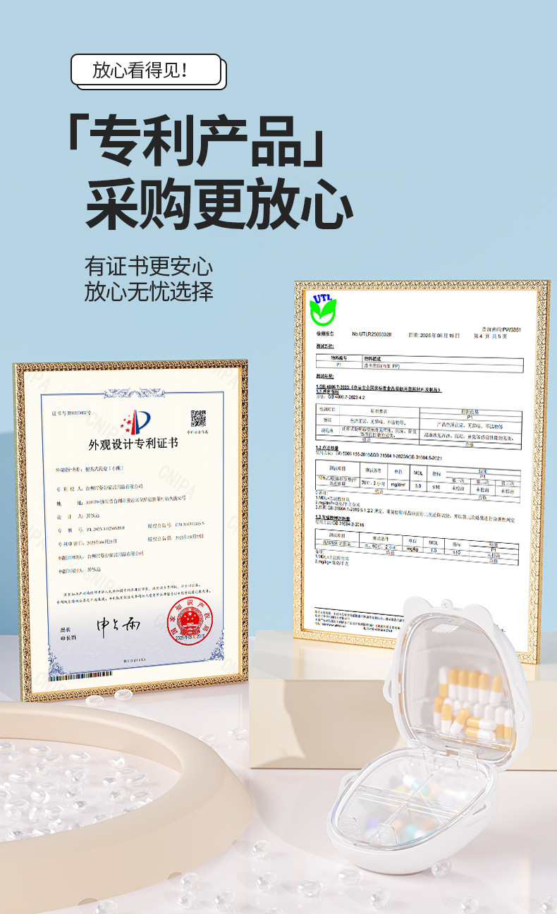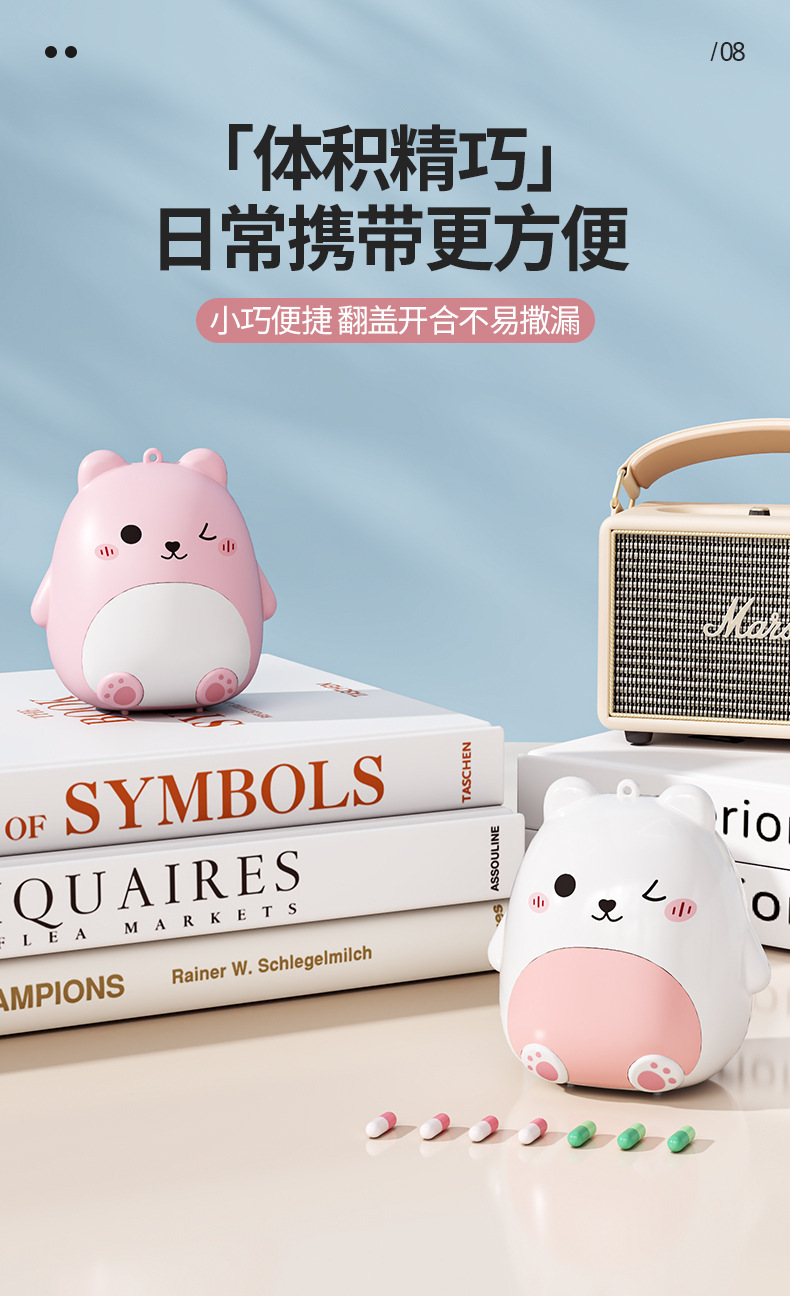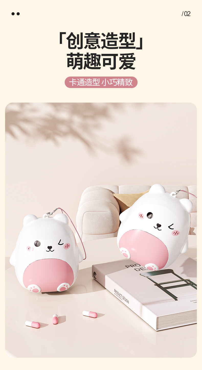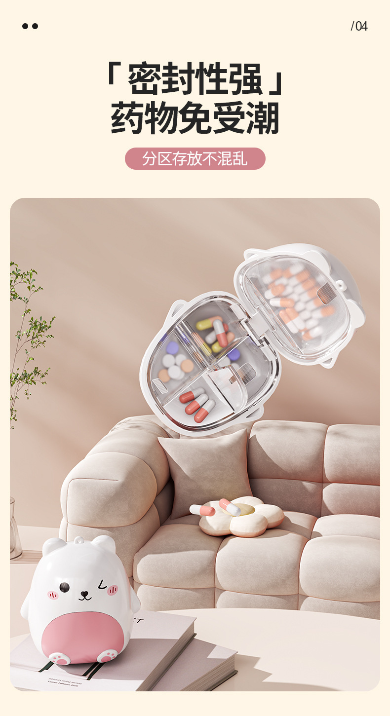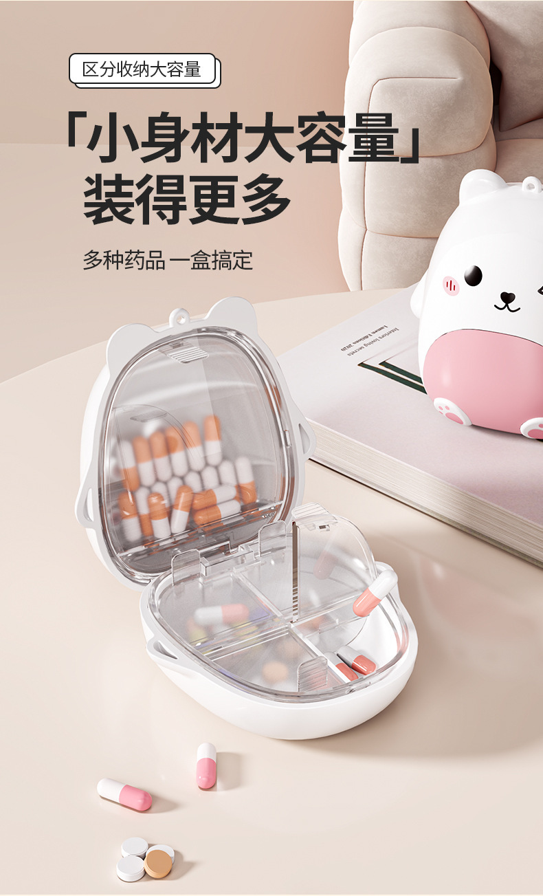 迷你随身便携式药盒 萌趣小熊卡通首饰收纳盒 旅行密封五格分装盒