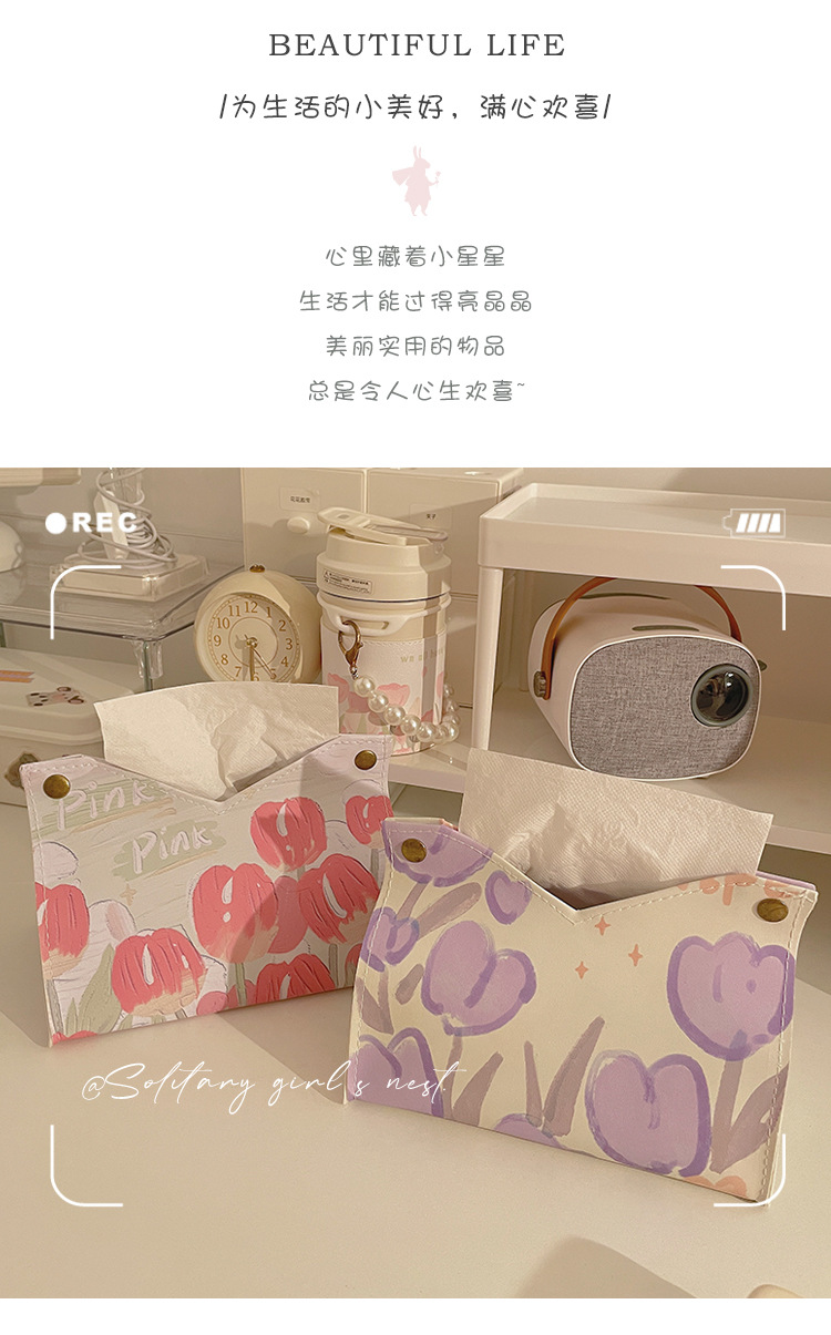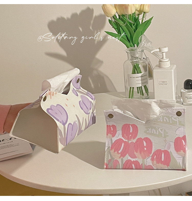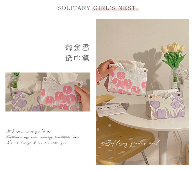 ins家用纸巾盒客厅抽纸盒多功能收纳餐巾纸简约现代郁金香纸抽盒