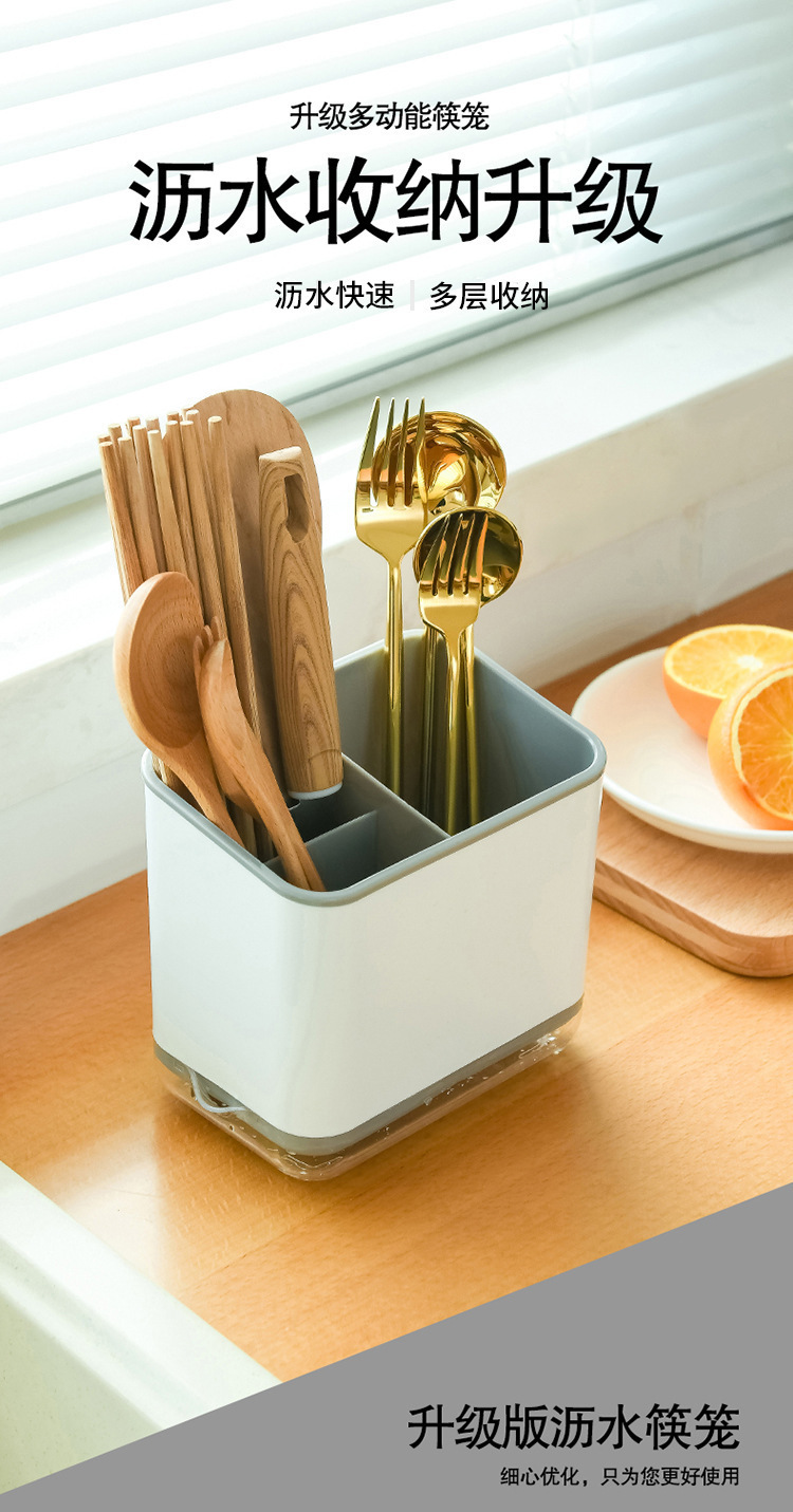 厨房简约风筷子笼家用多功能厨房沥水筷子筒筷子勺子一体收纳盒