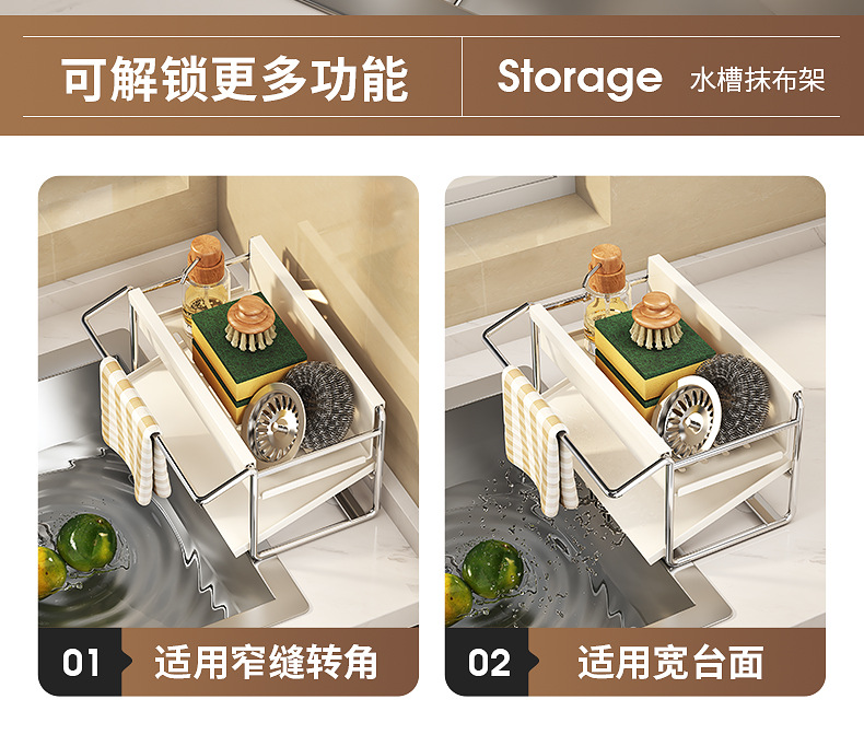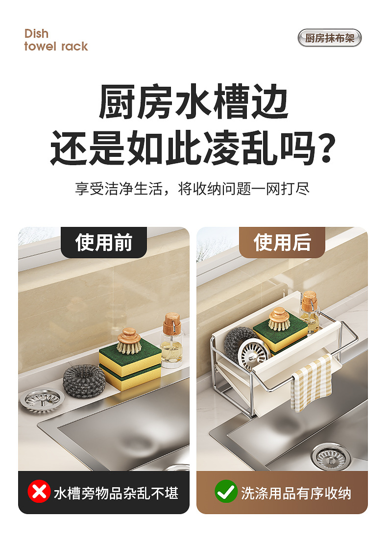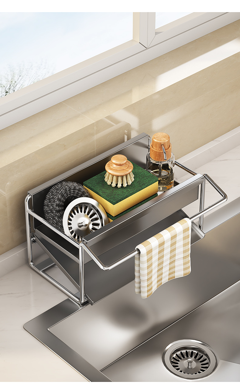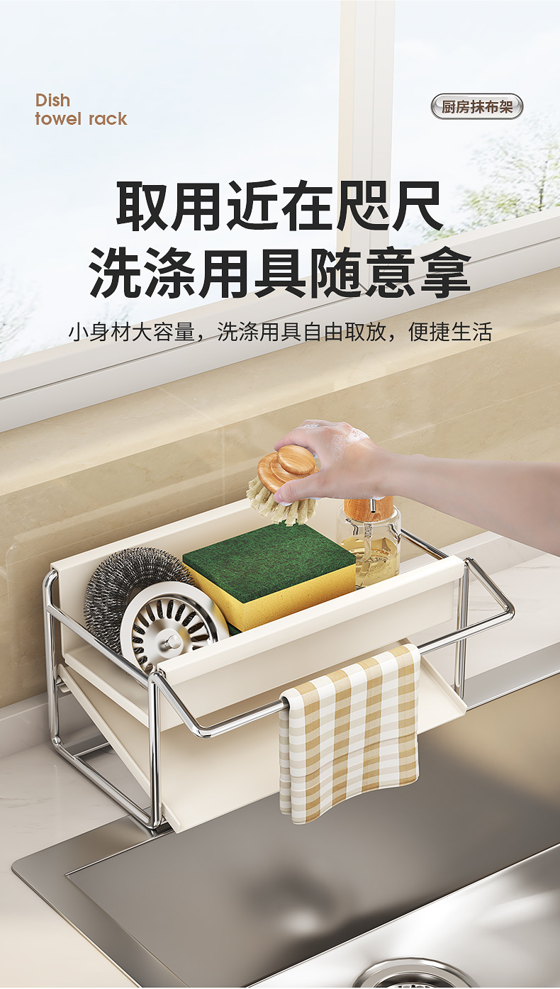 新款不锈钢厨房抹布收纳架水池水龙头海绵抹布多功能一体式收纳架