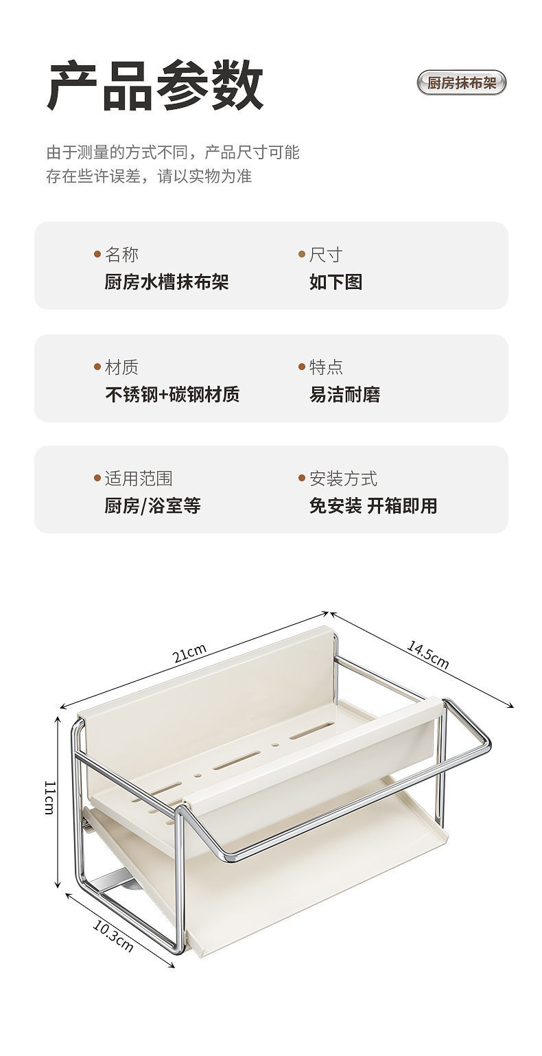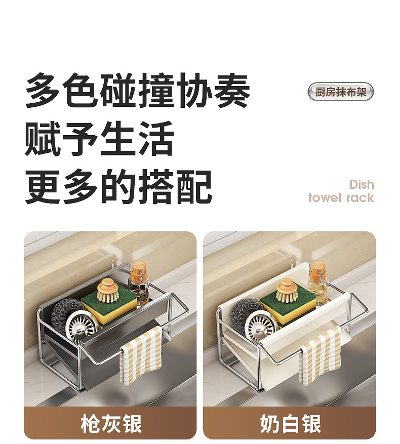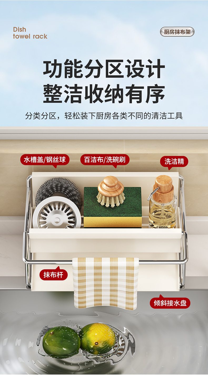 新款不锈钢厨房抹布收纳架水池水龙头海绵抹布多功能一体式收纳架