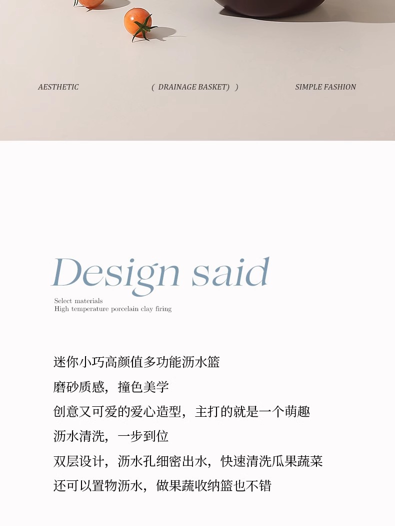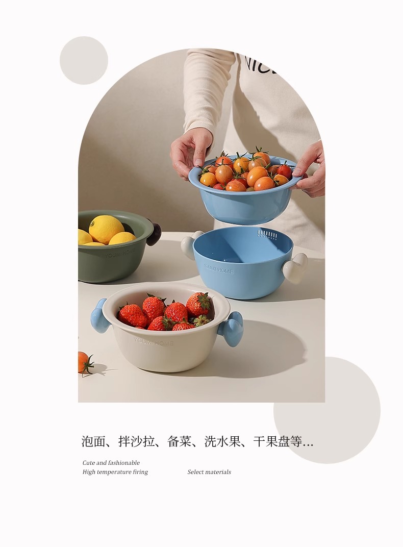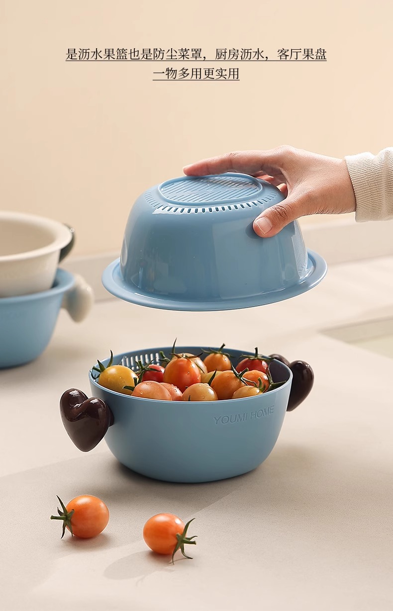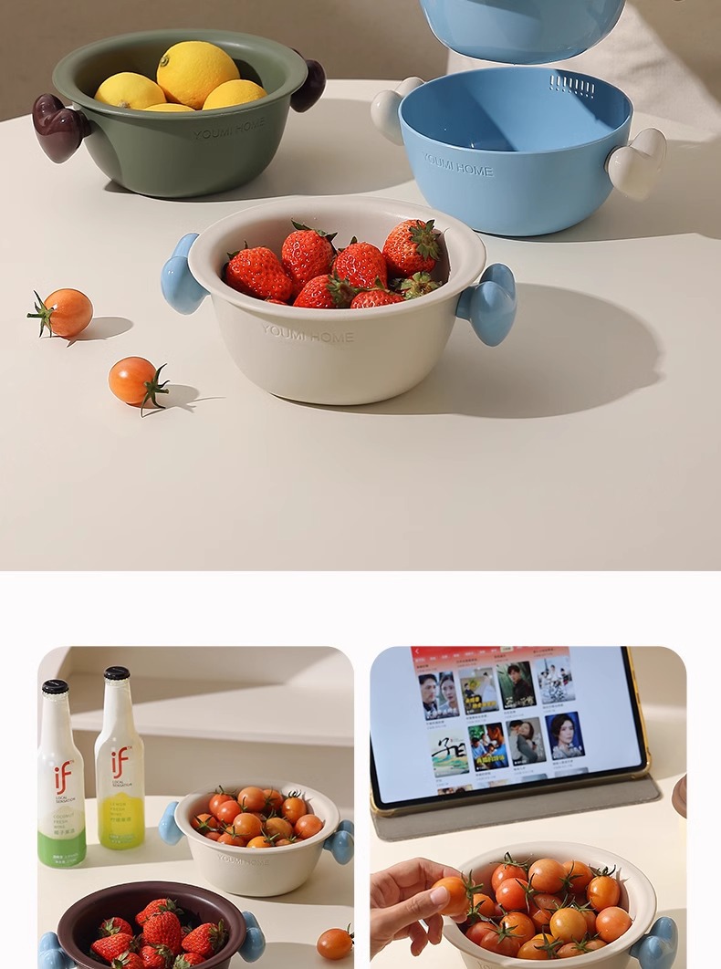 原创小号沥水篮双层家用可爱厨房客厅水果篮滤水盘干果盘坚果盘