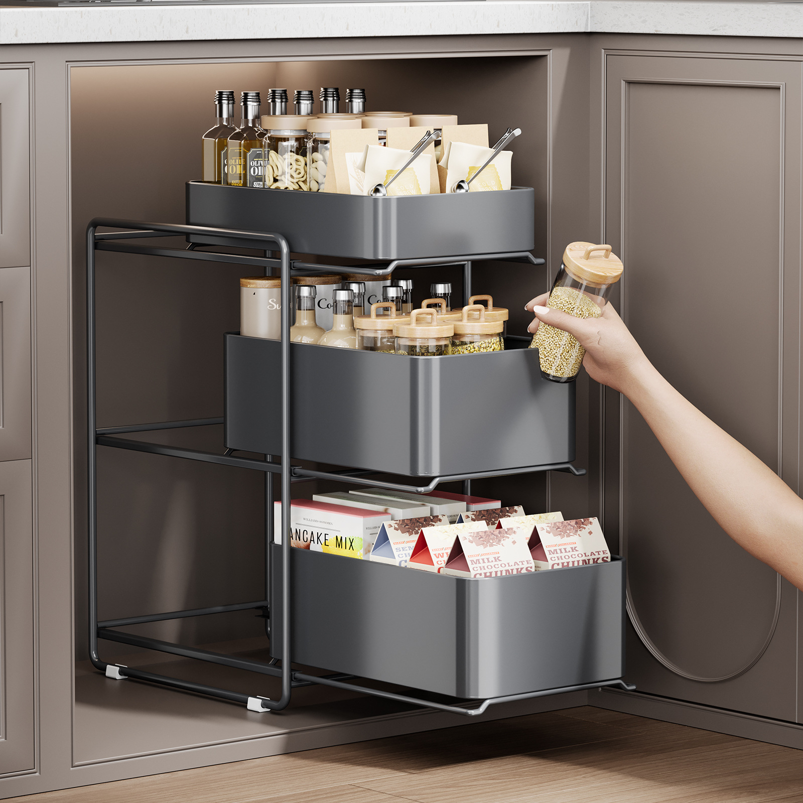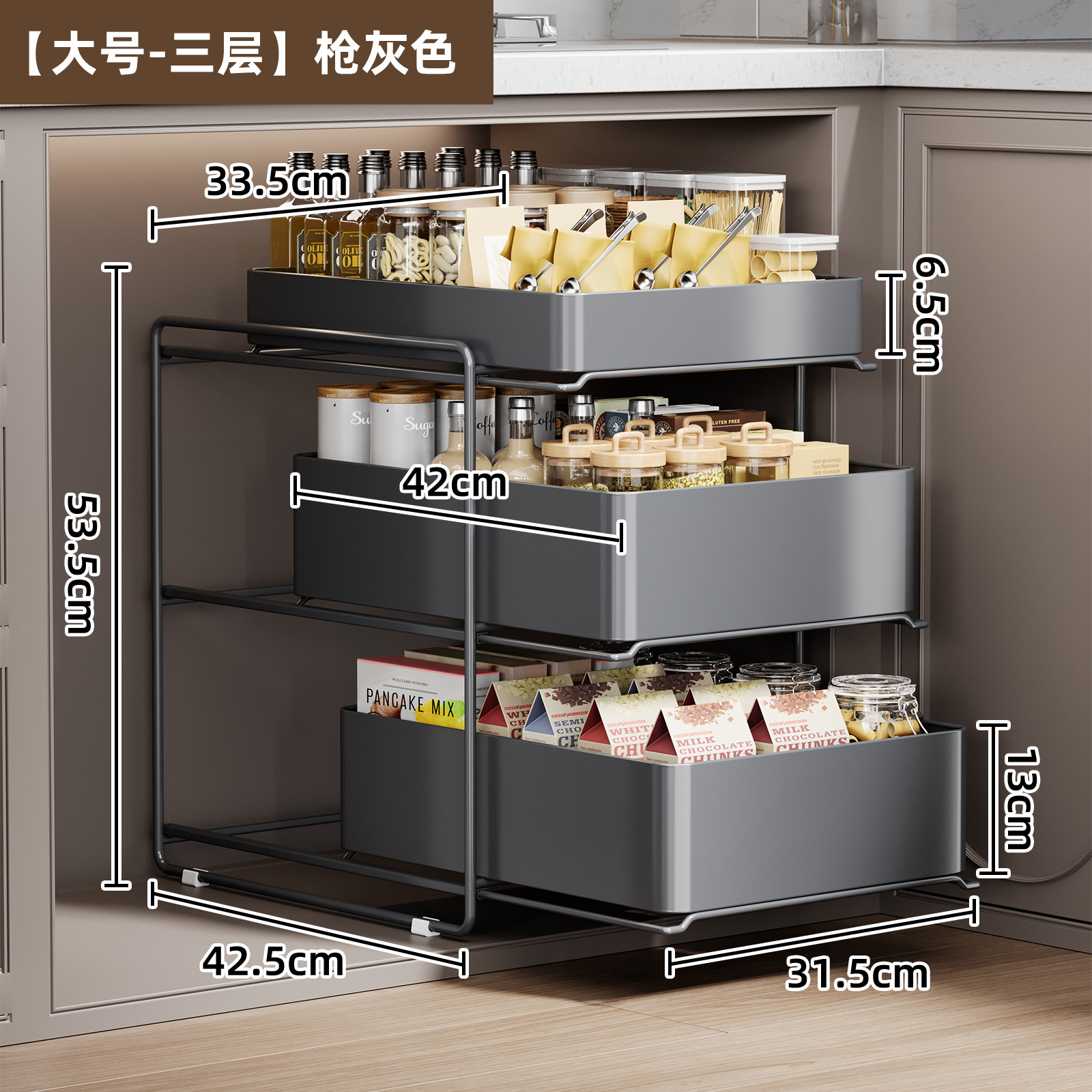 厨房下水槽置物架调料碗碟抽拉式水池多功能收纳架橱柜拉篮分层架