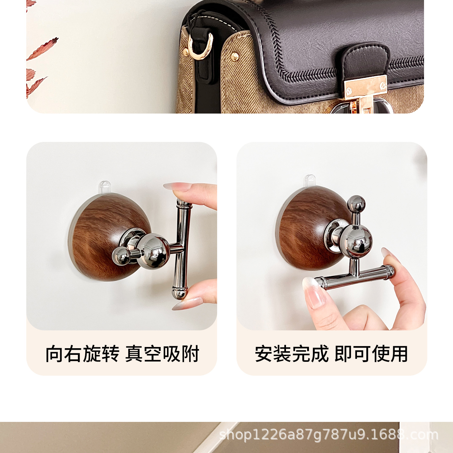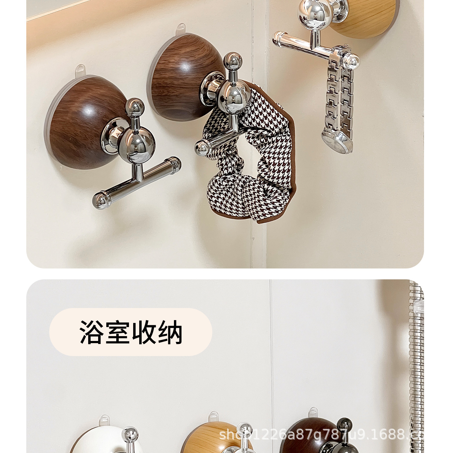木纹吸盘挂钩强力免打孔玄关门后挂衣钩卫生间强承重无痕浴室粘钩