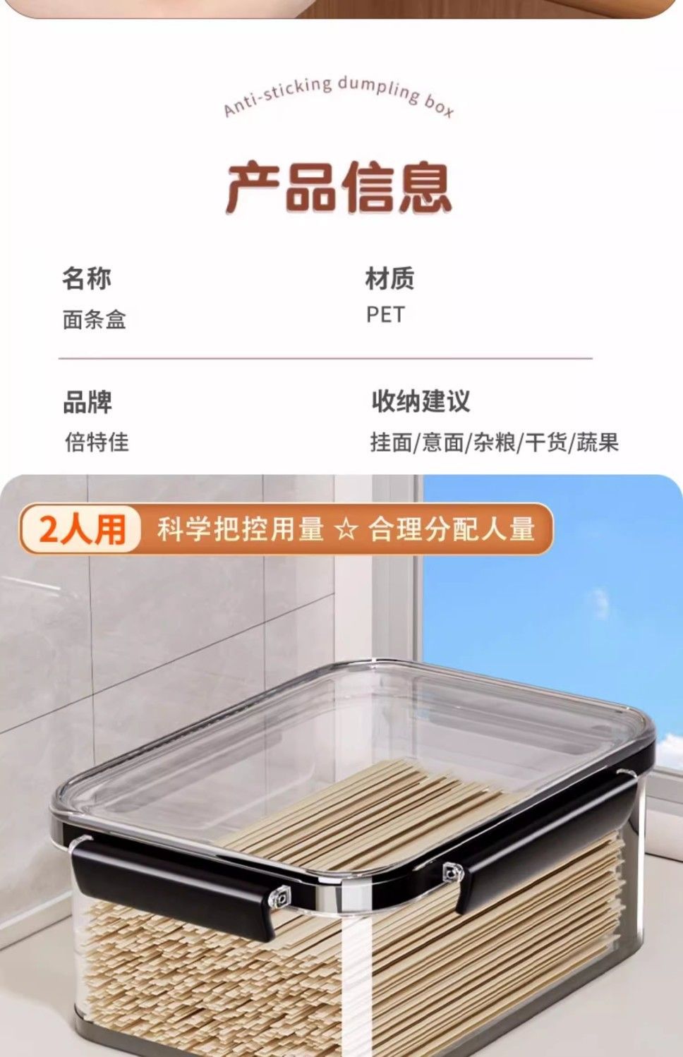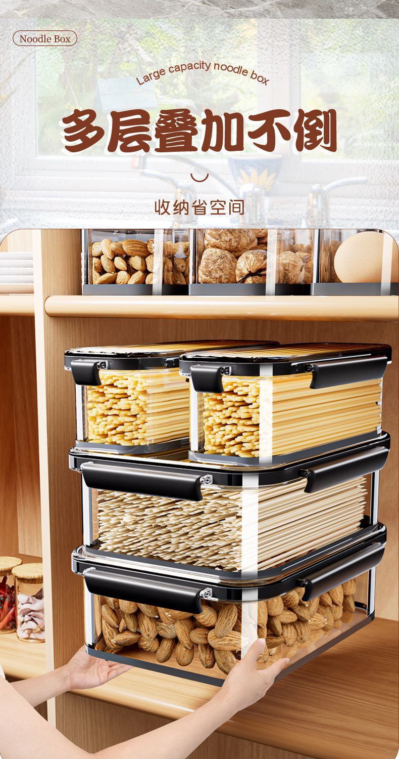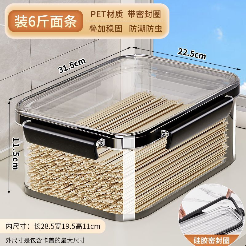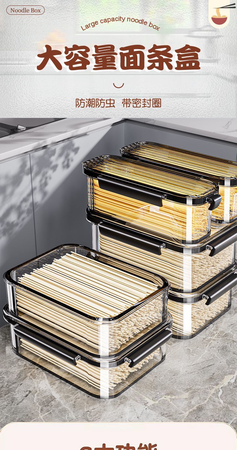 面条收纳盒长方形食品级冰箱厨房密封罐保鲜盒子杂粮装意面挂面桶