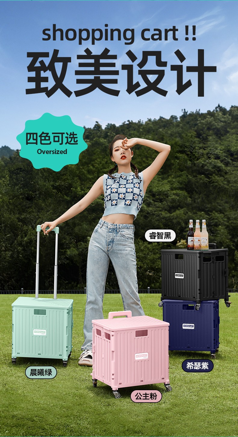 购物小推车露营超市便携折叠购物车买菜车小拉车爬梯轮塑料拉杆车