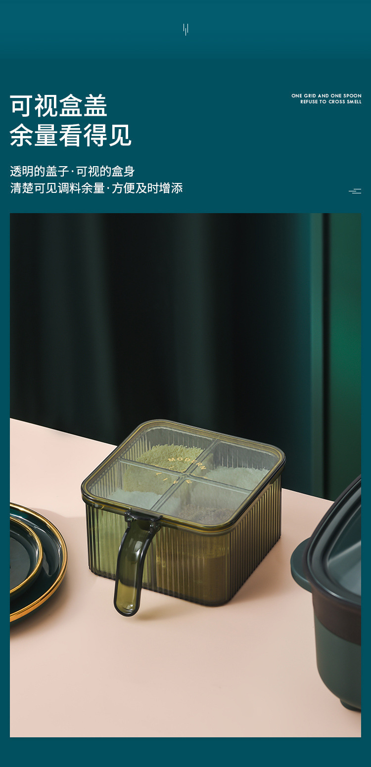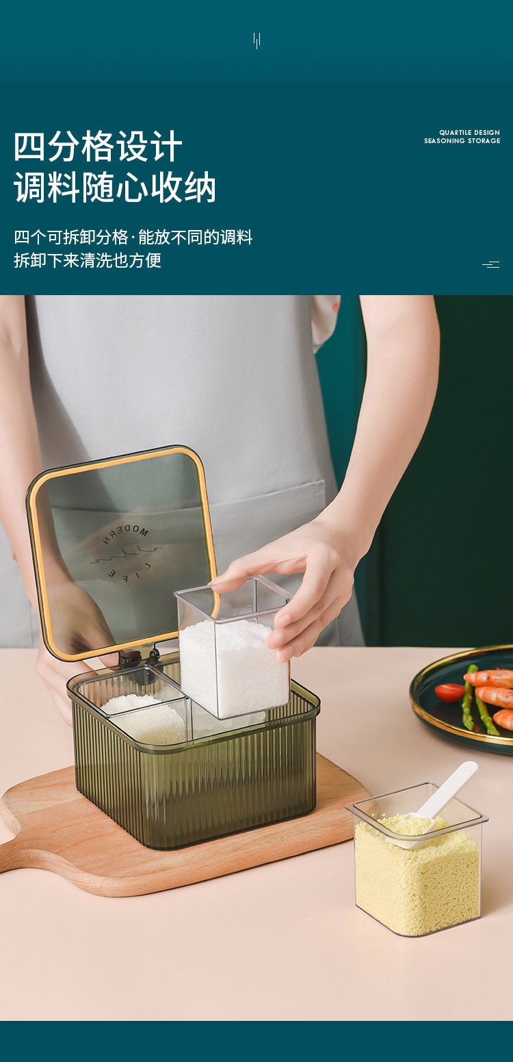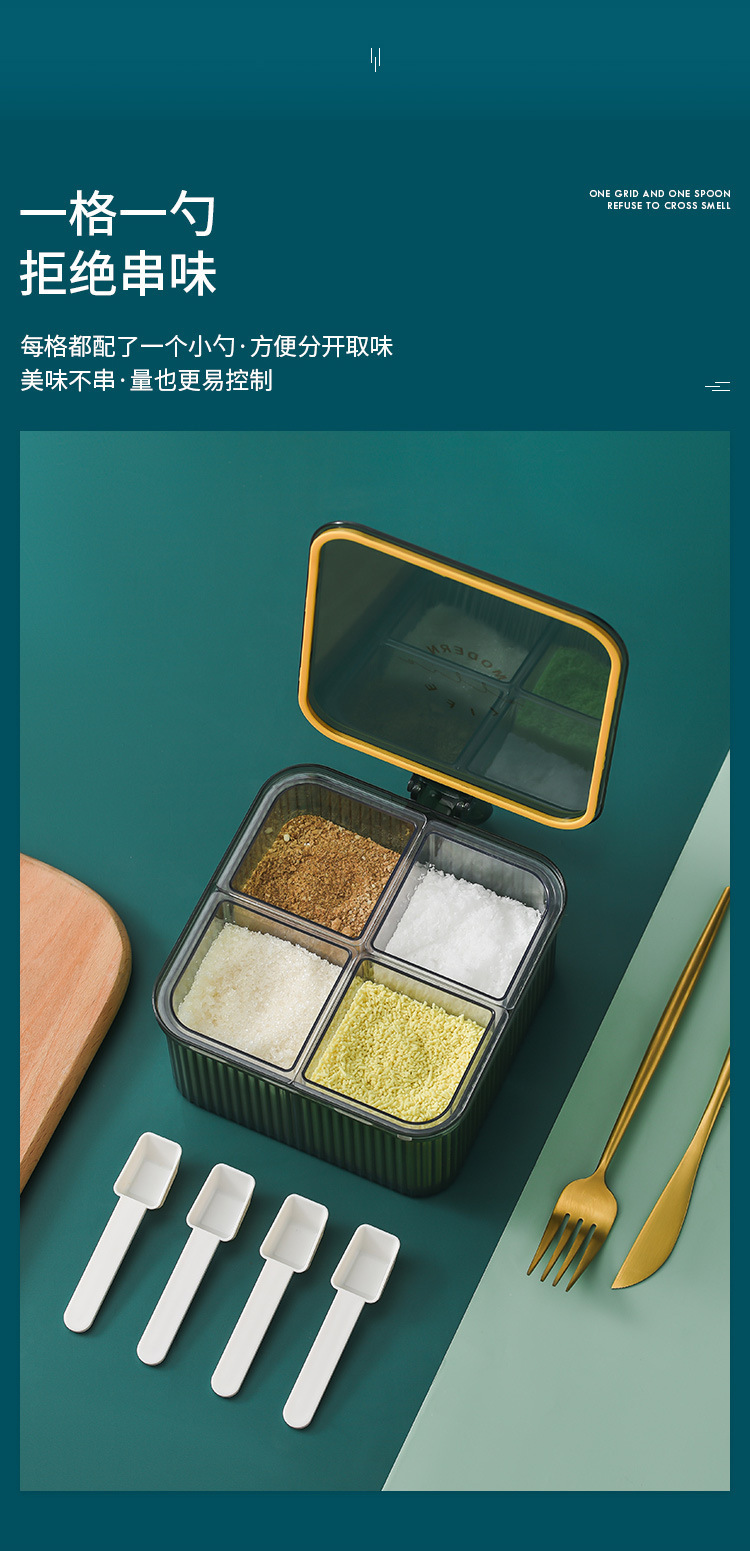 家用厨房防潮调味盒勺盖一体调料收纳盒组合套装 四合一调料盒