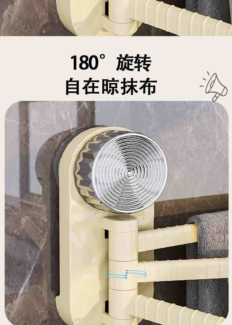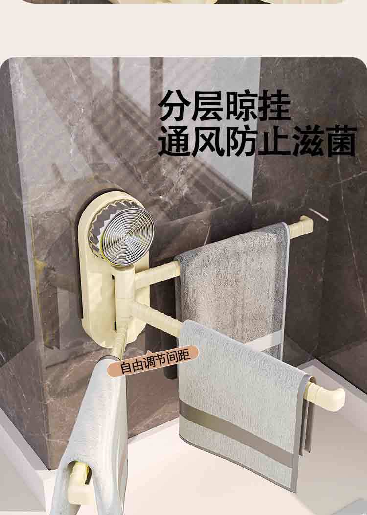 180度旋转吸盘毛巾架毛巾置物架免打孔挂钩奶油风高端浴室卫生间