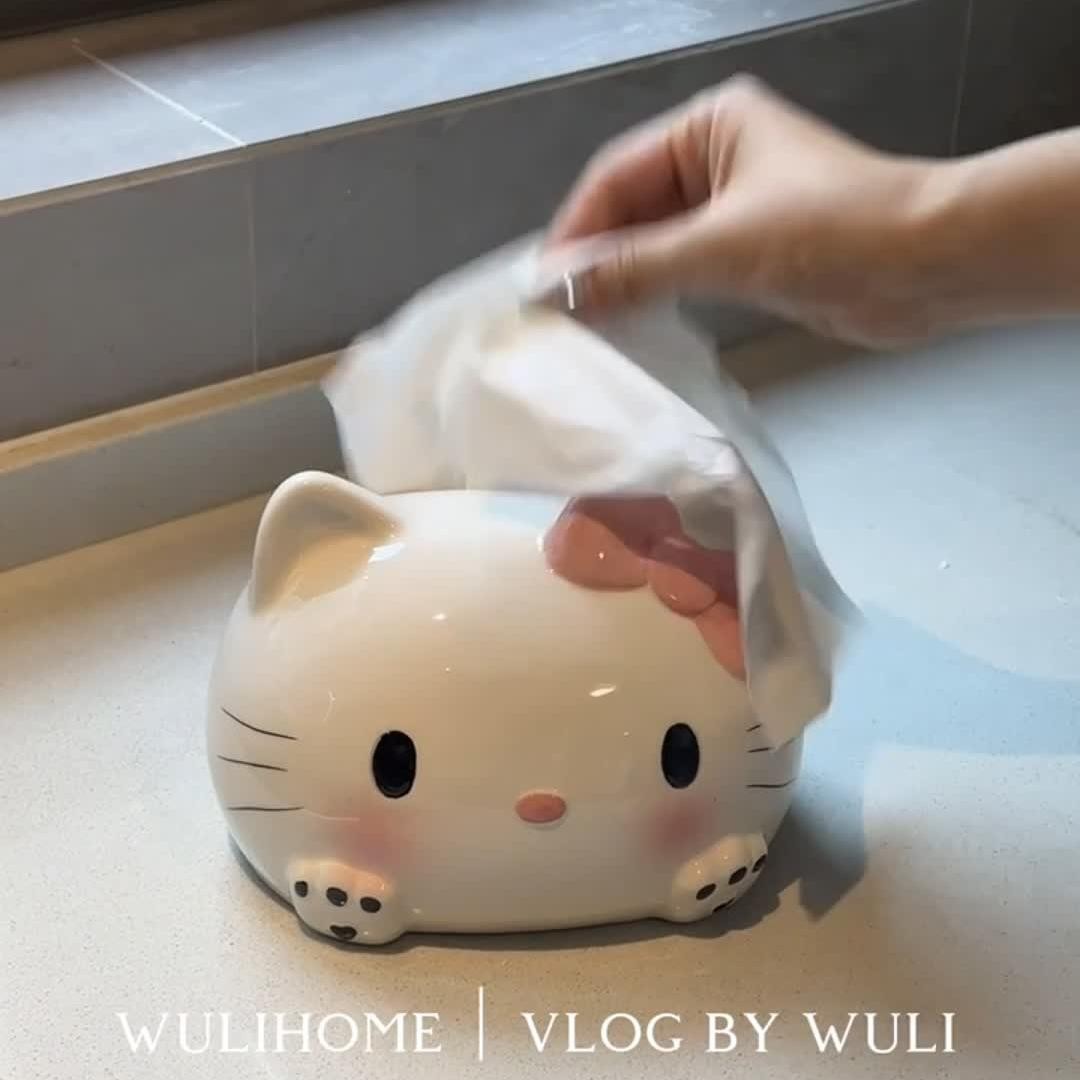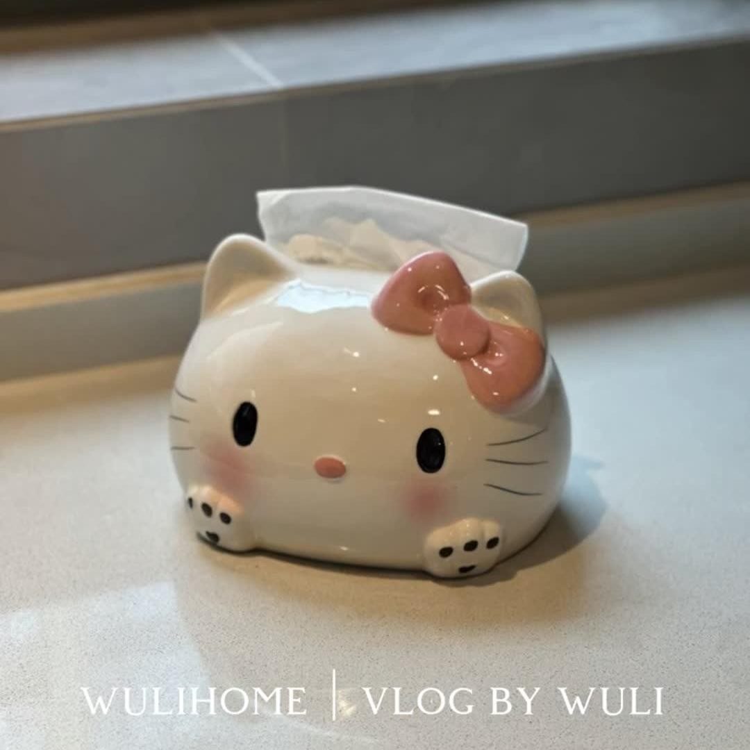 HelloKitty猫纸巾盒客厅桌面抽纸盒搪胶纸卷纸收纳盒家用装饰摆件