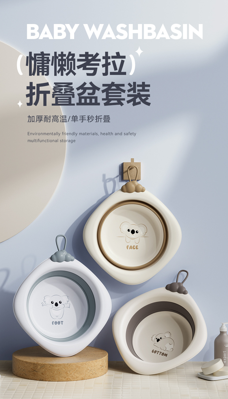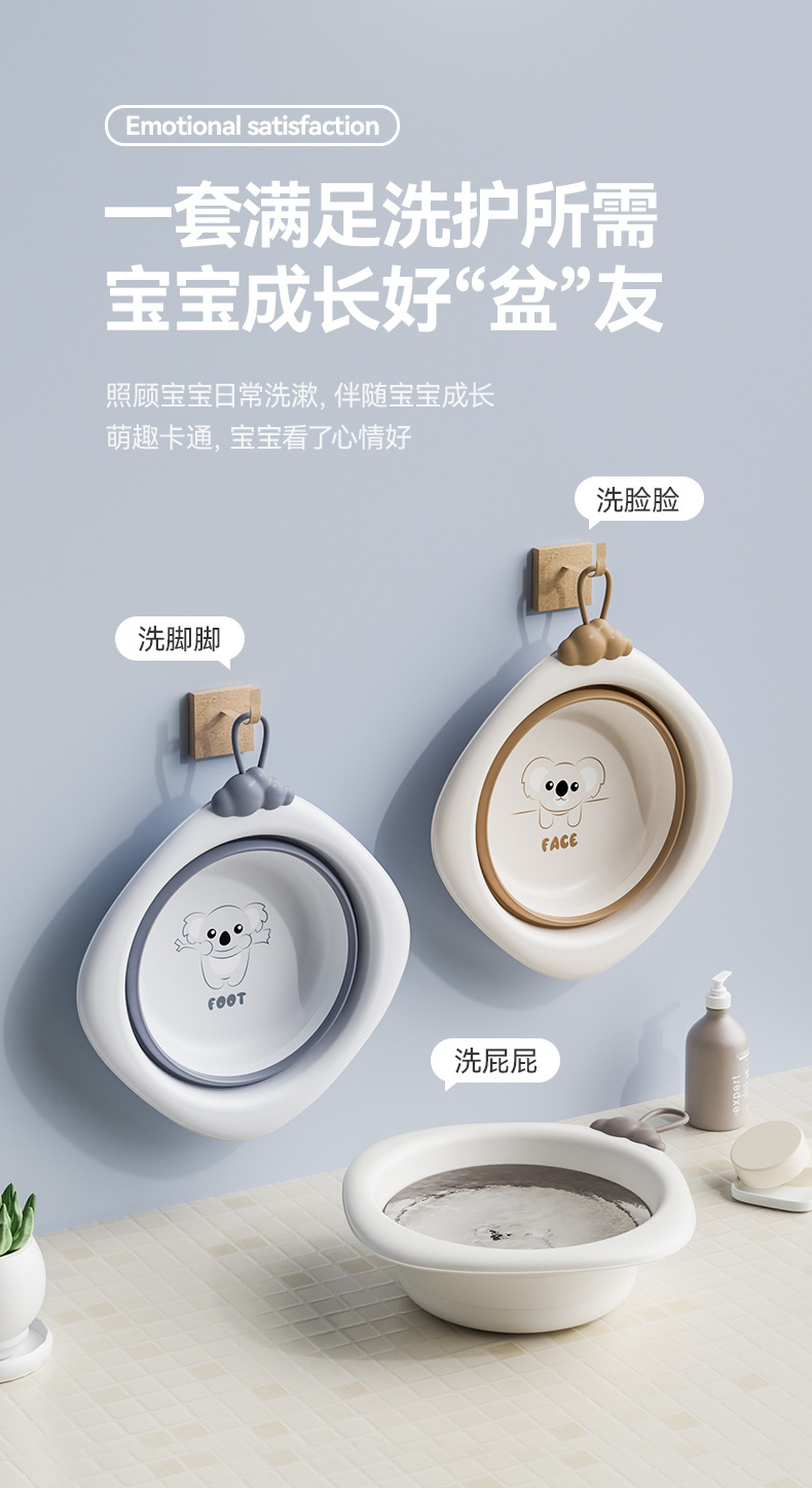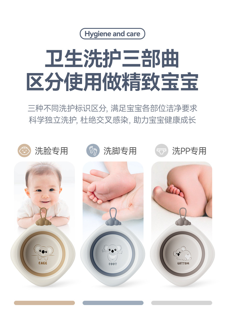 婴儿可折叠洗脸盆用儿童洗屁屁股新生儿初生宝宝专用小盆子三件套