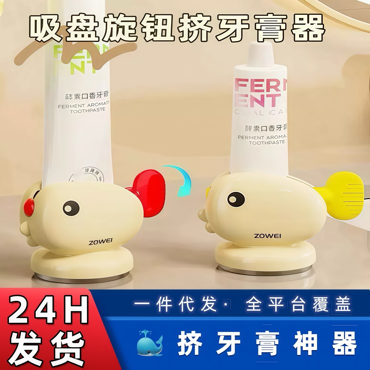 创意鲸鱼懒人牙膏挤压器洗面奶按压器手动牙膏夹子创意浴室牙膏架