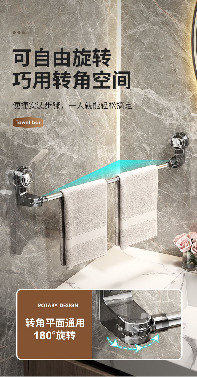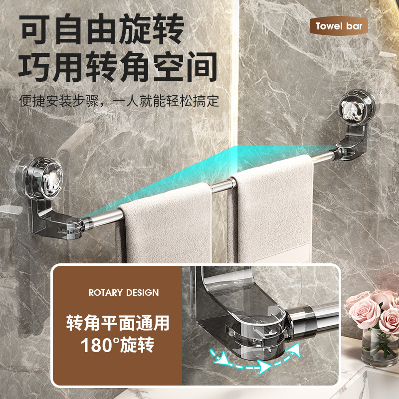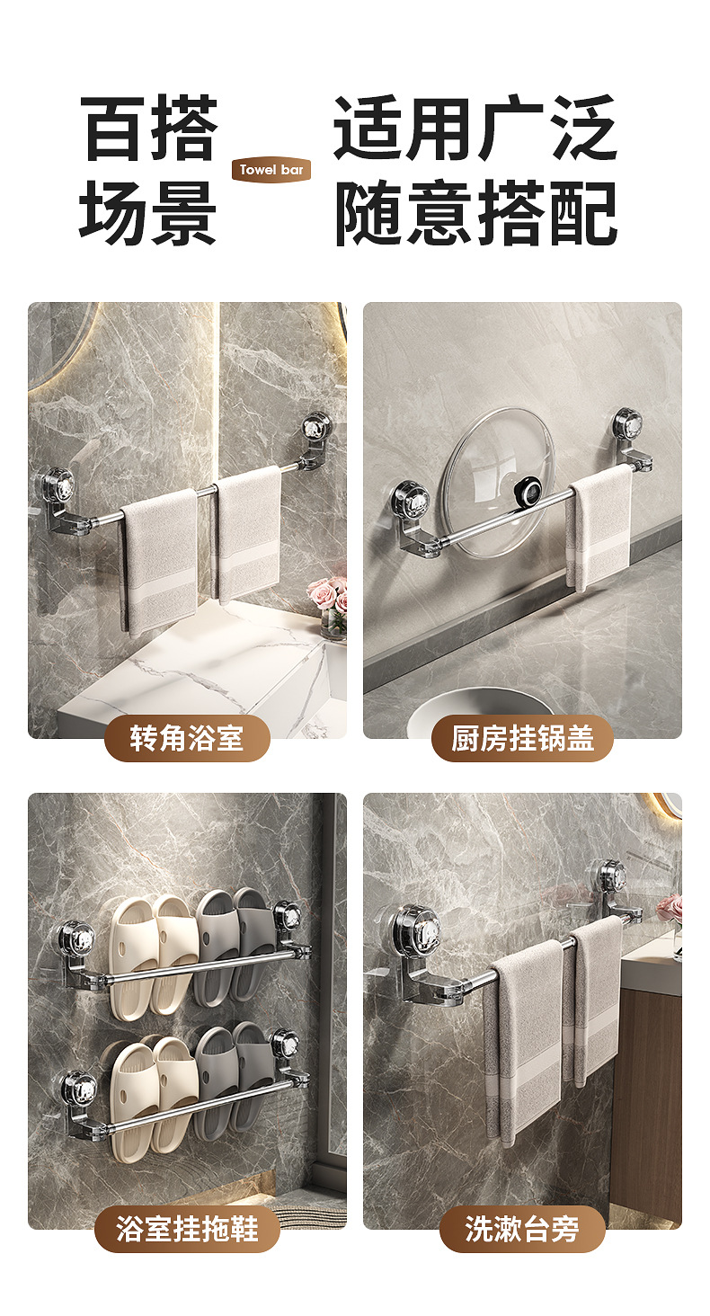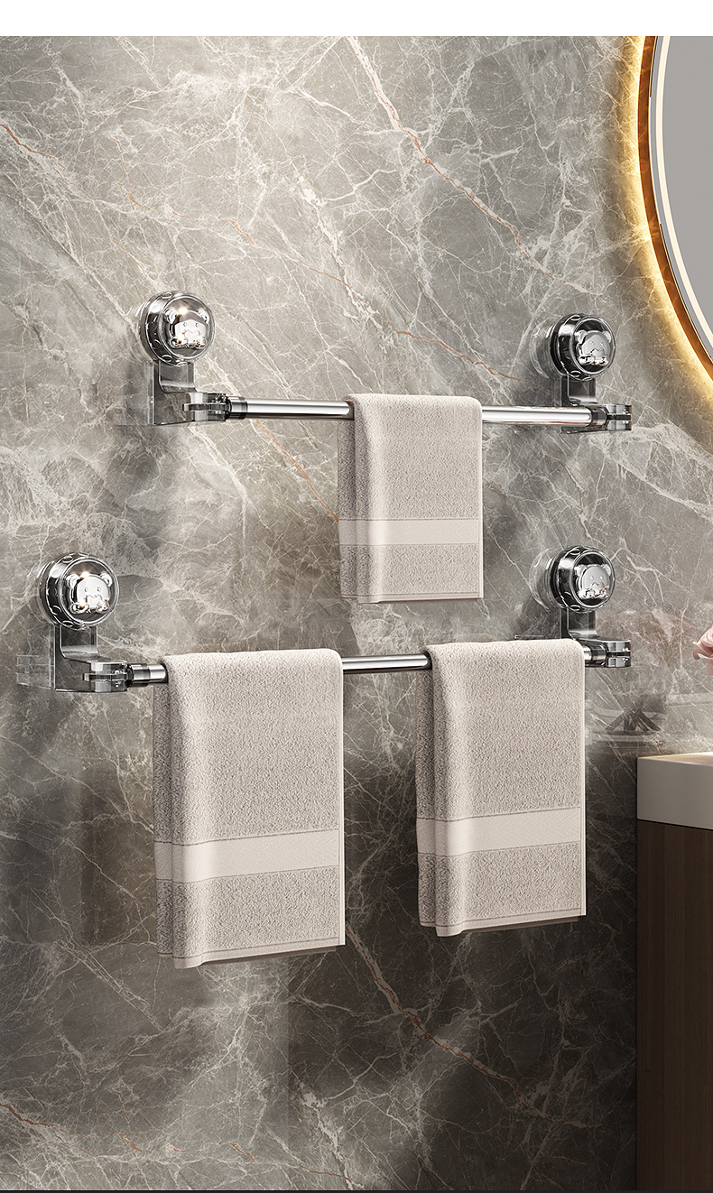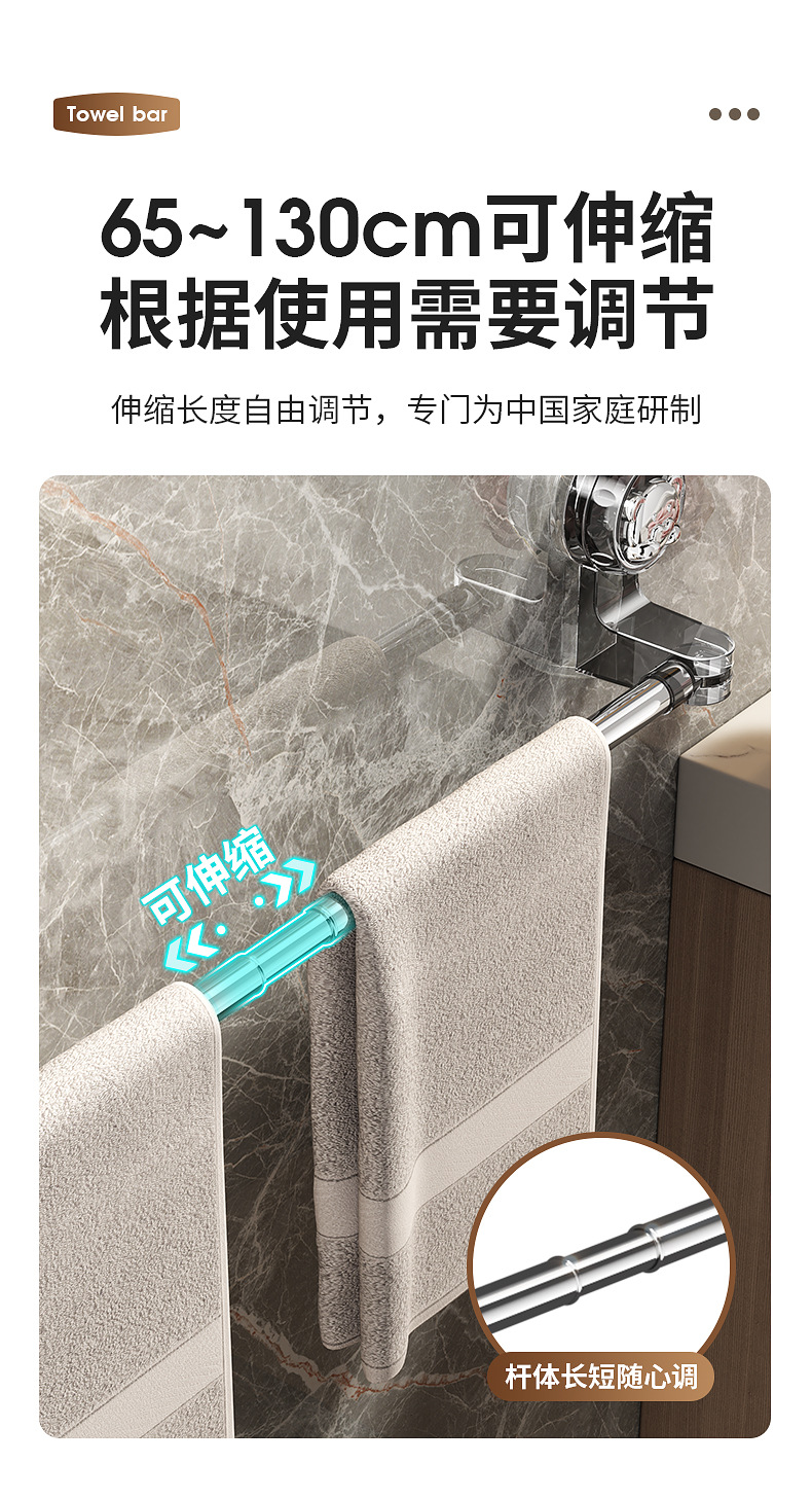 吸盘毛巾架卫生间免打孔浴室伸缩毛巾杆置物架洗手间浴巾收纳挂架
