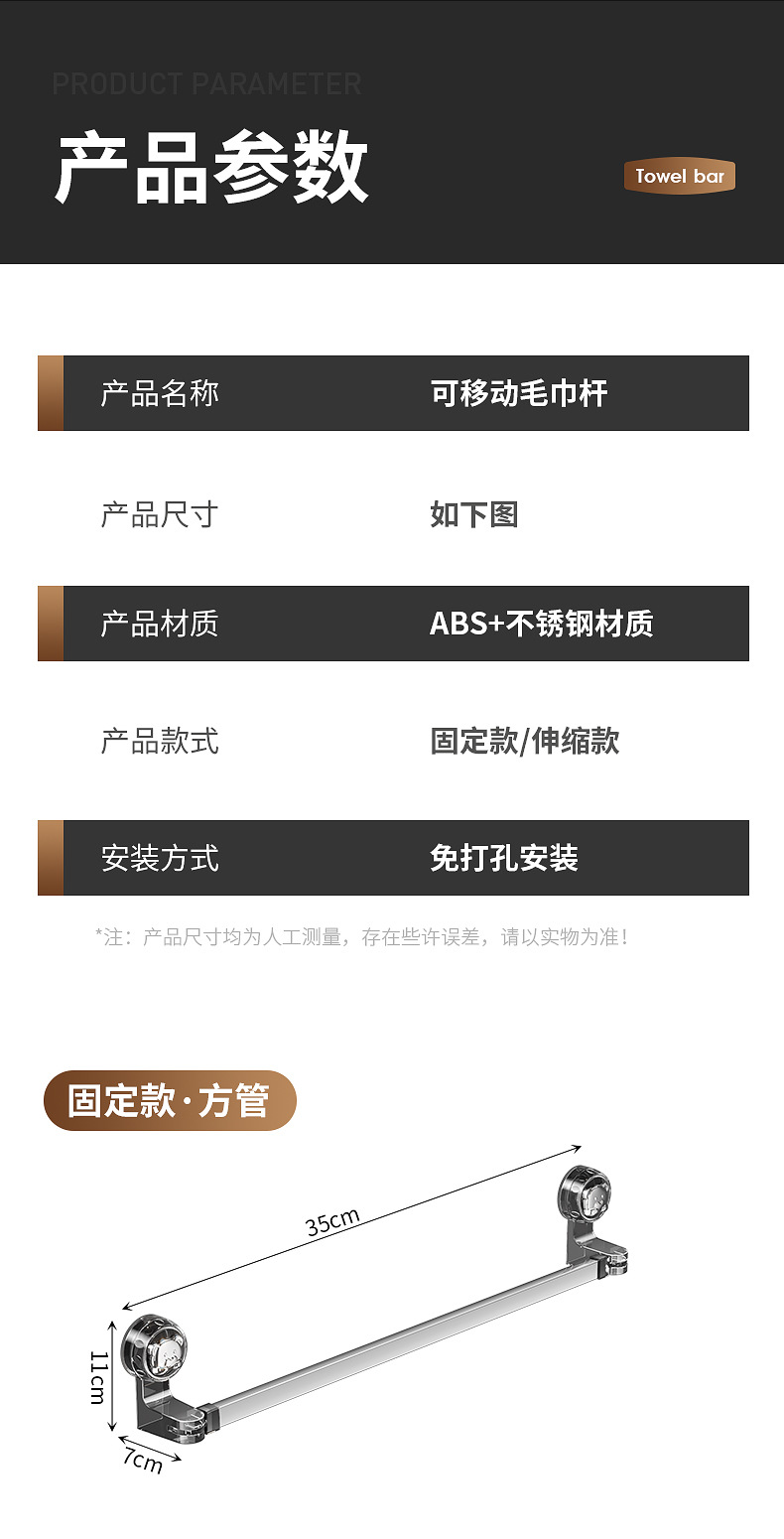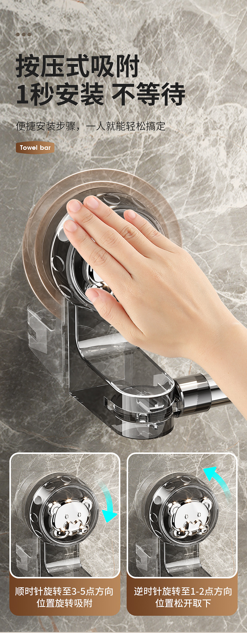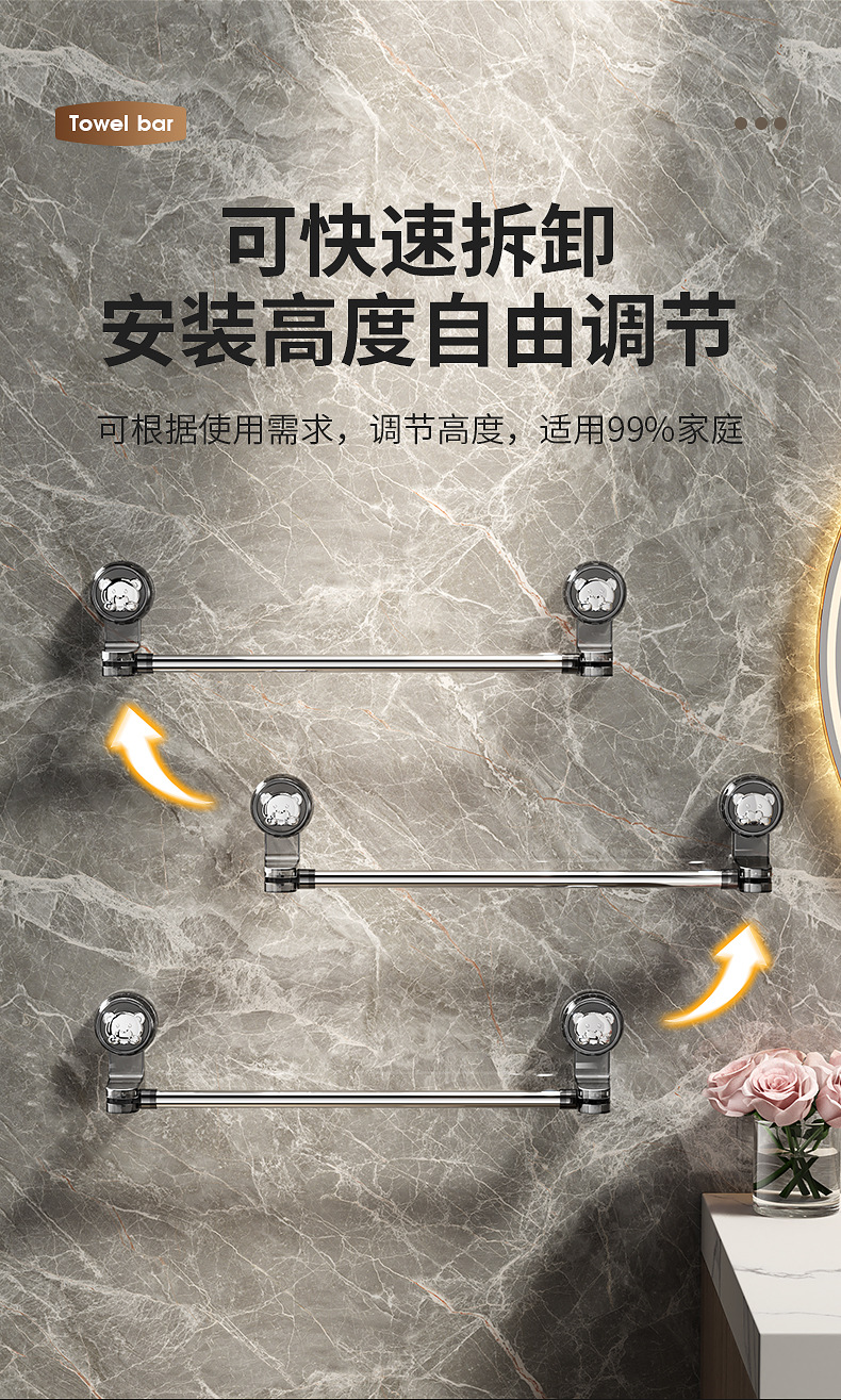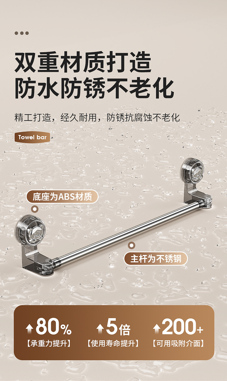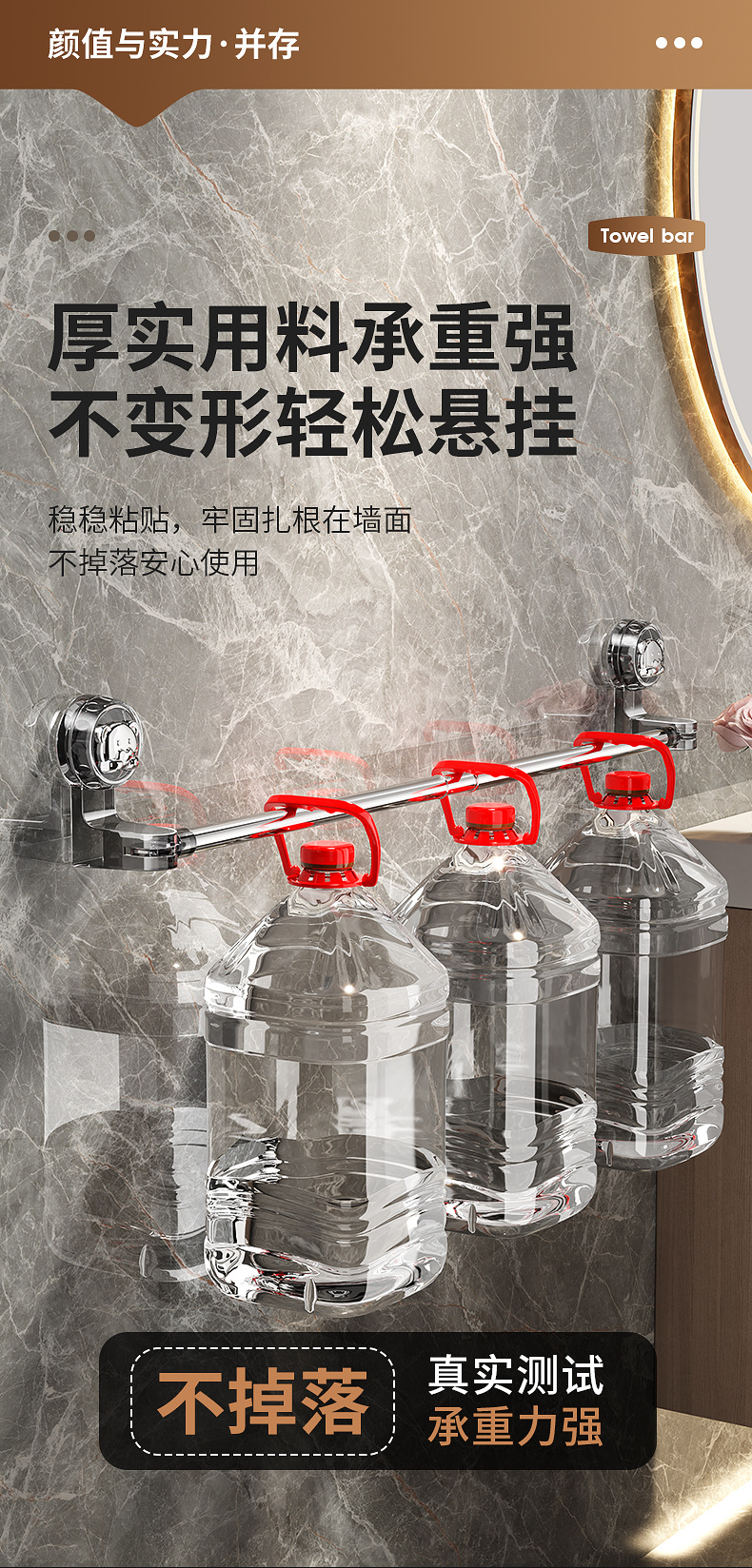 吸盘毛巾架卫生间免打孔浴室伸缩毛巾杆置物架洗手间浴巾收纳挂架