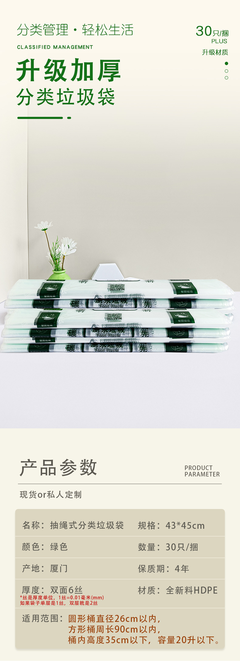 抽绳式垃圾分类袋源头工厂厦门创凯批发一件代发拉极袋塑料袋包邮