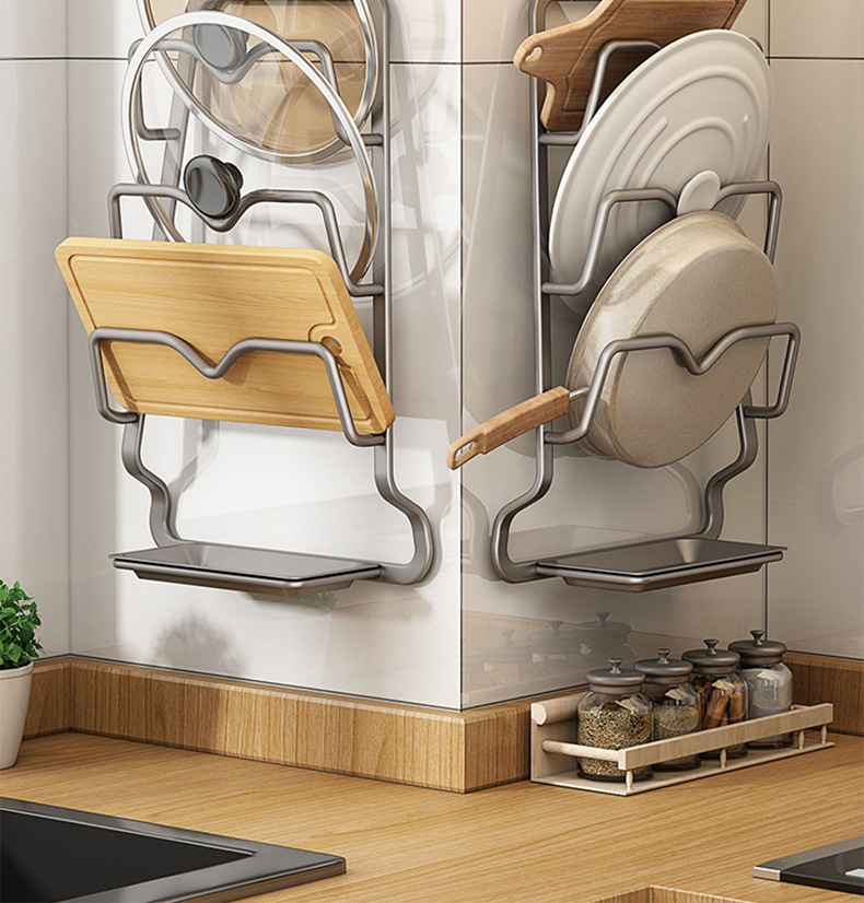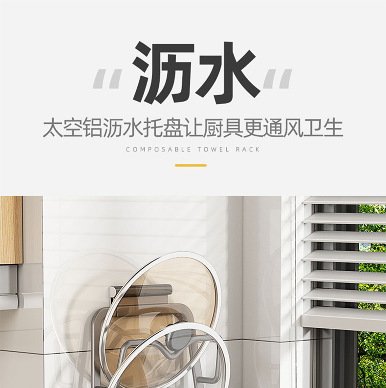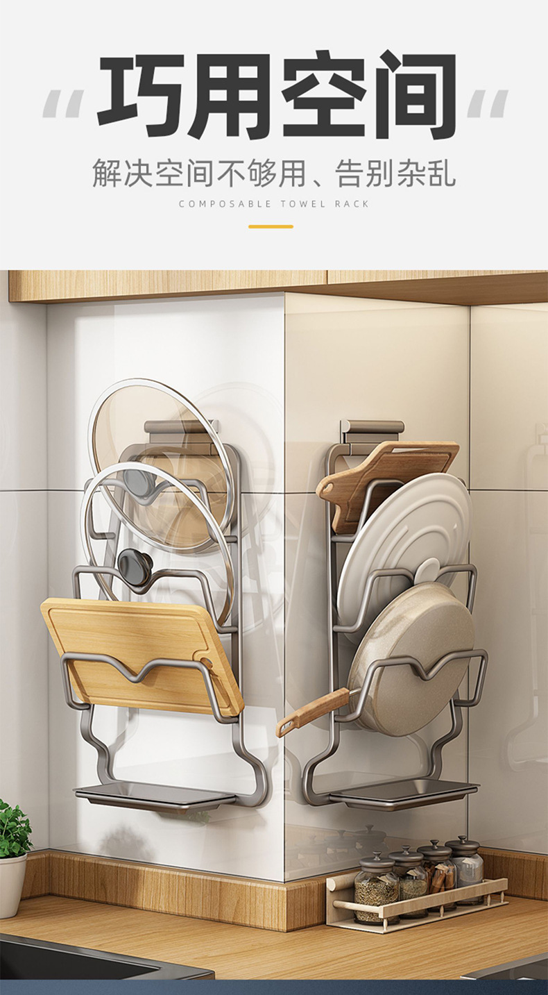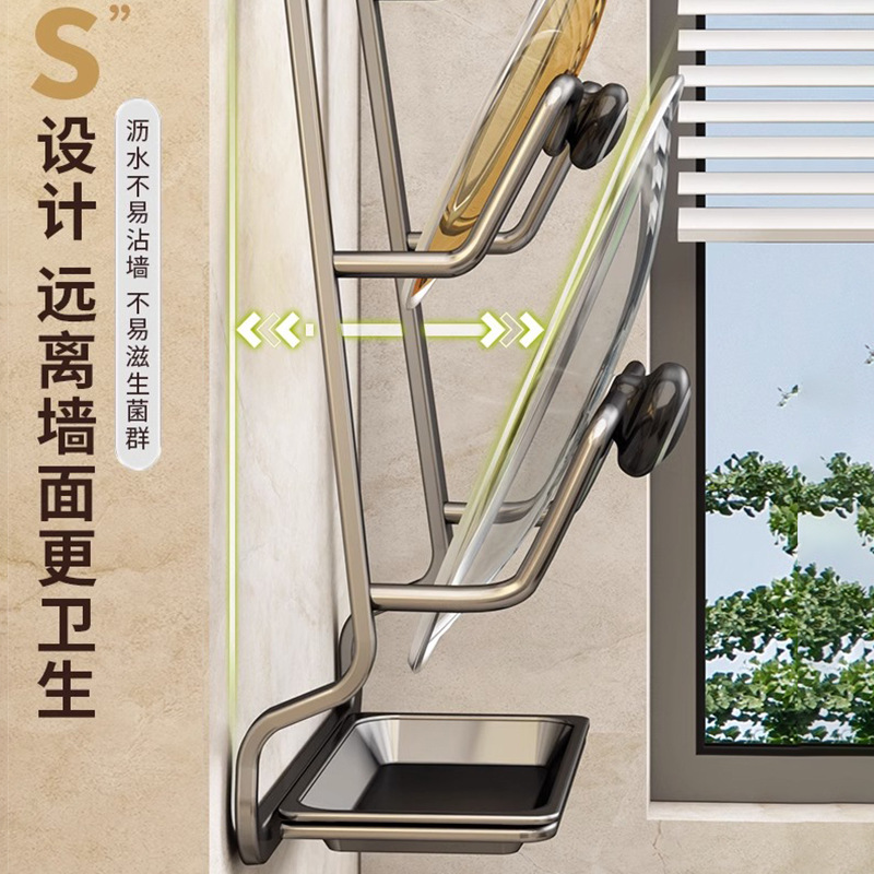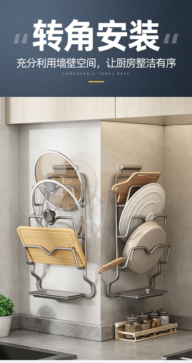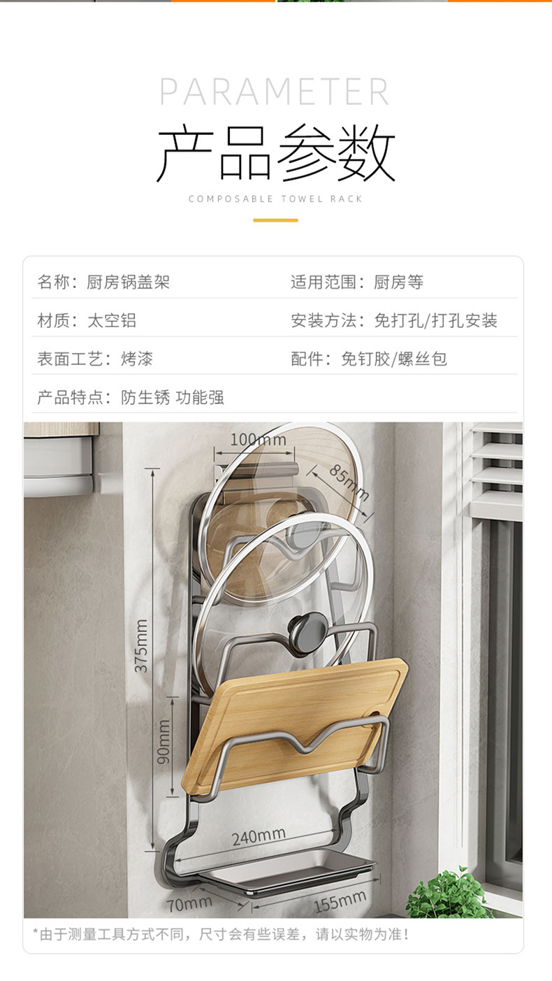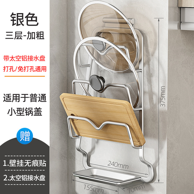 锅盖架太空铝壁挂式菜板收纳架子免打孔多层砧板架厨房置物架批发