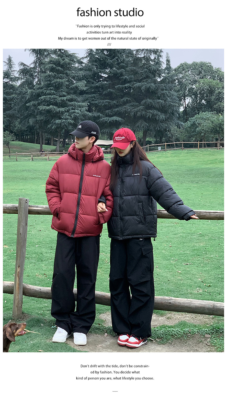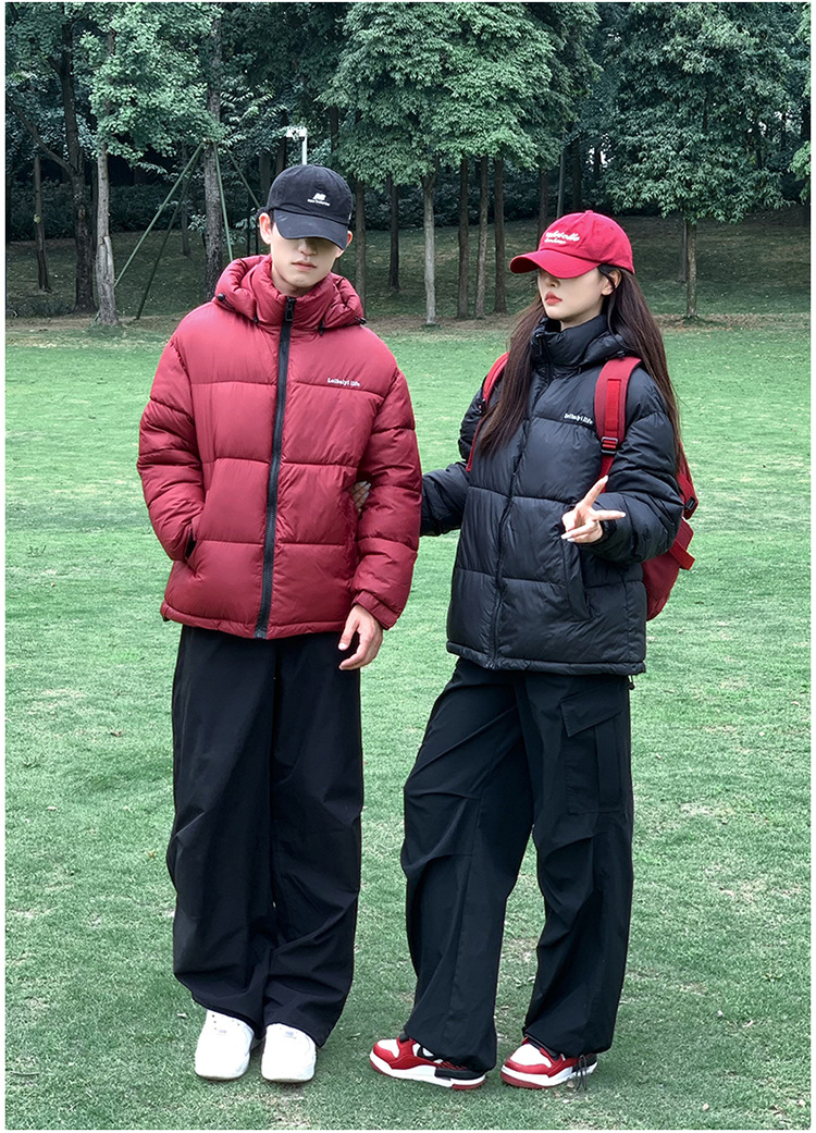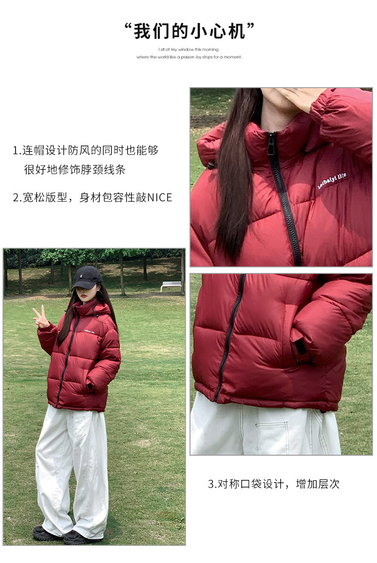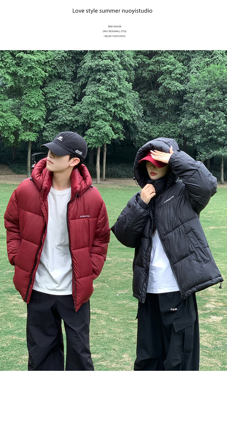 2025年秋冬短款羽绒棉服女立领韩版小个子加绒加厚棉袄情侣外套