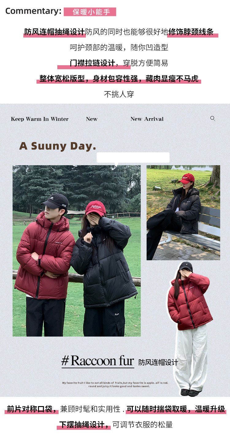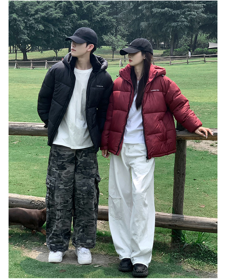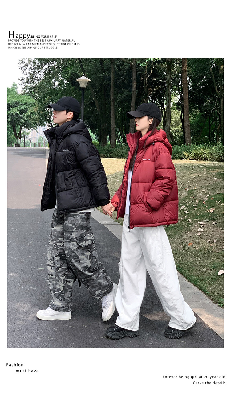 2025年秋冬短款羽绒棉服女立领韩版小个子加绒加厚棉袄情侣外套