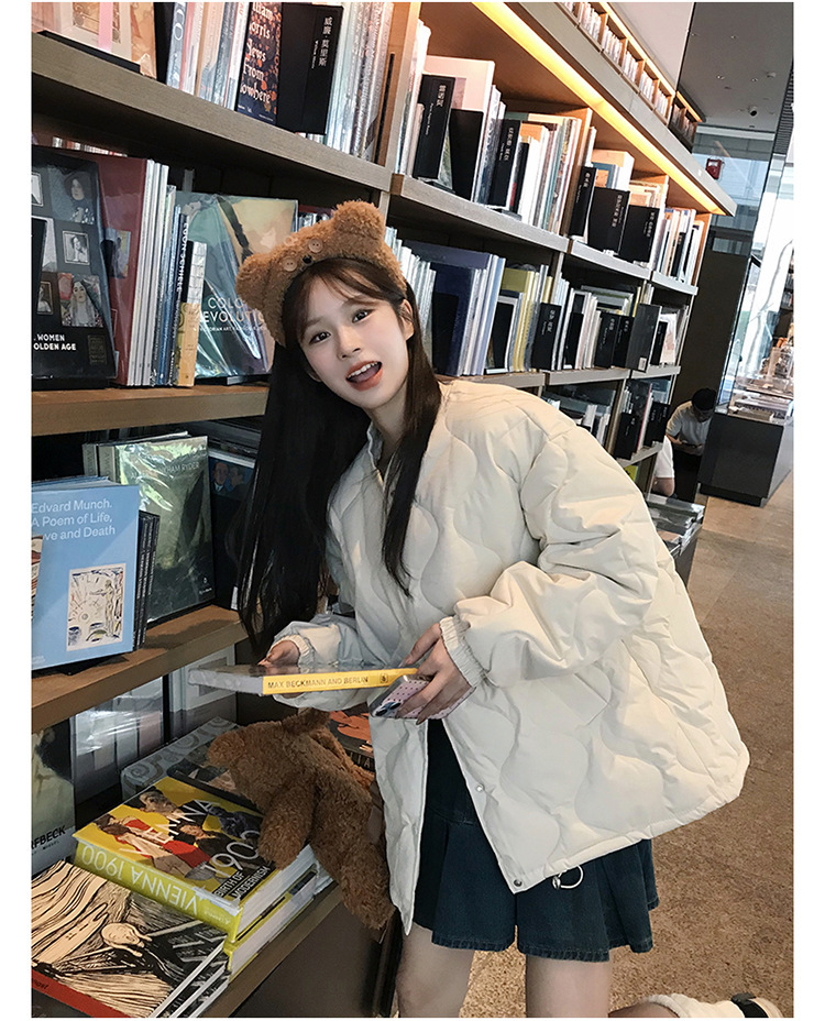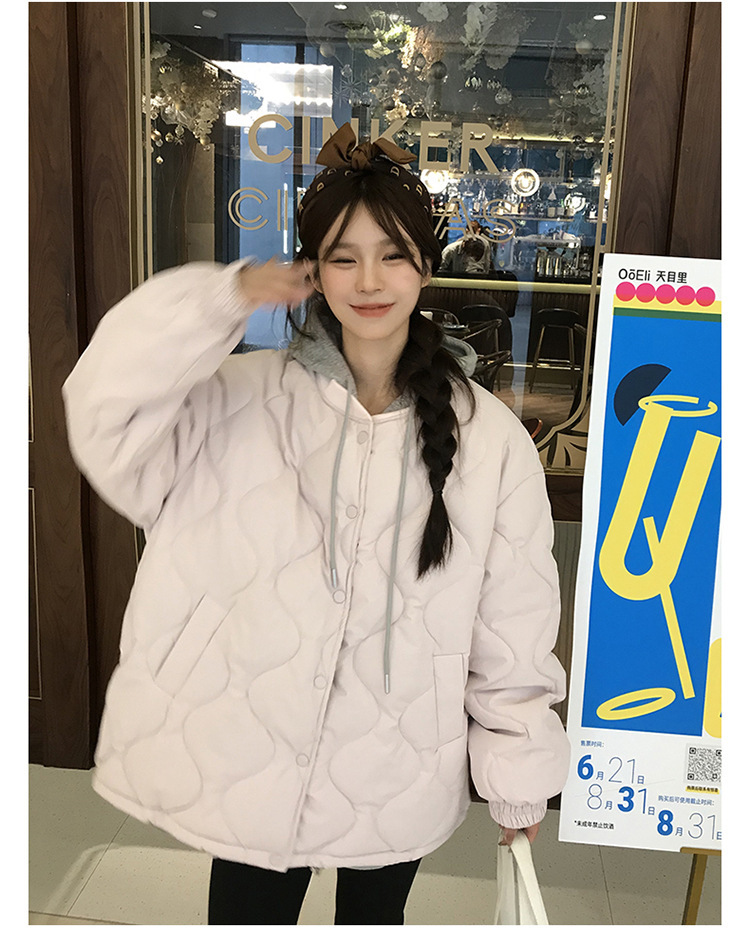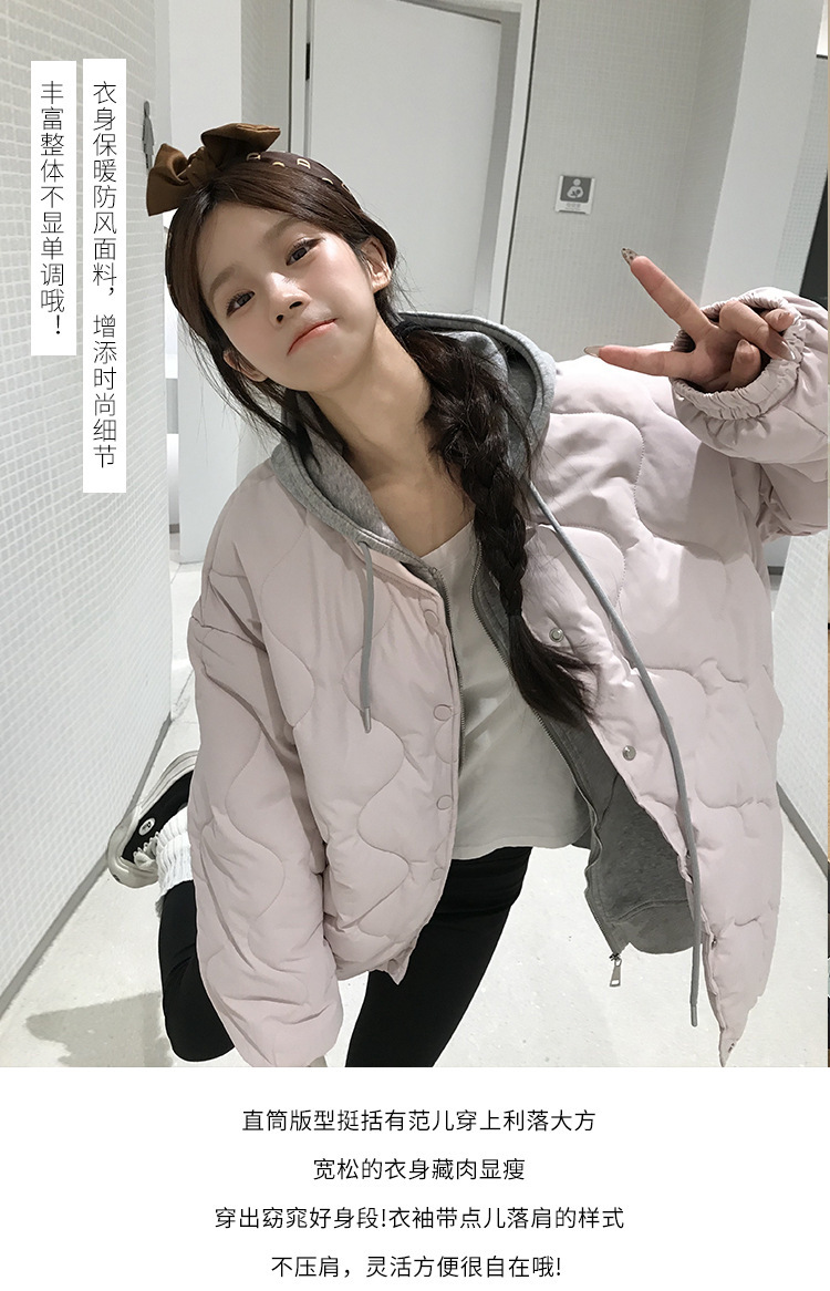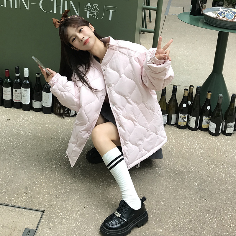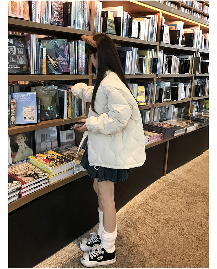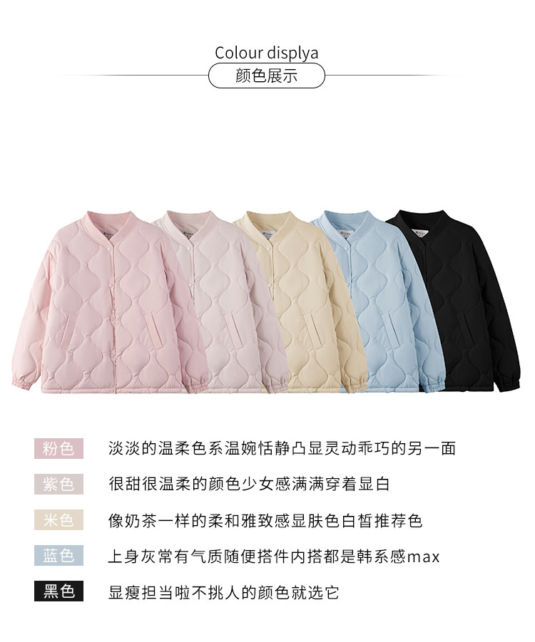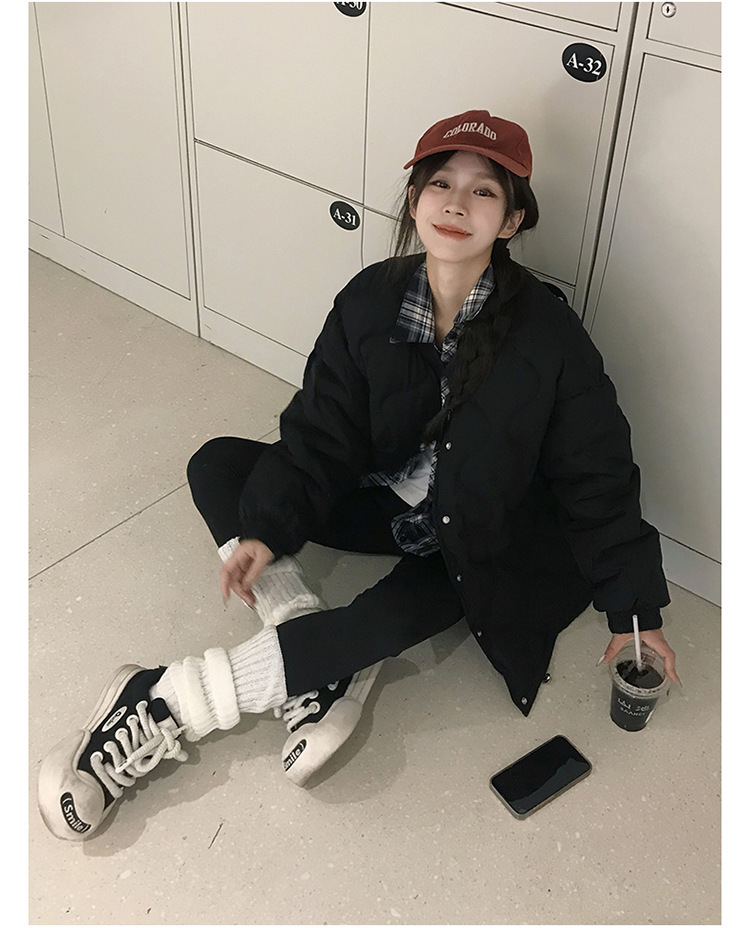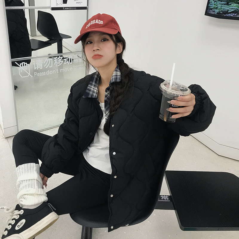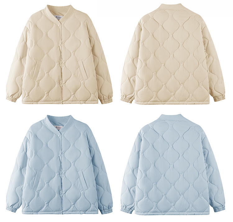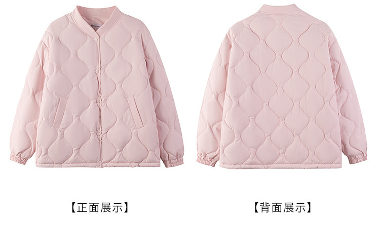 外贸大码小香风无领菱格羽绒棉服女冬季短款圆领厚外套设计感棉衣