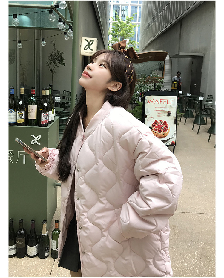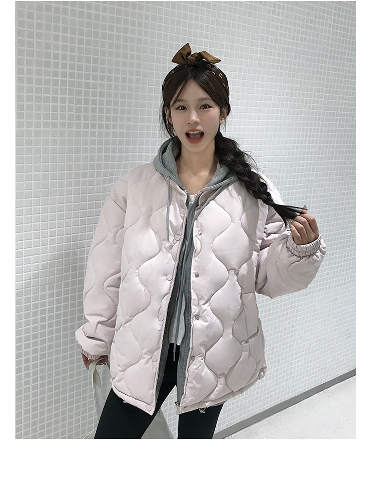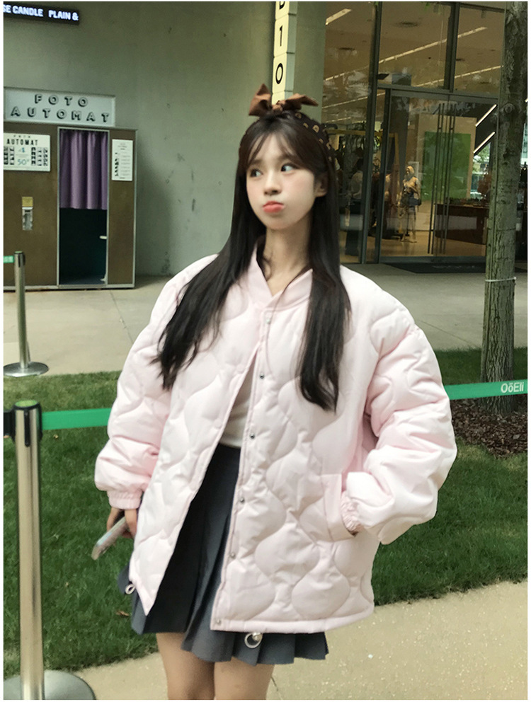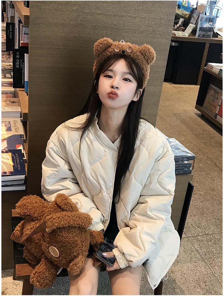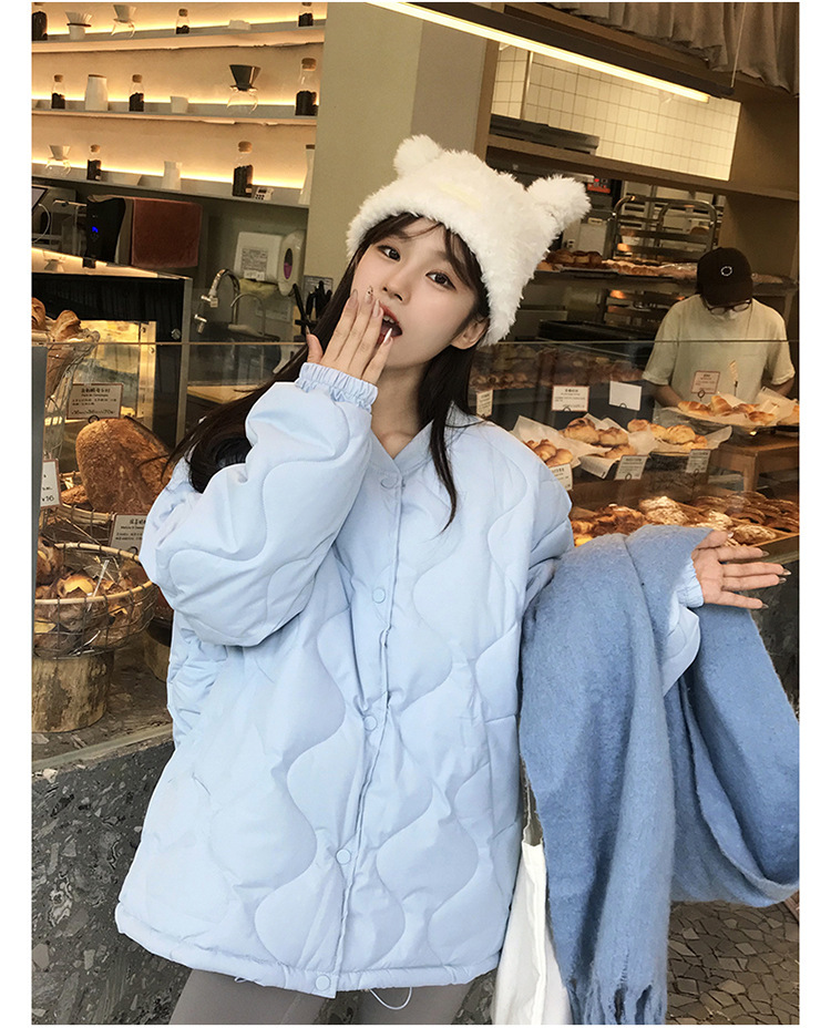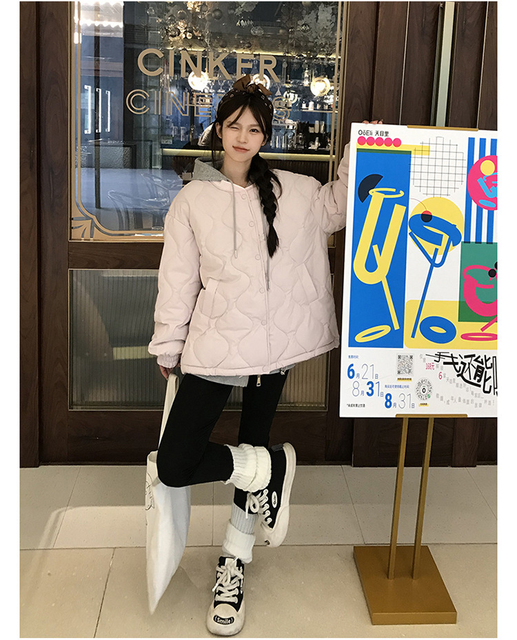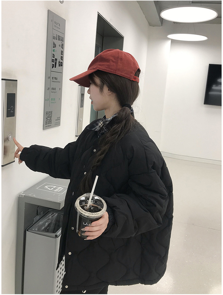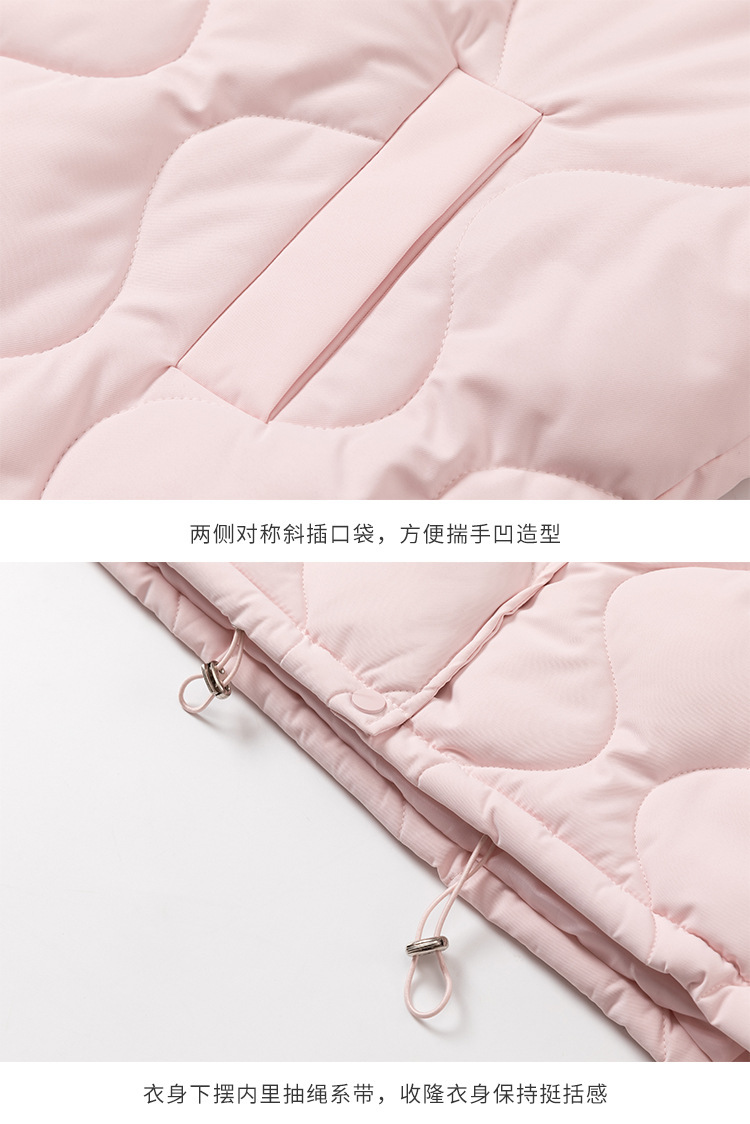 外贸大码小香风无领菱格羽绒棉服女冬季短款圆领厚外套设计感棉衣