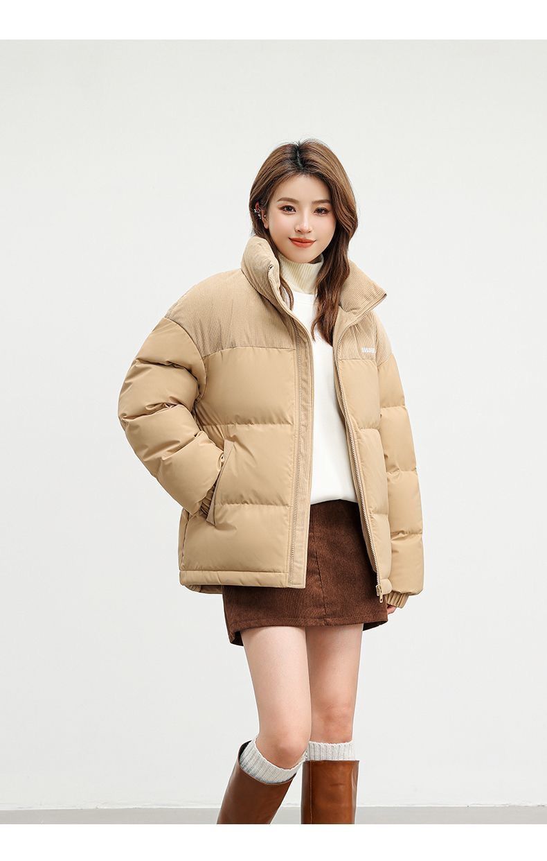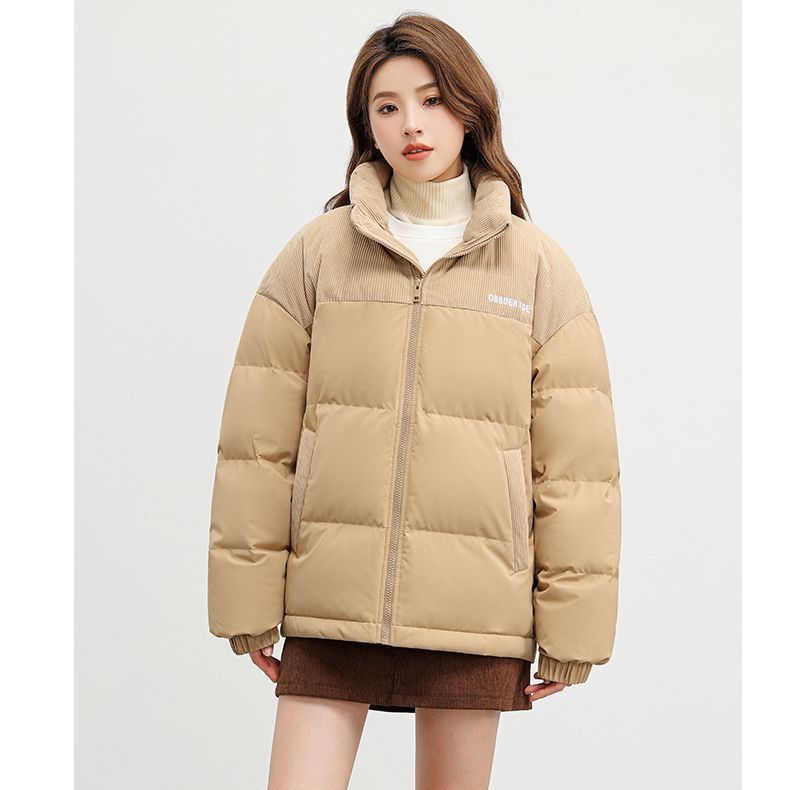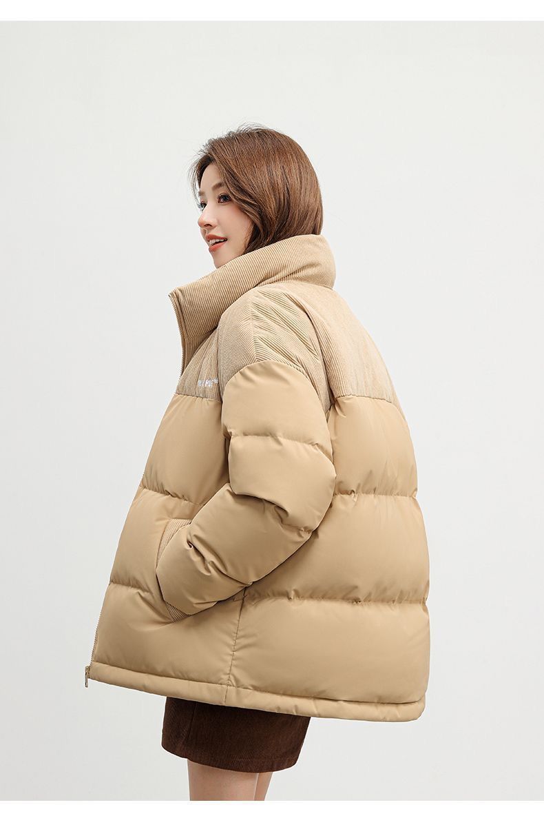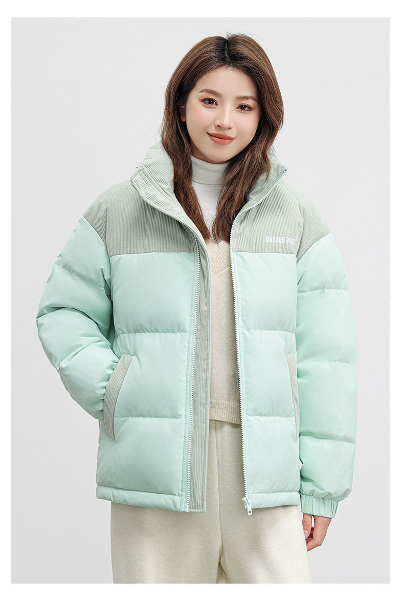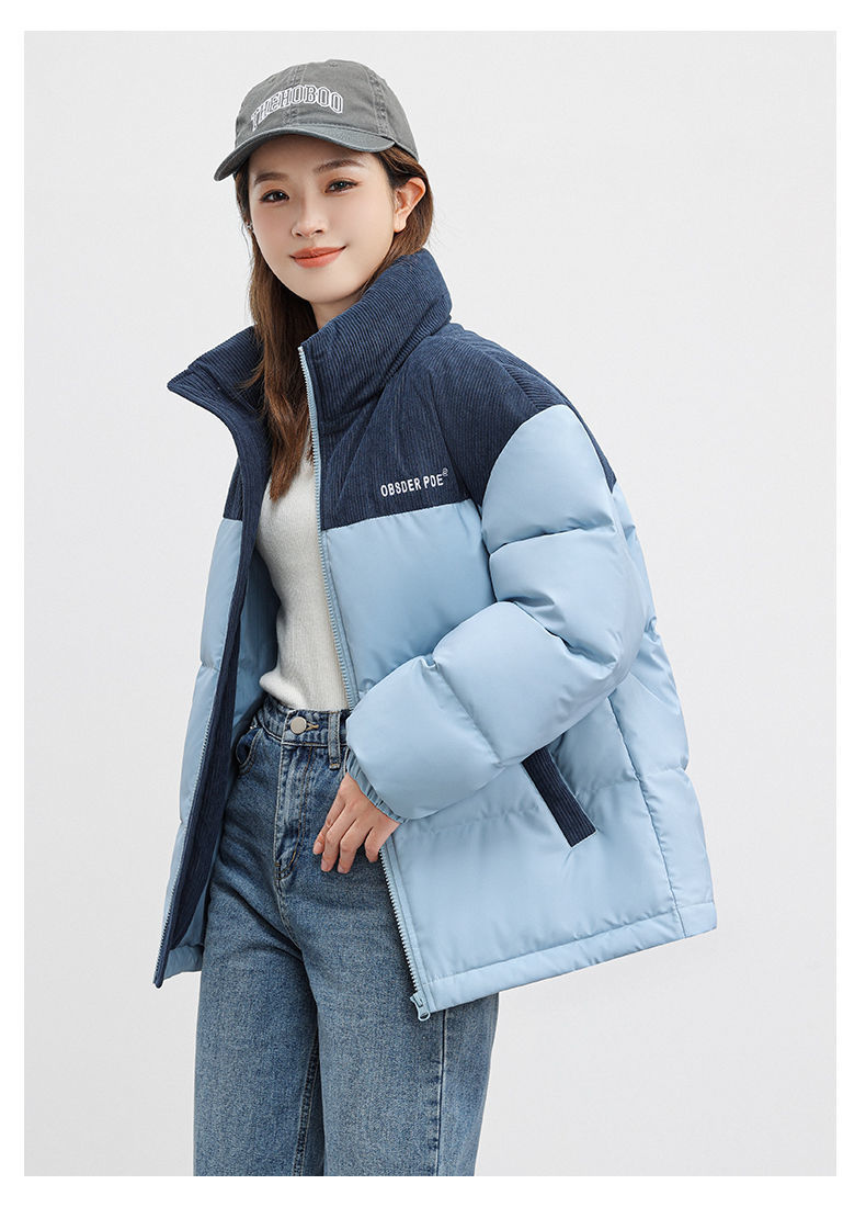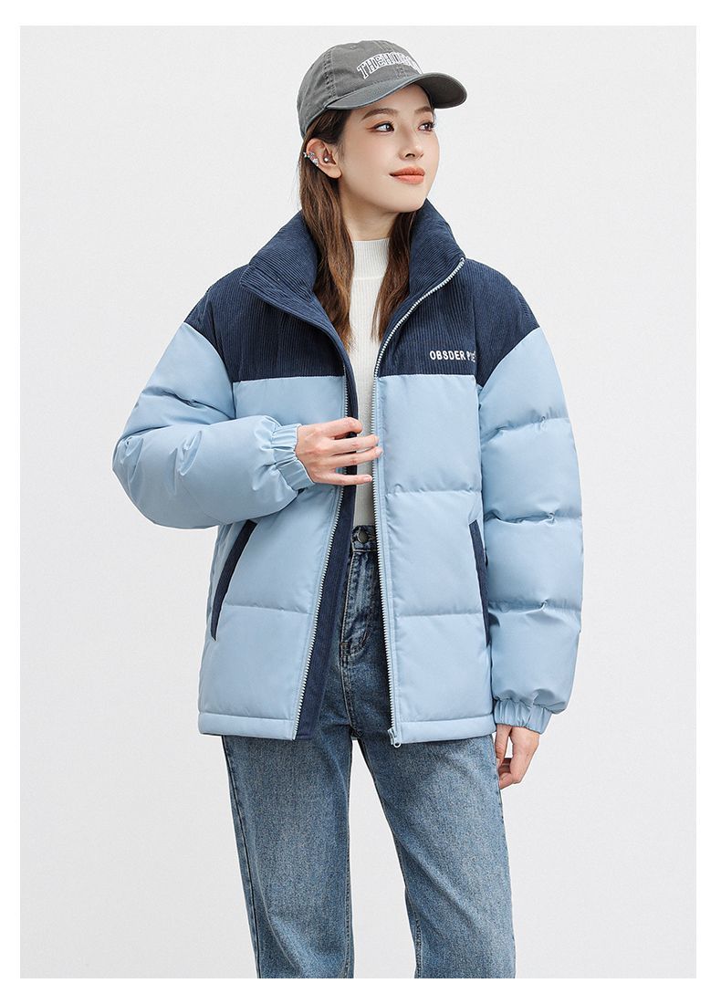 2025冬季拼接撞色新款秋冬保暖棉袄情侣宽松小个子面包羽绒棉服潮