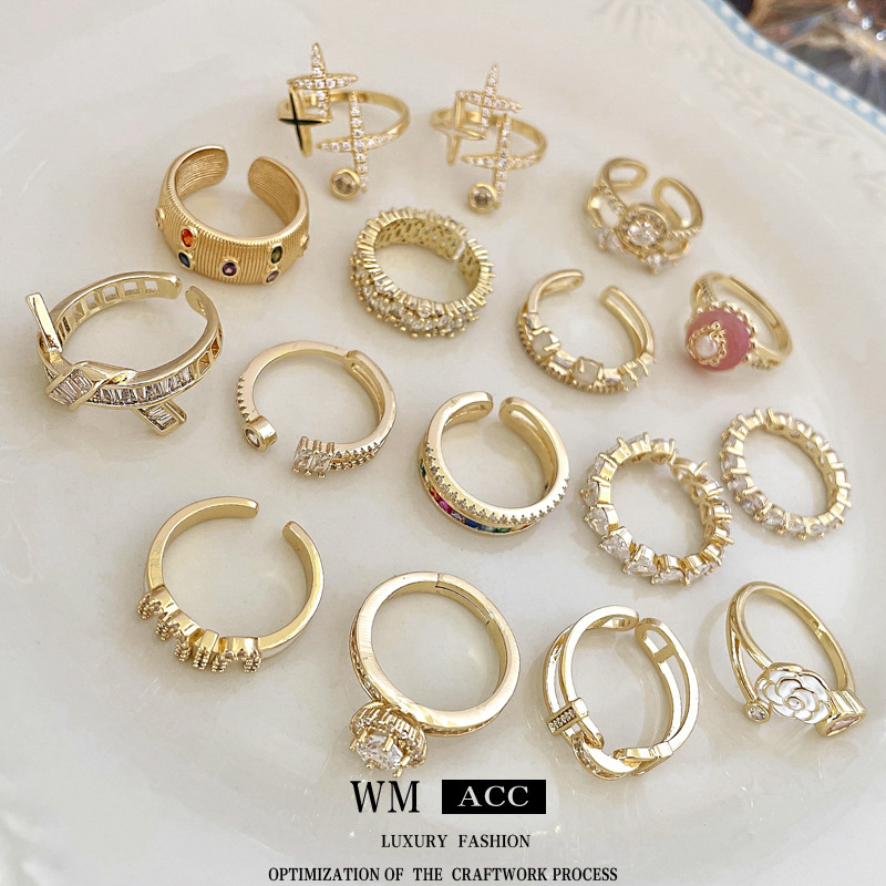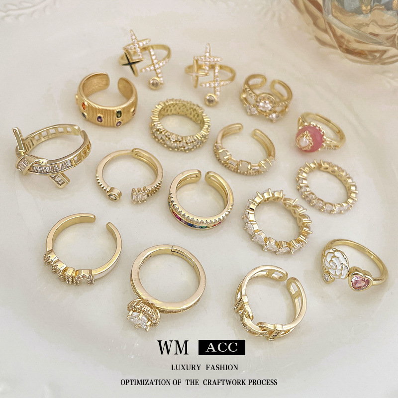 真金电镀金色系锆石开口戒指 时尚气质百搭食指戒 轻奢高级感手饰