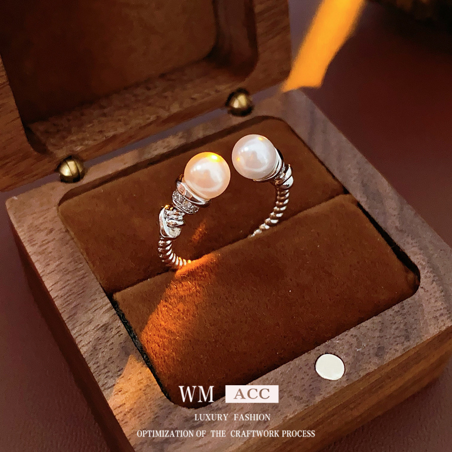 微镶锆石开口戒指两件套时尚通勤百搭精致食指戒轻奢高级感手饰女