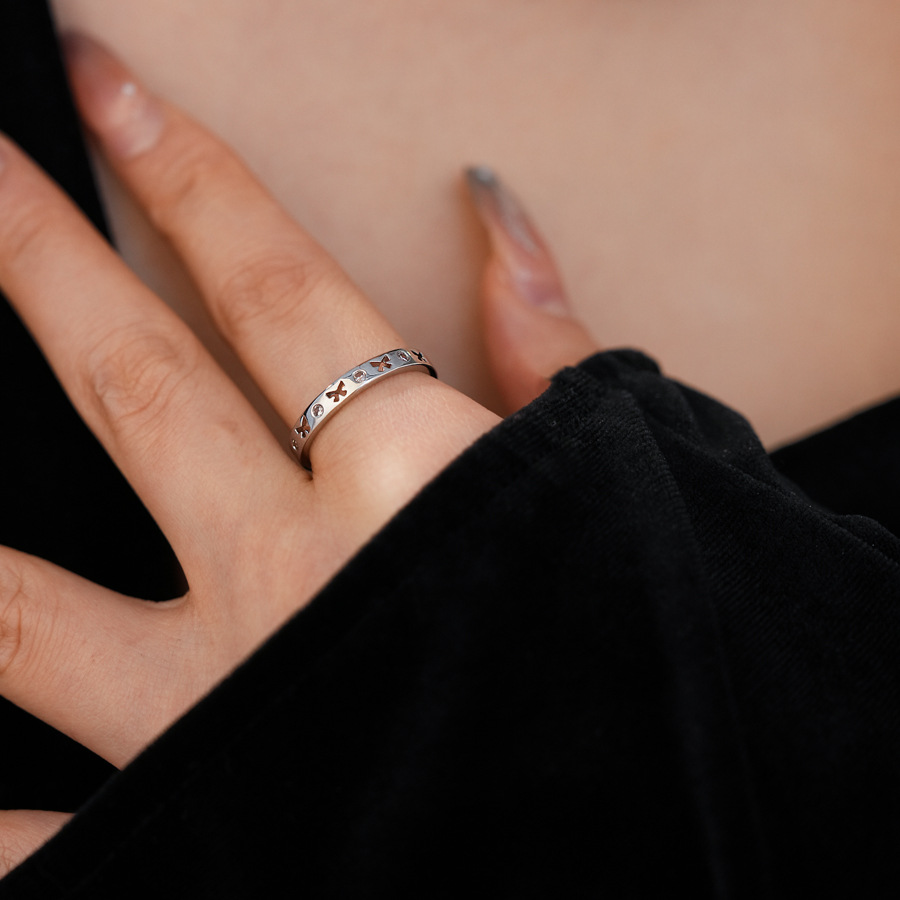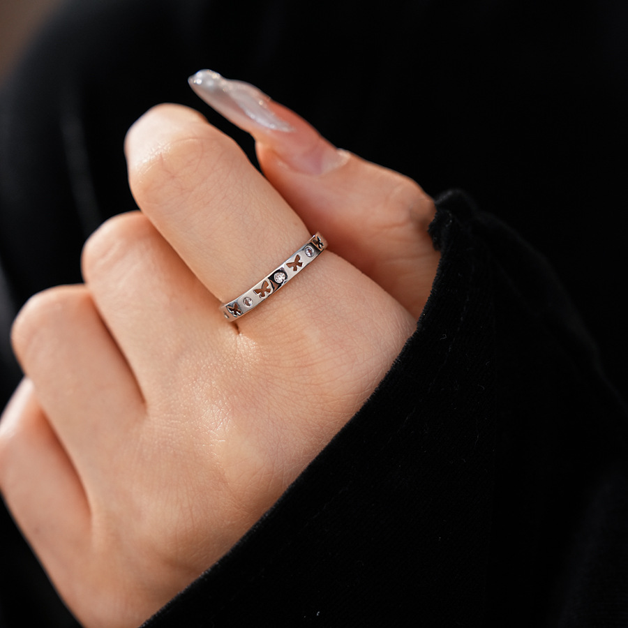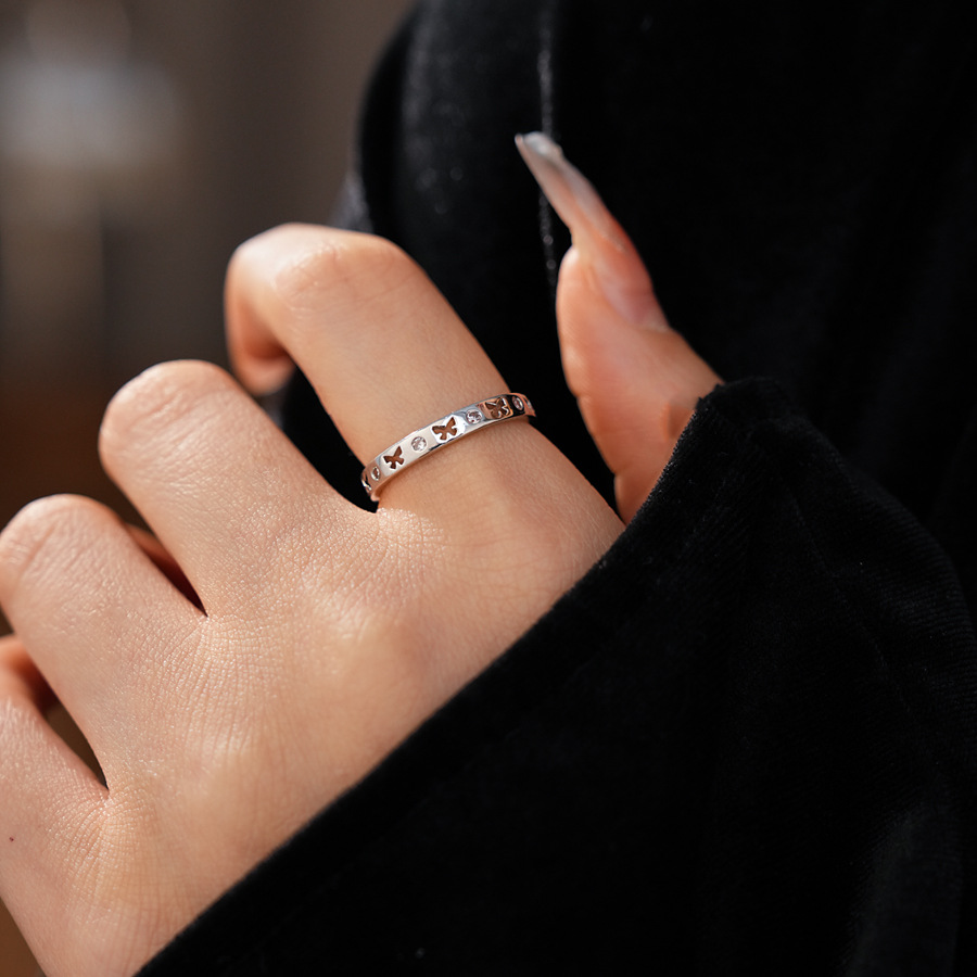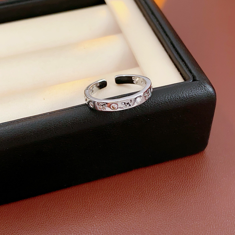 锆石镂空蝴蝶结开口戒指个性冷淡风小众食指戒百搭高级感时尚手饰
