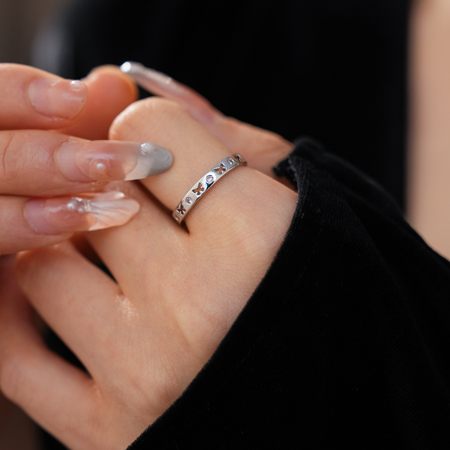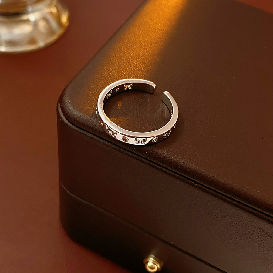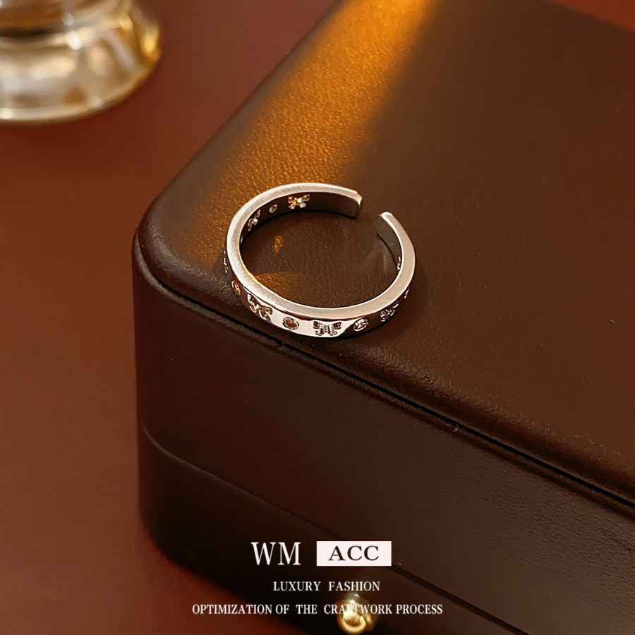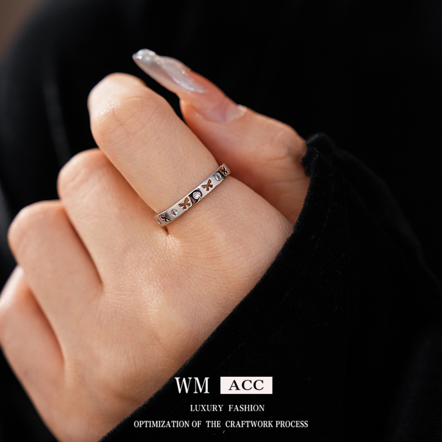 锆石镂空蝴蝶结开口戒指个性冷淡风小众食指戒百搭高级感时尚手饰