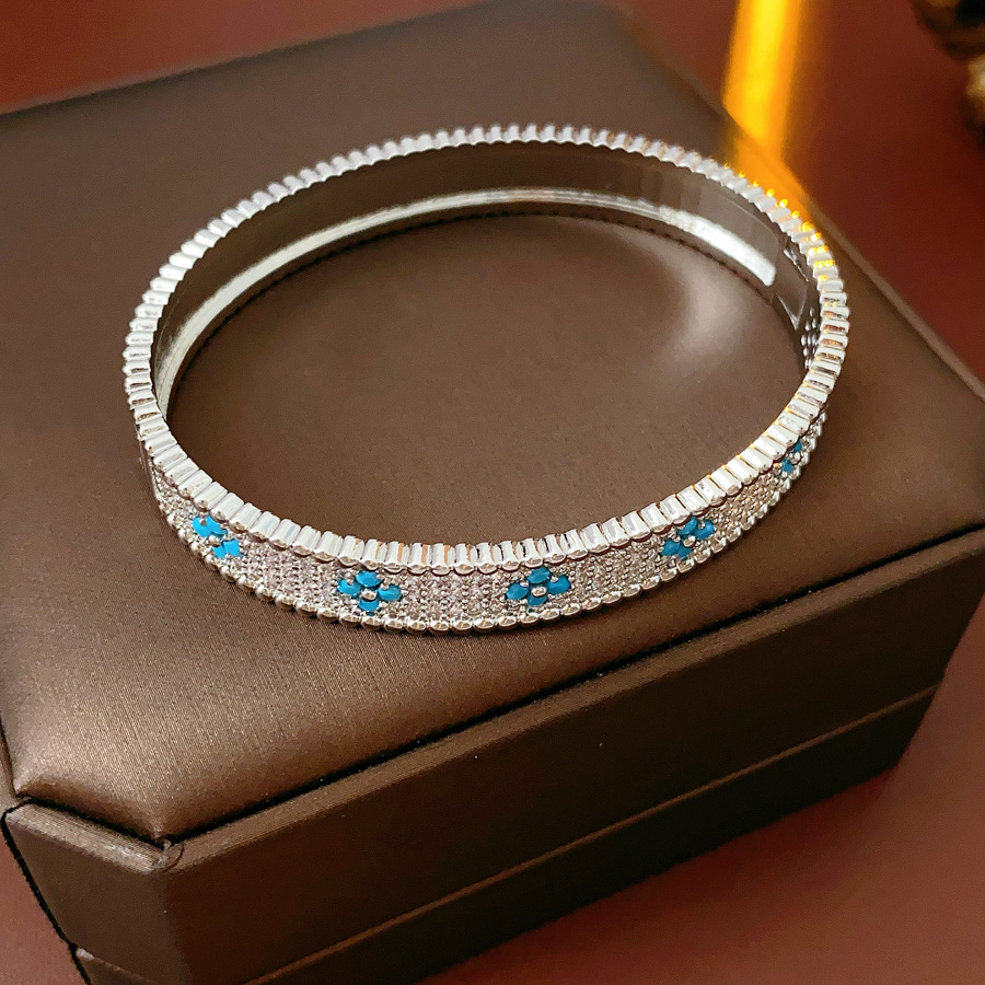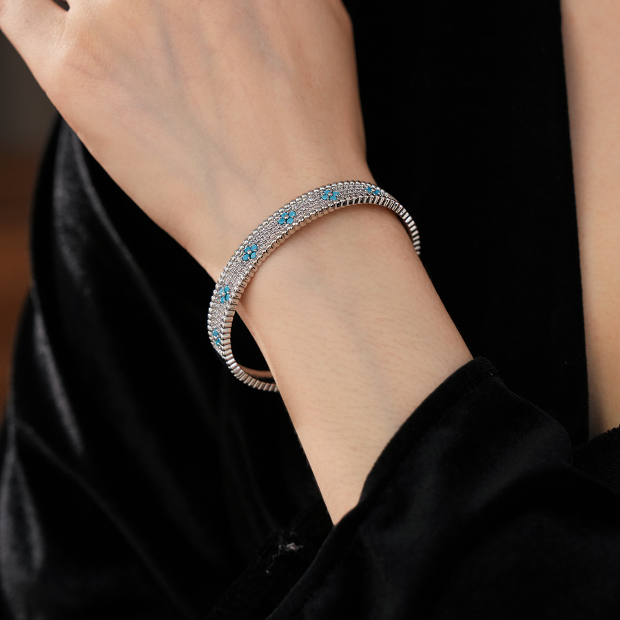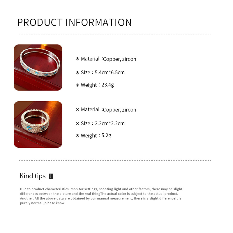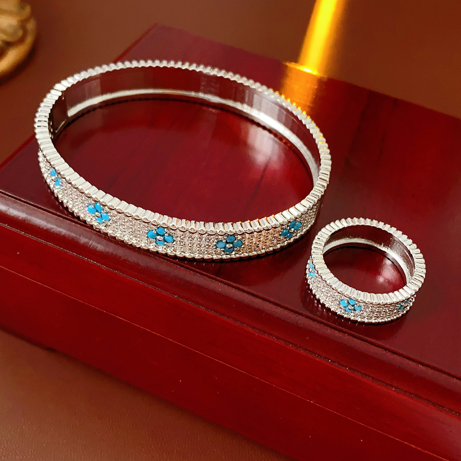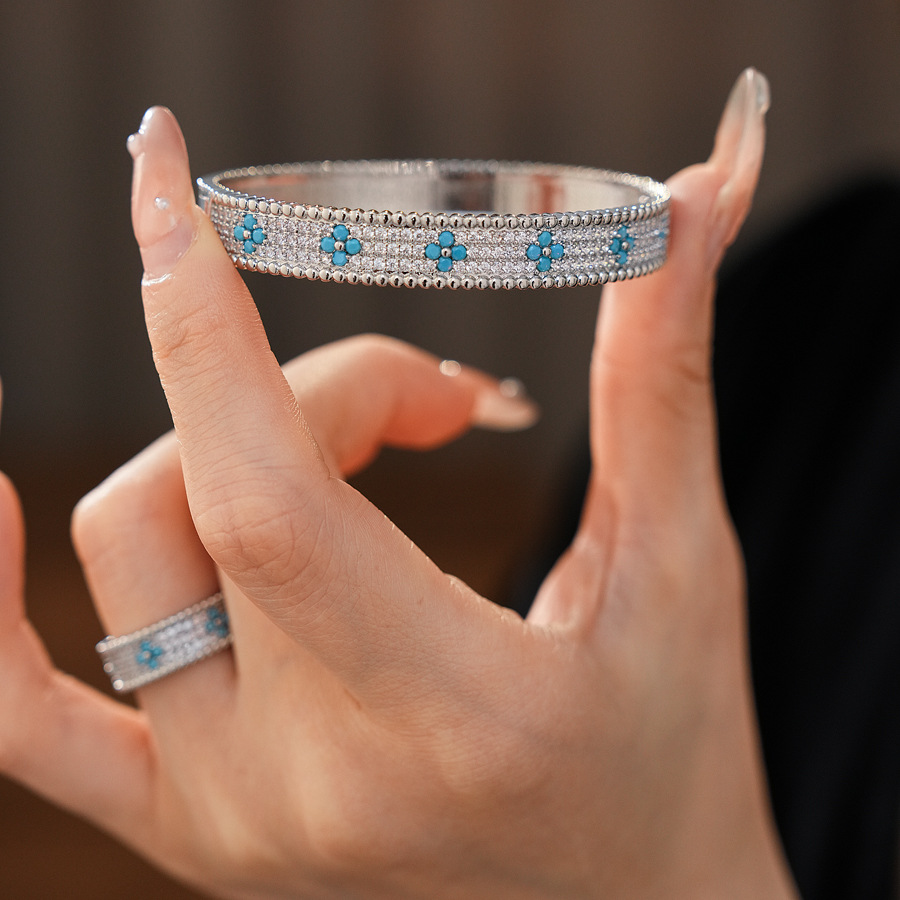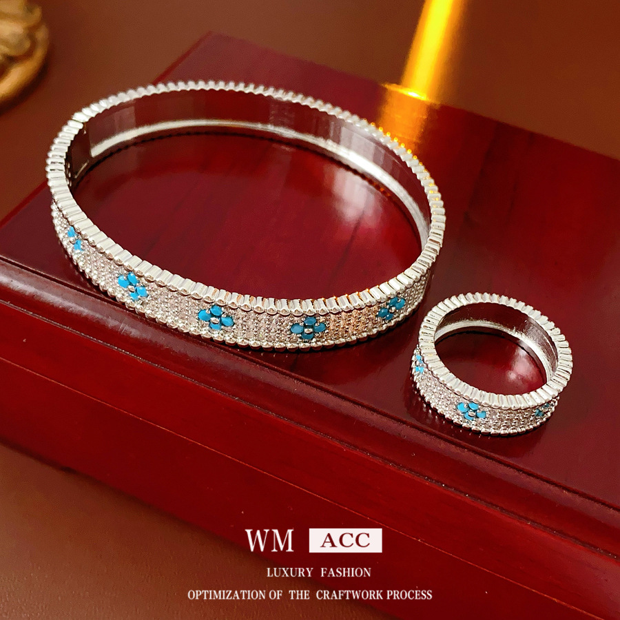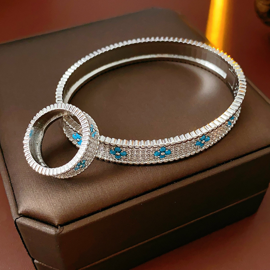 锆石幸运草花朵卡扣手镯轻奢冷淡风精致戒指百搭高级感时尚套装女
