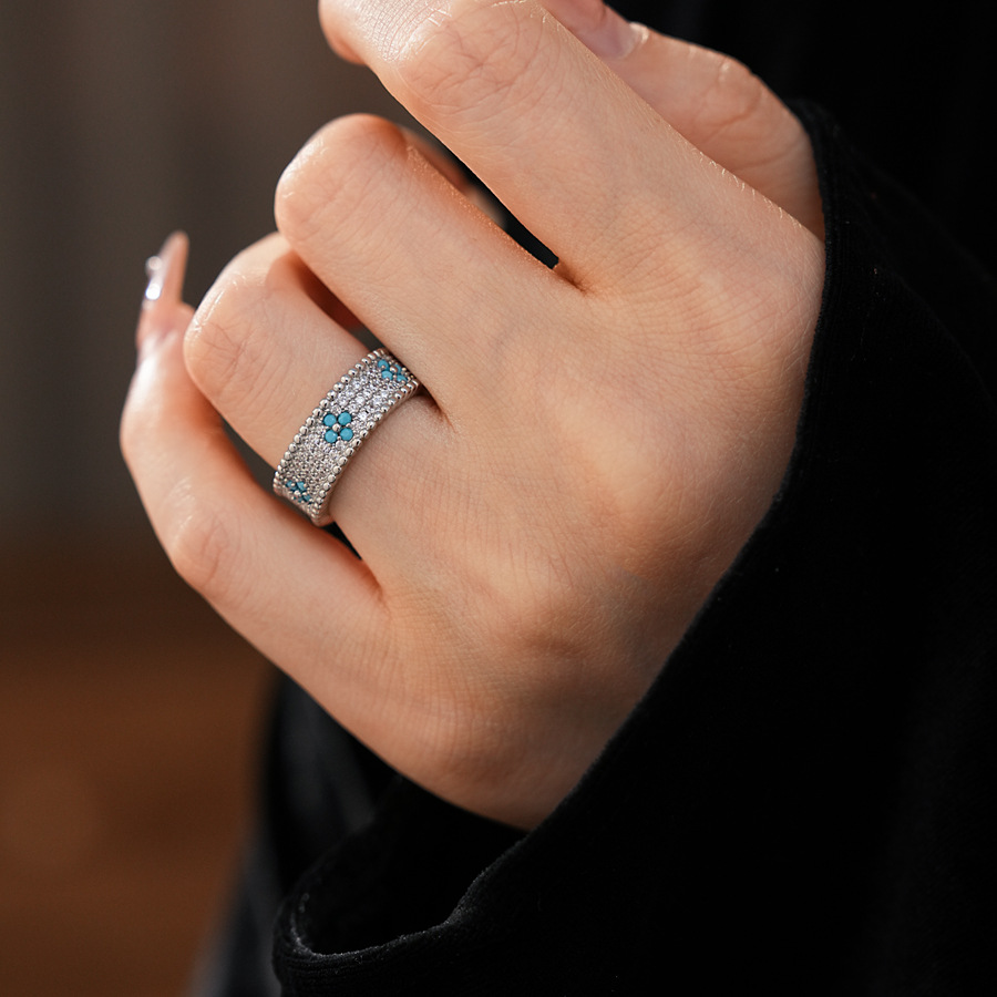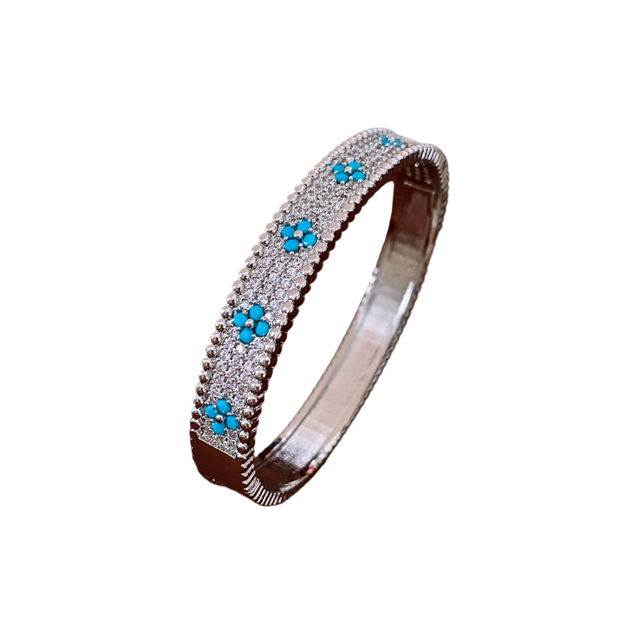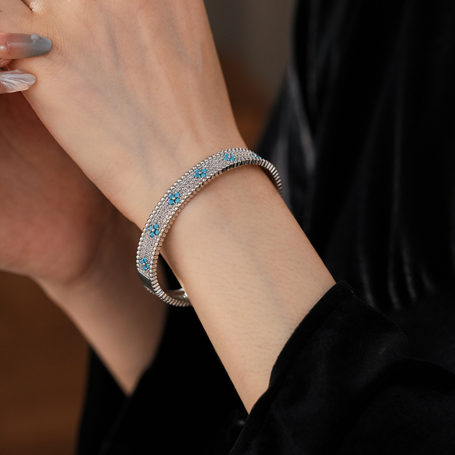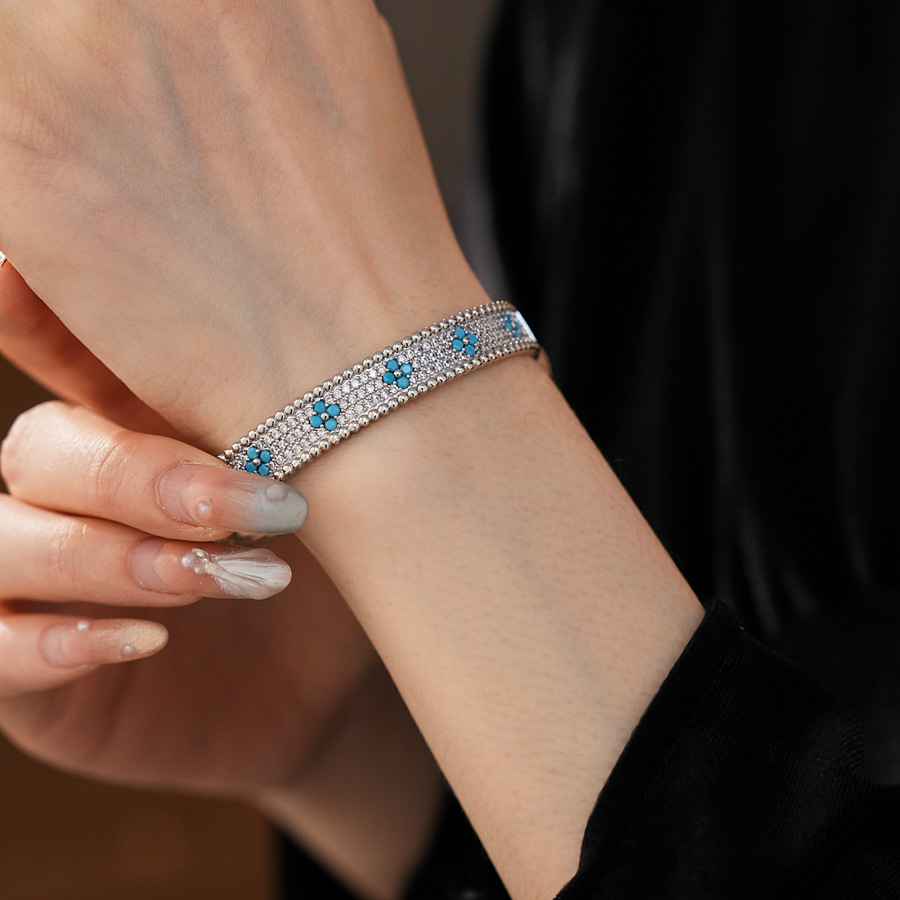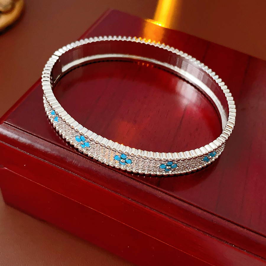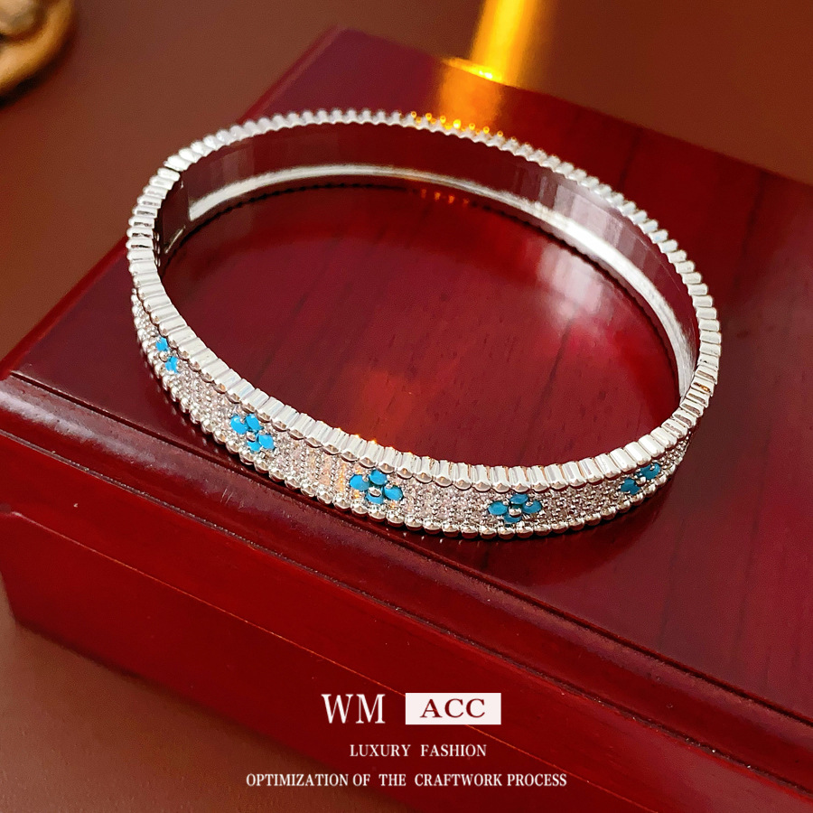 锆石幸运草花朵卡扣手镯轻奢冷淡风精致戒指百搭高级感时尚套装女