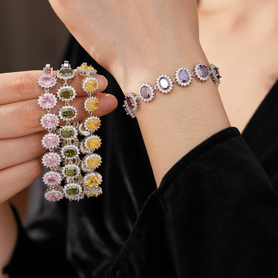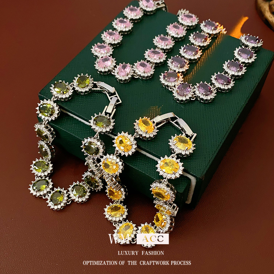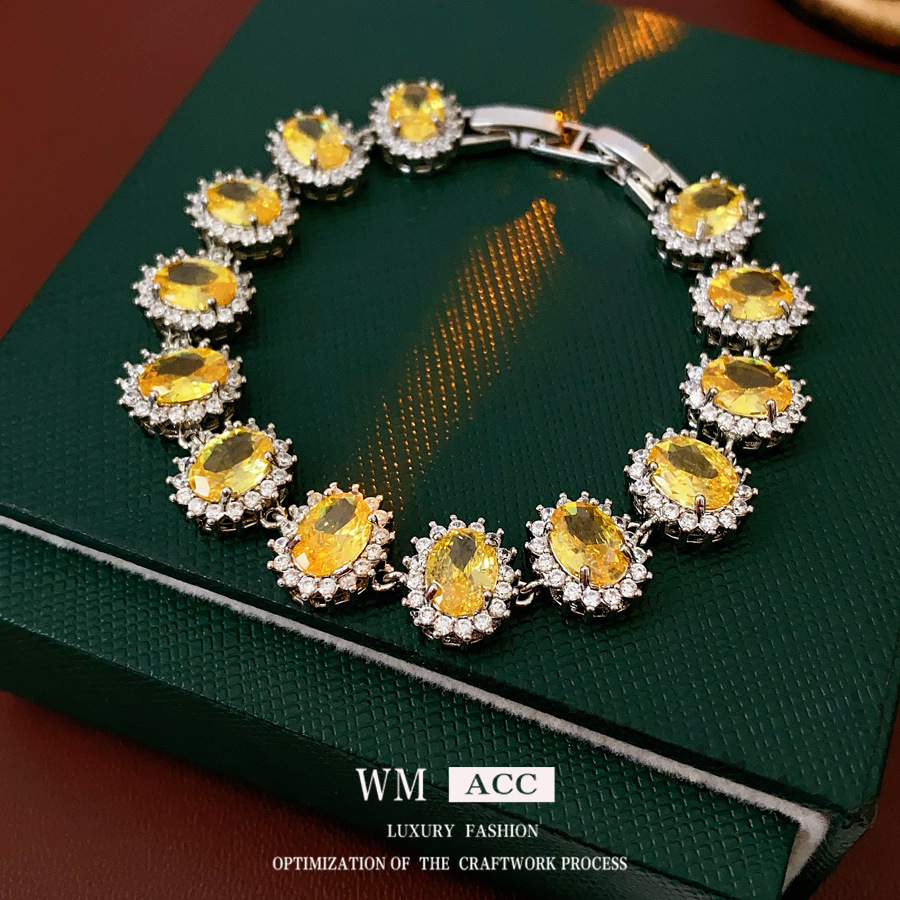 欧美跨境锆石椭圆形卡扣手链复古夸张轻奢高级感手环气质百搭手饰