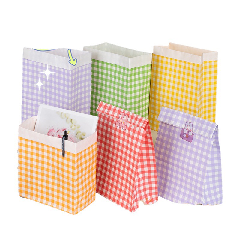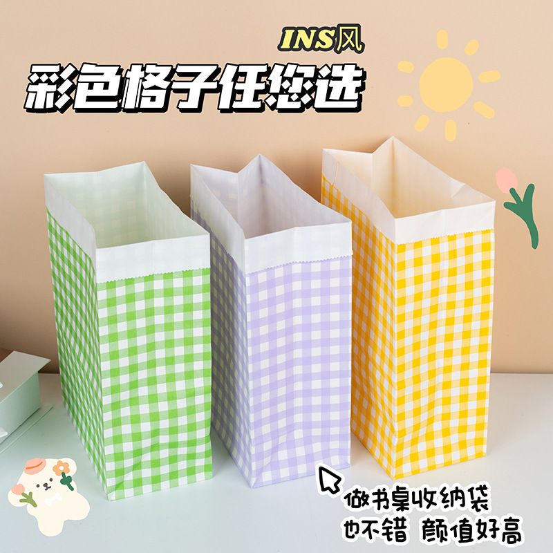 韩国ins彩色格子纸袋礼品袋礼物包装袋小号牛皮纸袋杂物收纳纸袋