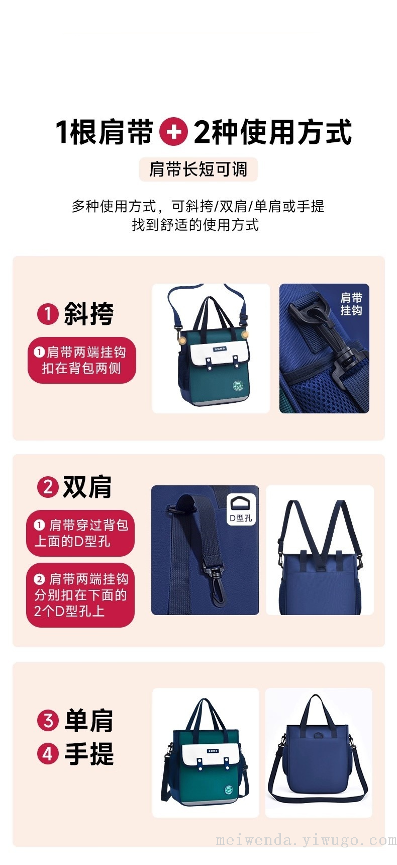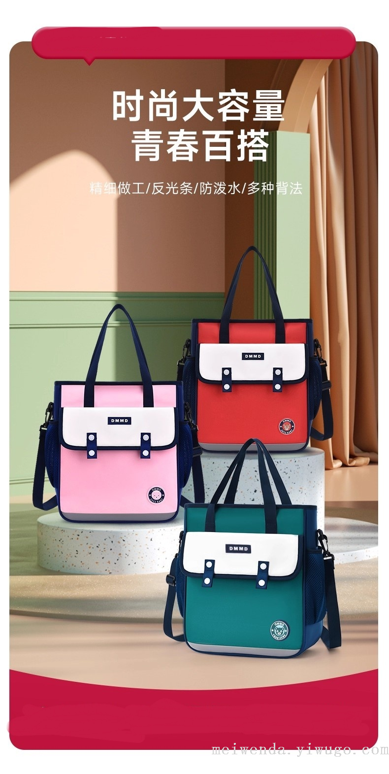 美文达箱包厂 位于“书包之都”湖南省邵东市。从事箱包制造行业近20年,生产能力强,员工500余人,设备400台套,日均生产书包4000个。产品畅销俄罗斯、南非、欧美、东南亚等几十个地区。 我们期待与您携手共进! 支持大量批发、少量混批、一件代发 支持来样加工、打样定制、OEM、来图定制、定制LOGO 长期库存,源头工厂,一手货源 欢迎实体商家、电商平台卖家、捐赠机构、培训学校咨询合作 质量保证,款式新颖,价格便宜,欢迎来电咨询!