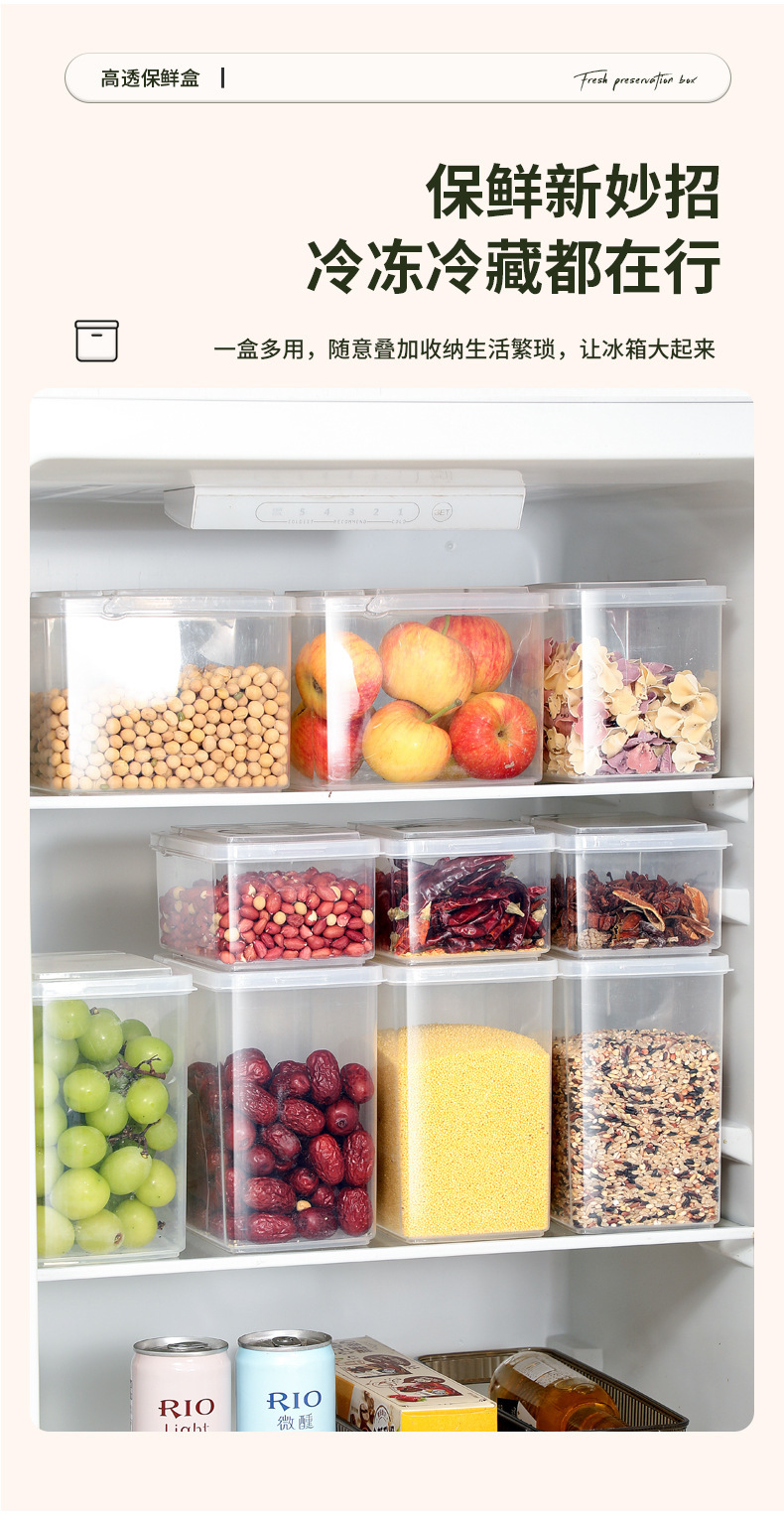 冰箱收纳盒五谷杂粮保鲜盒零食密封盒整理盒厨房食品级透明家用