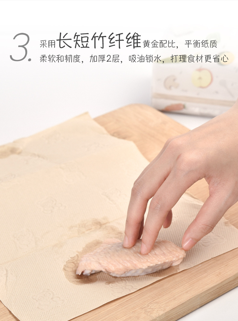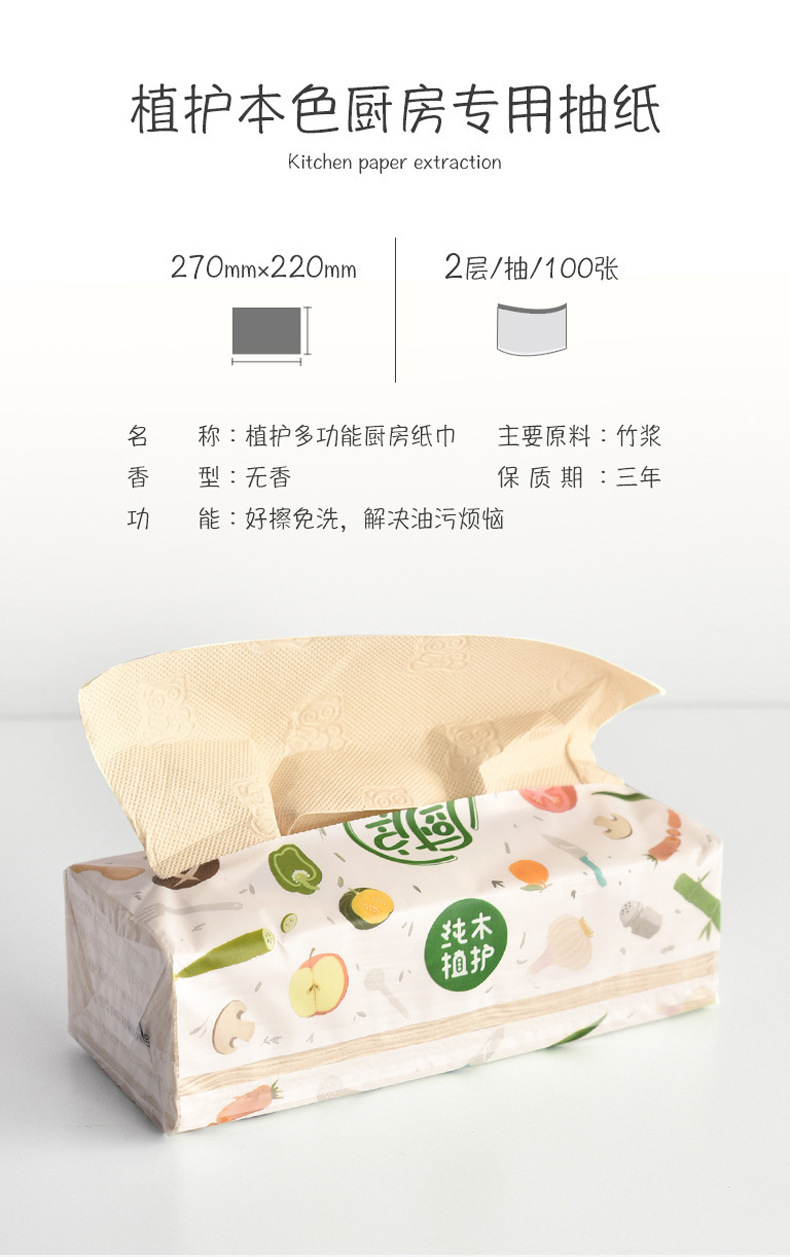 植护厨房纸3包装吸水吸油纸巾竹浆本色抽纸抽取式卫生纸厂家批发