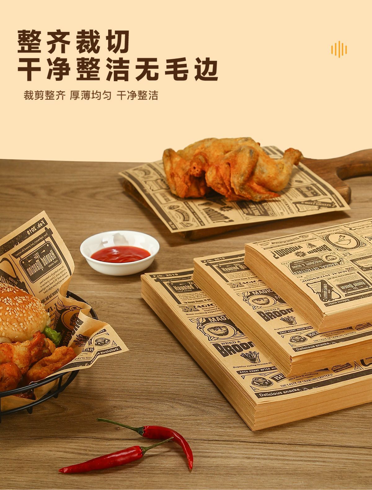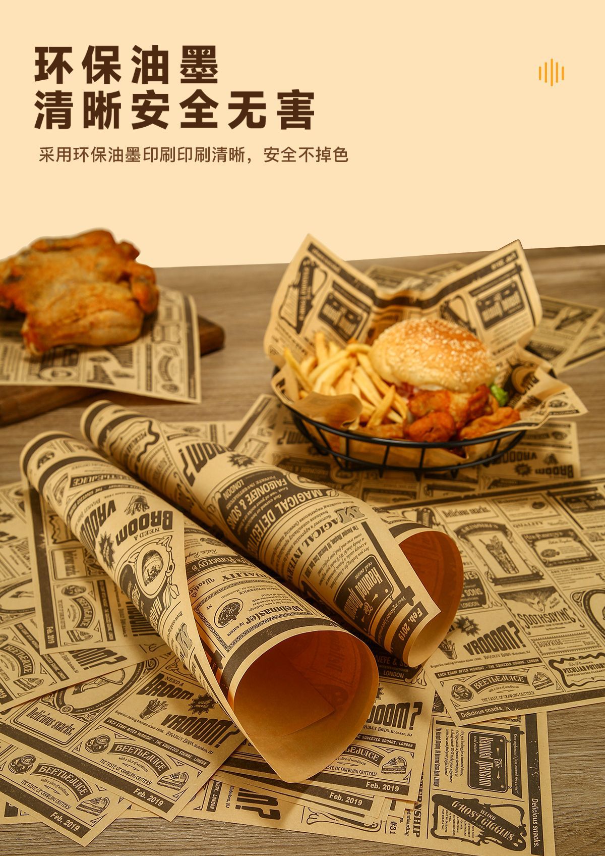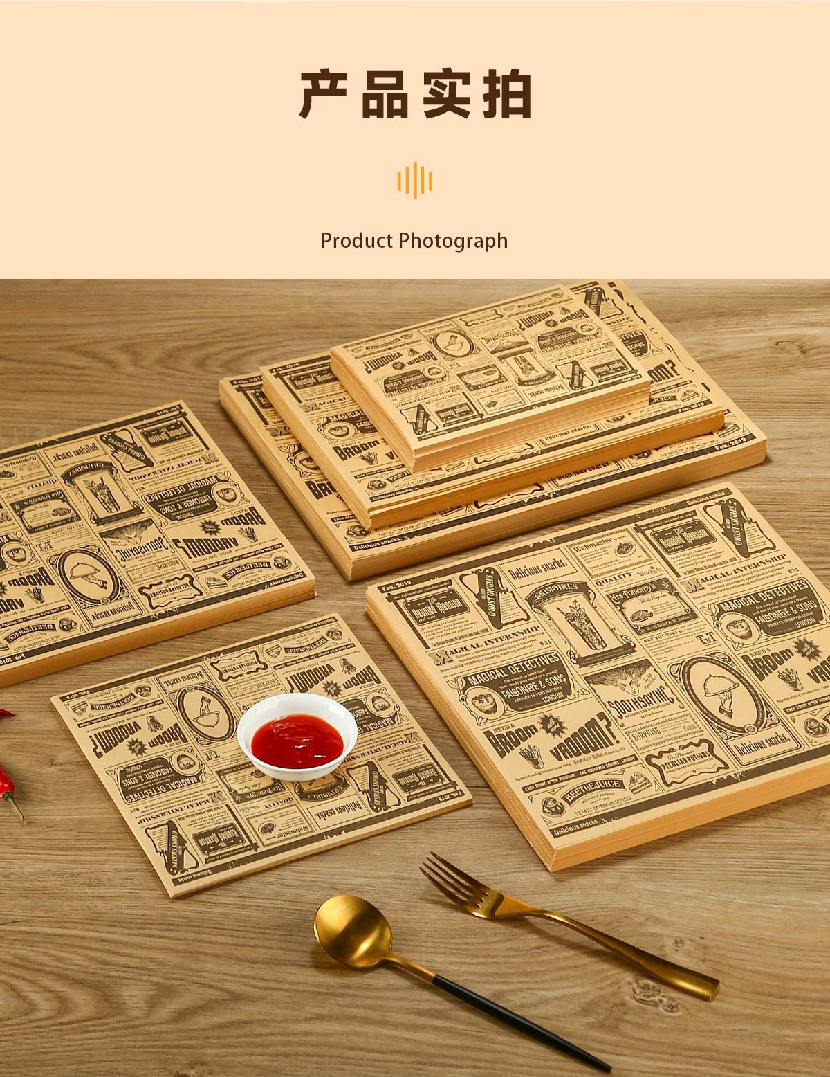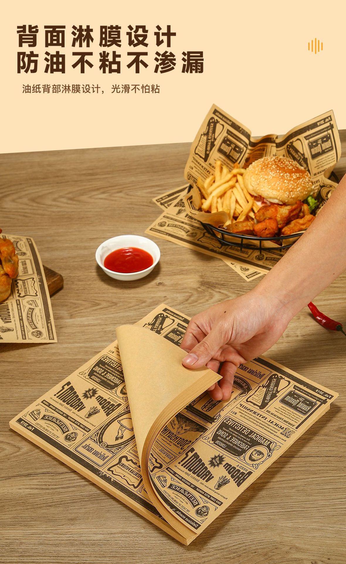 美式英文吸油纸加厚复古牛皮淋膜纸食品三明治包装纸厨房烘焙纸垫