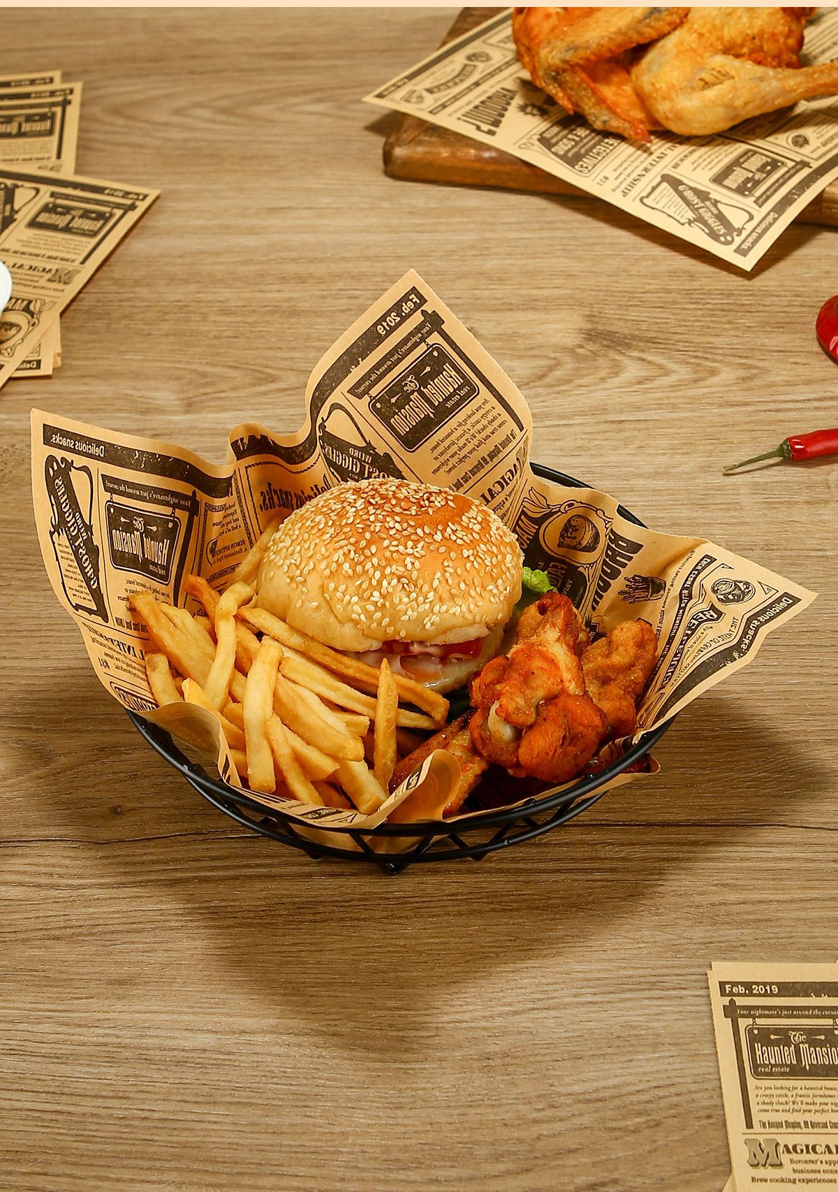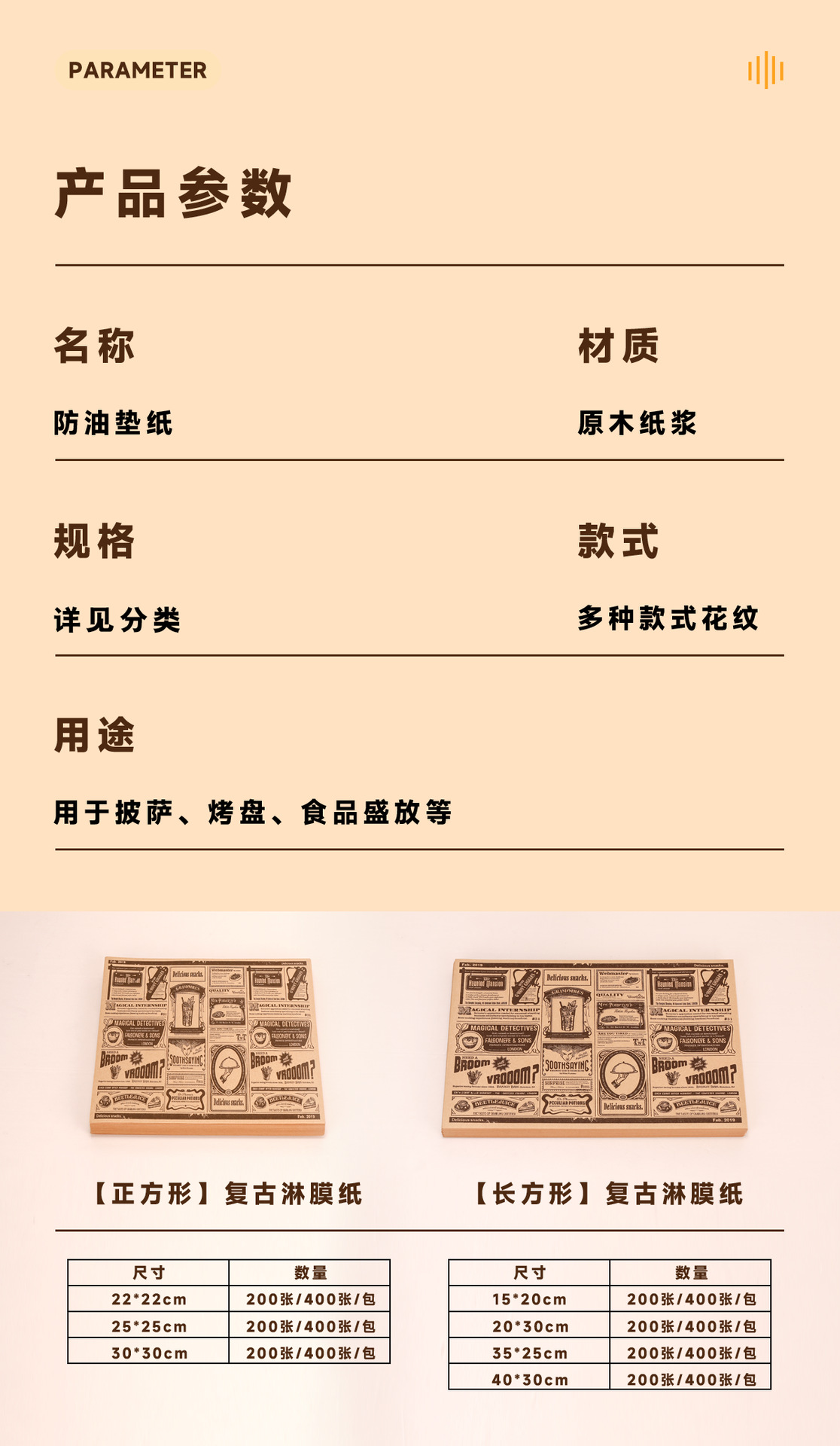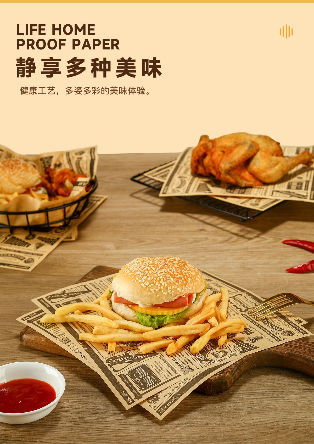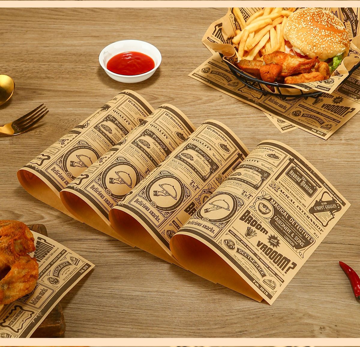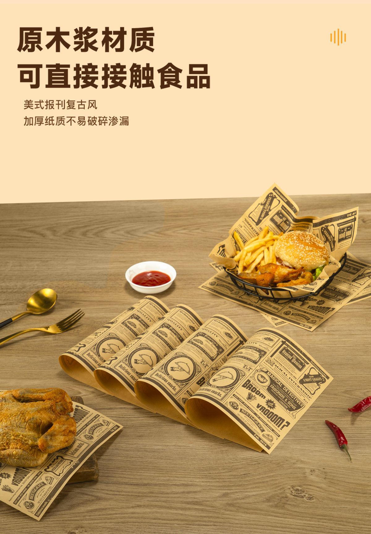美式英文吸油纸加厚复古牛皮淋膜纸食品三明治包装纸厨房烘焙纸垫
